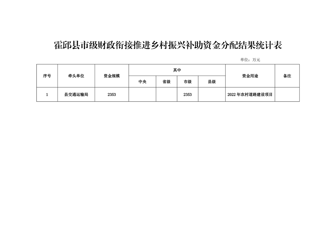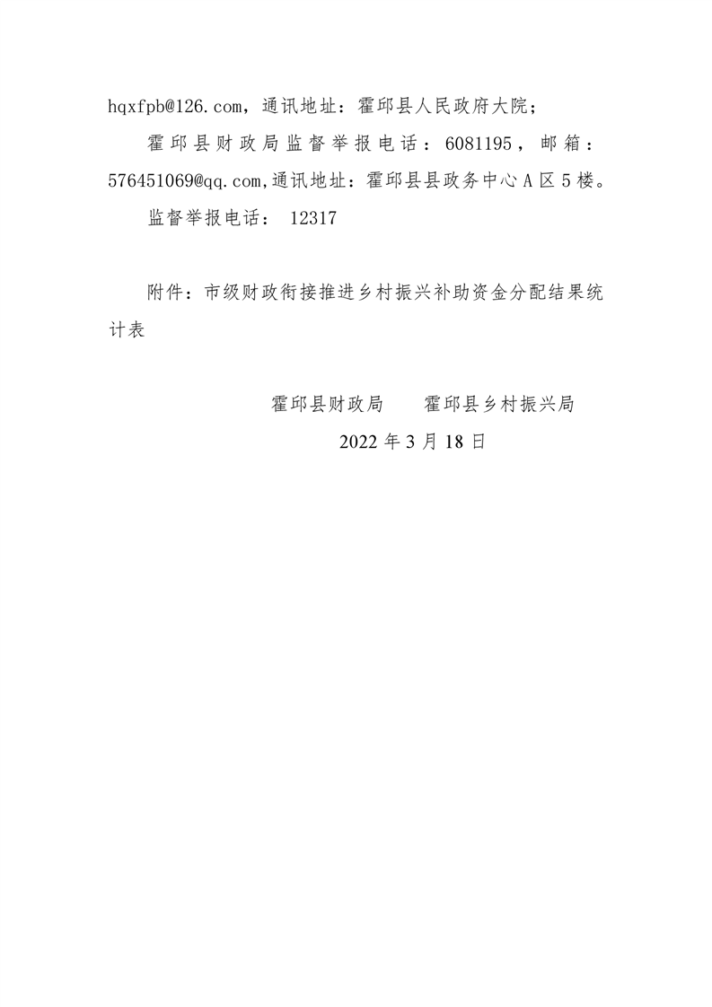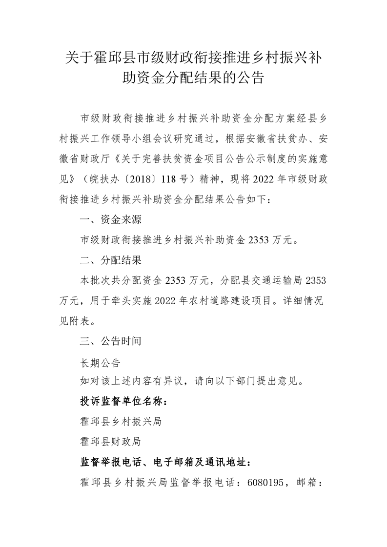 关于霍邱县市级财政衔接补助资金分配结果的公告2353