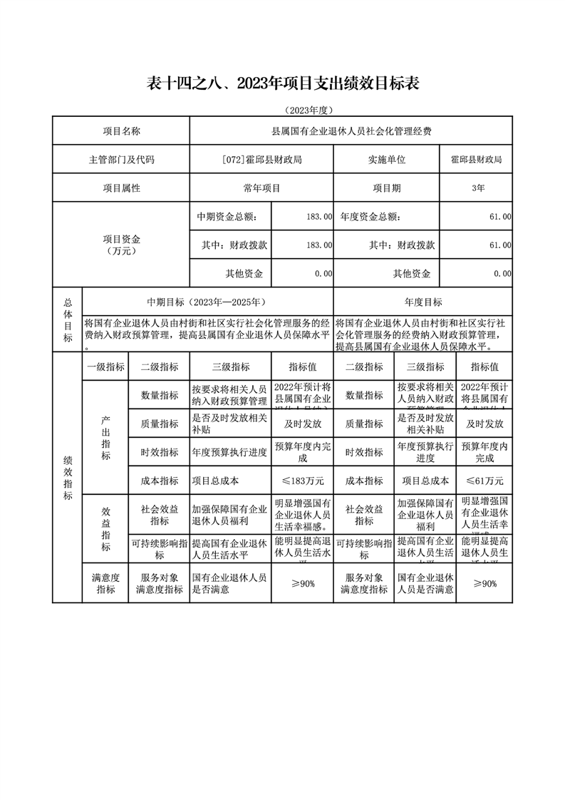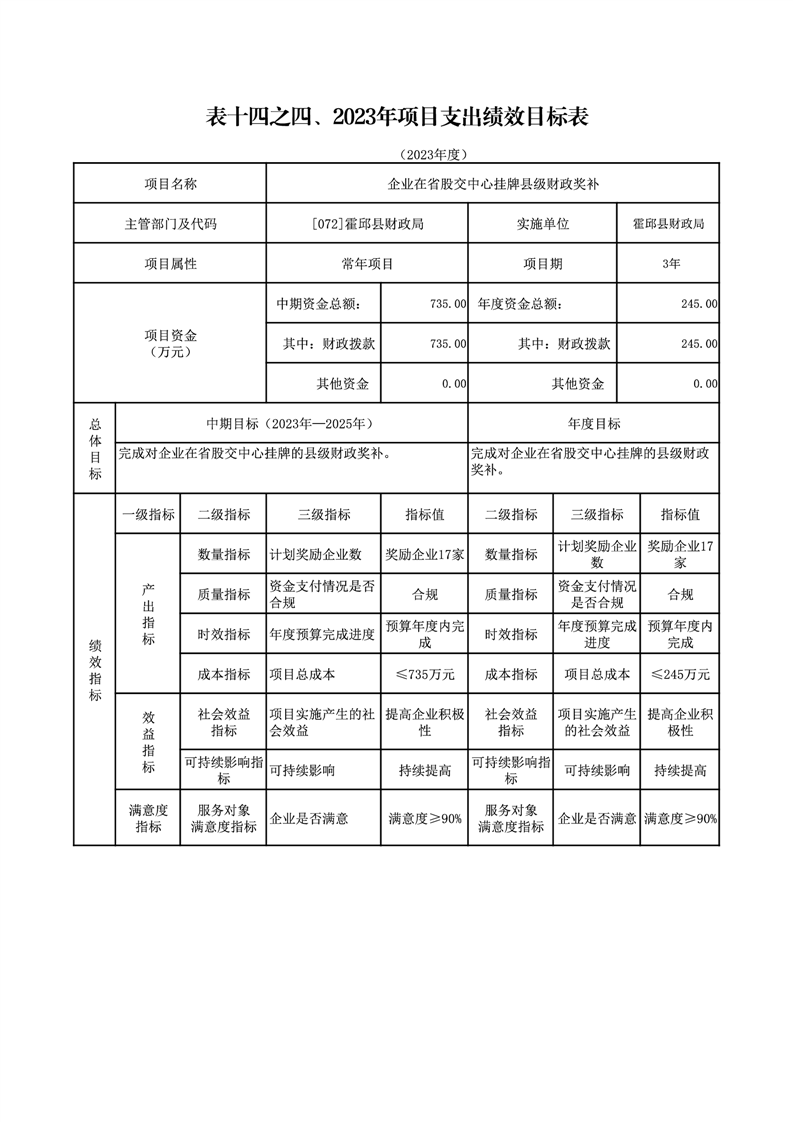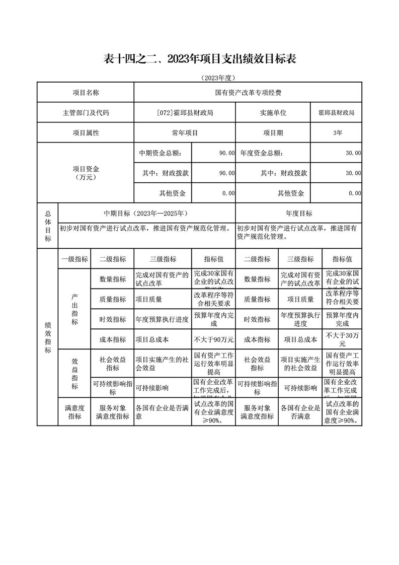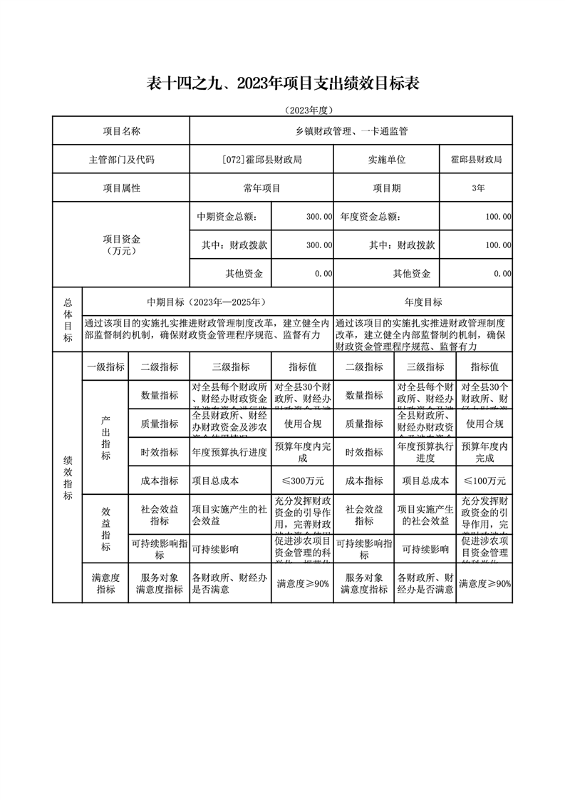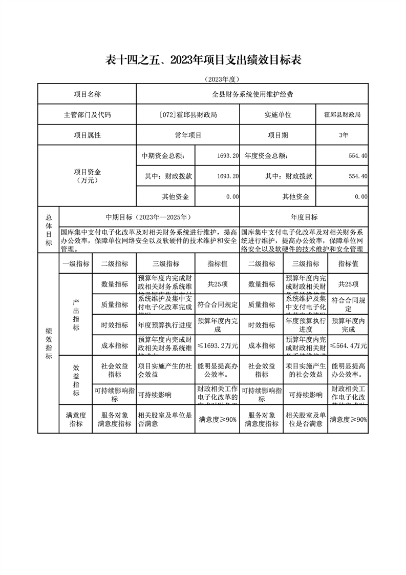 霍邱县财政局2023年绩效目标