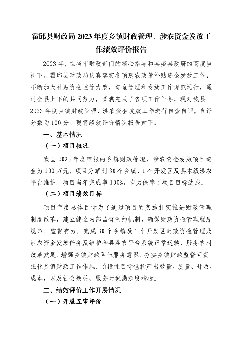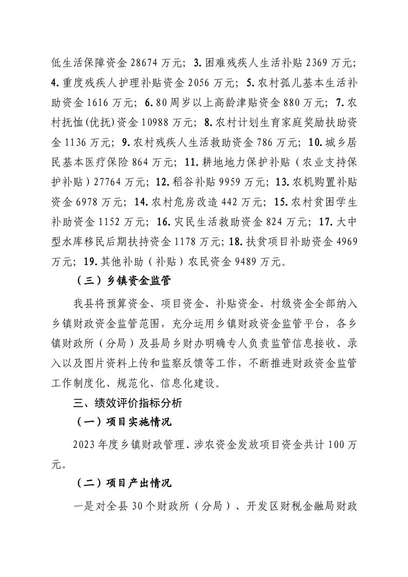 2023年度乡镇财政管理、涉农资金项目支出绩效评价报告