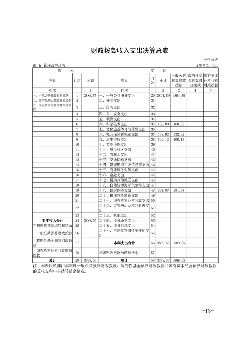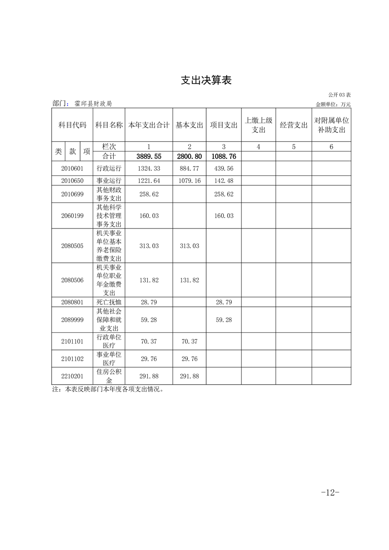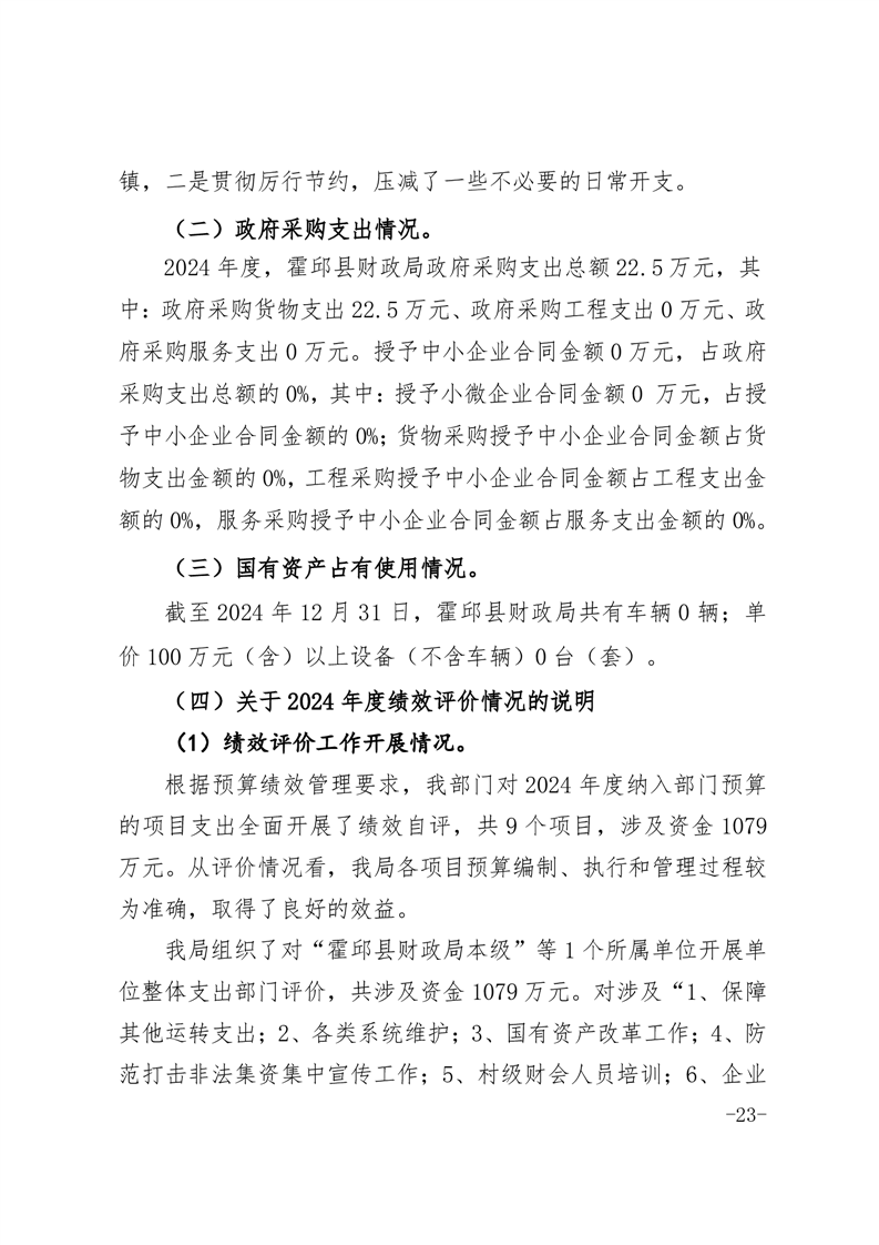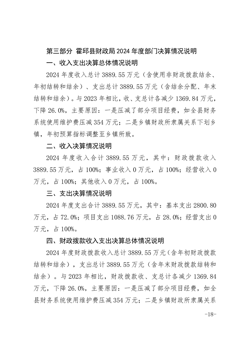 霍邱县财政局2024年度部门决算