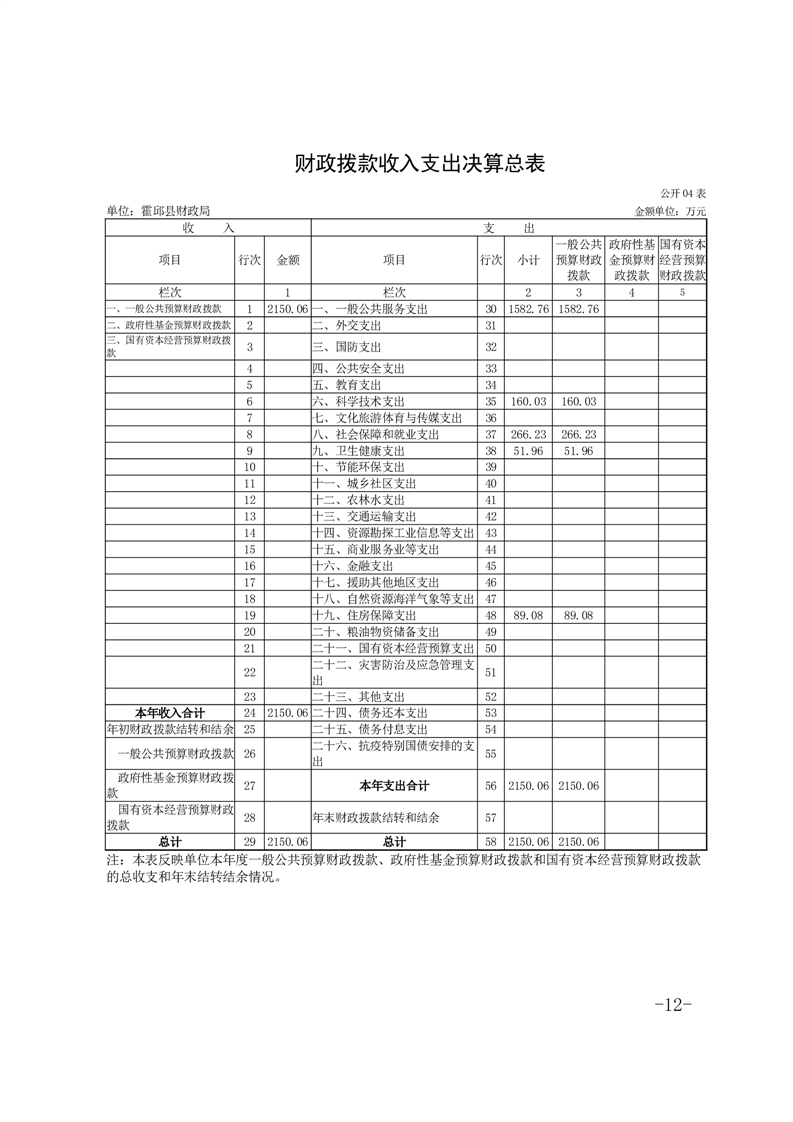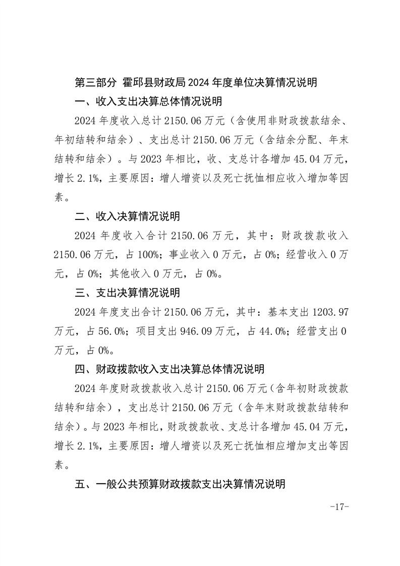 霍邱县财政局2024年度单位决算