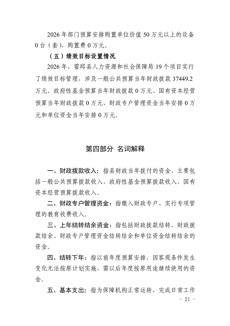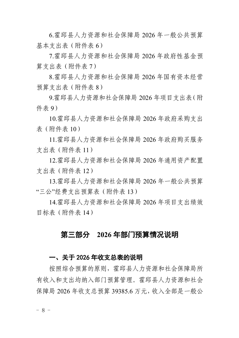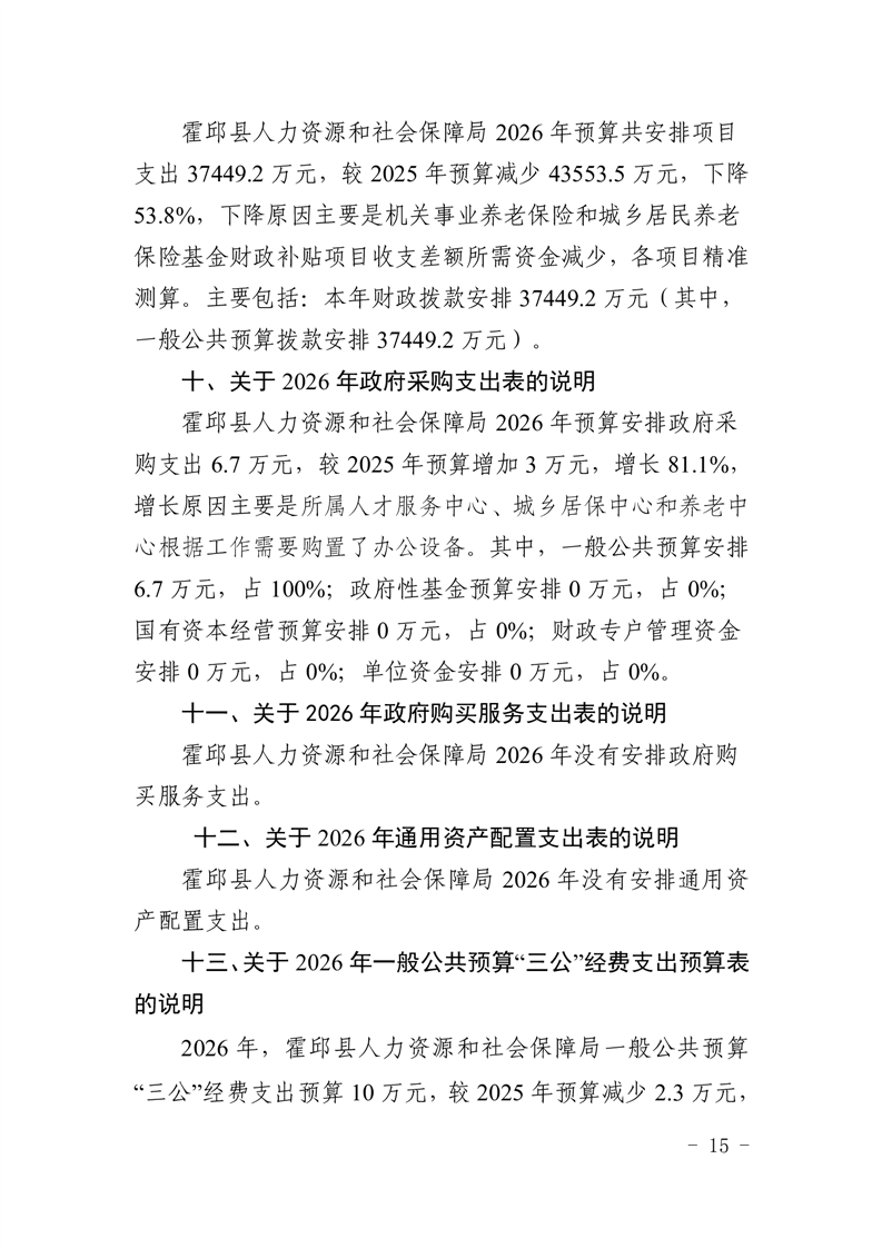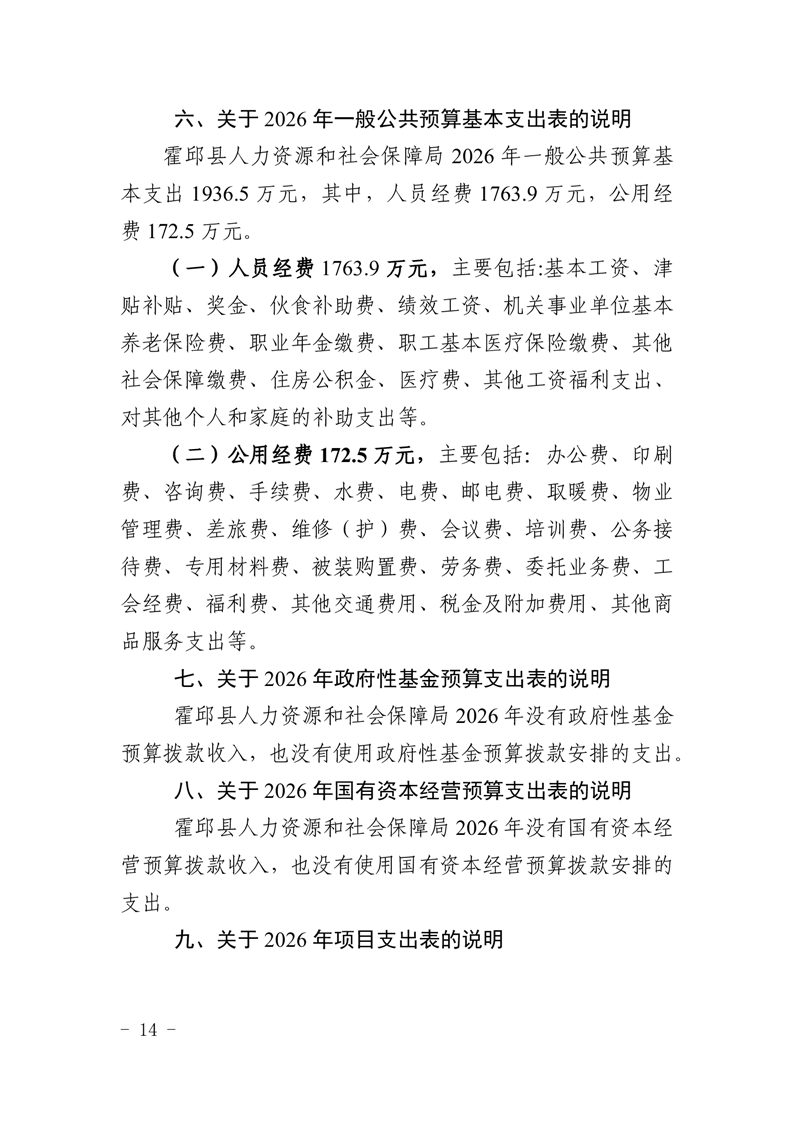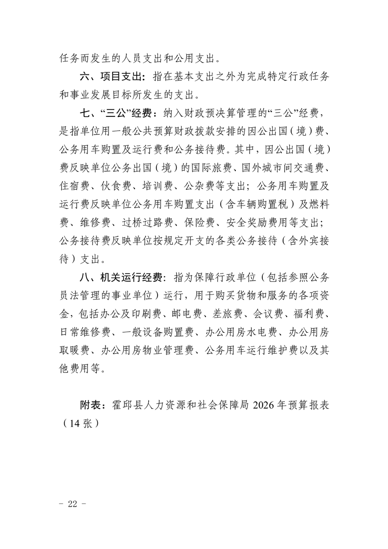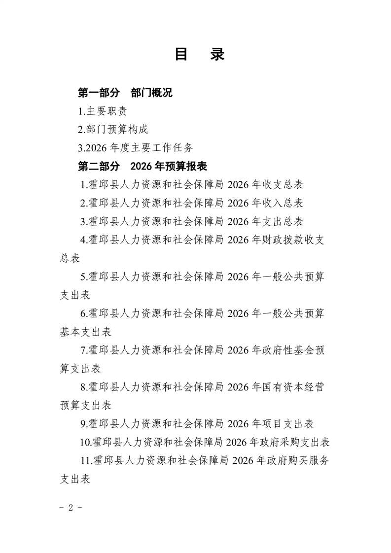 霍邱县人力资源和社会保障局2026年部门预算公开