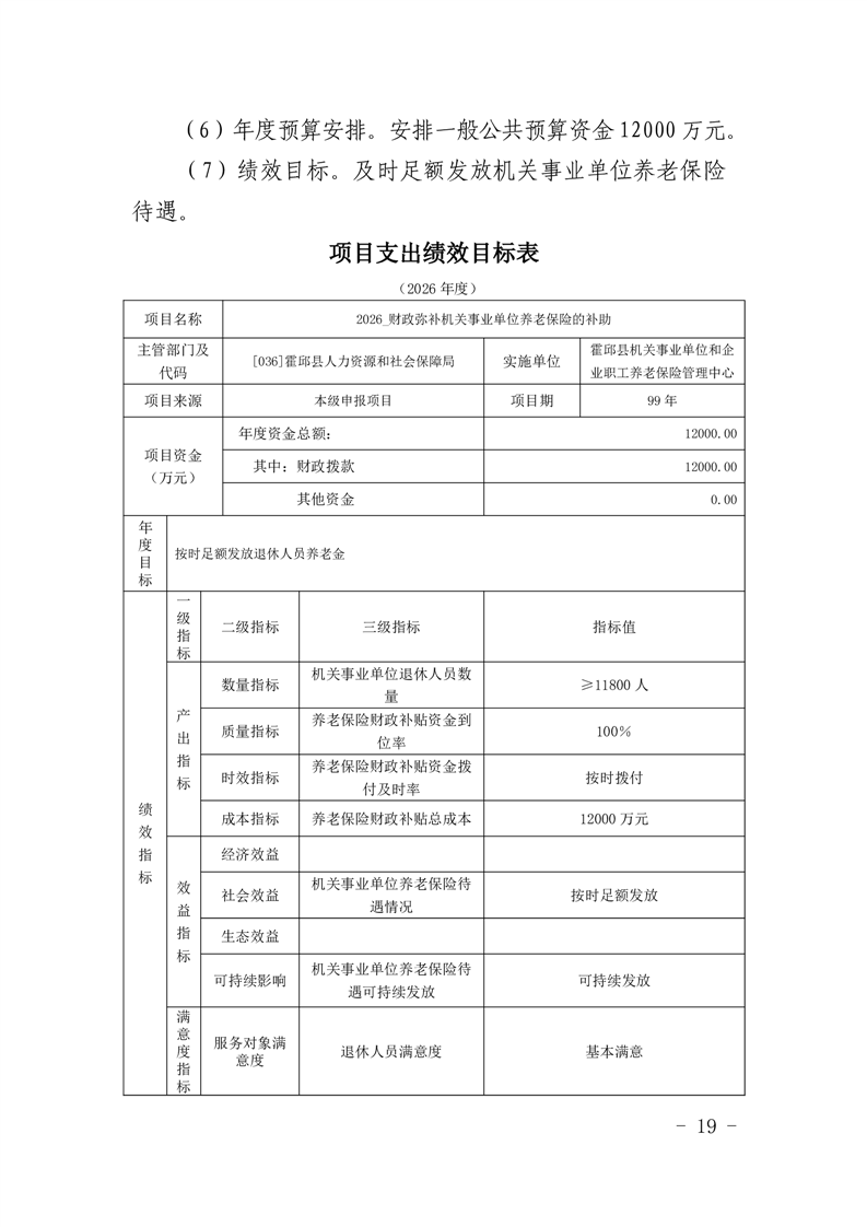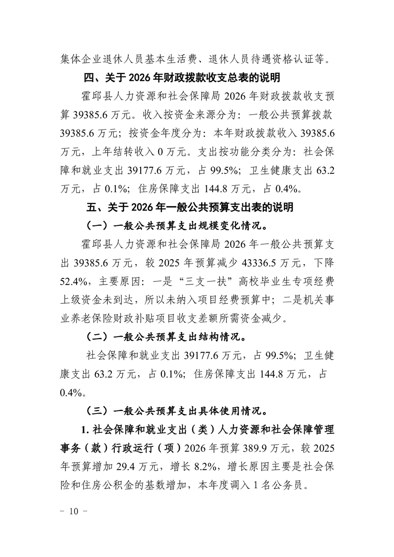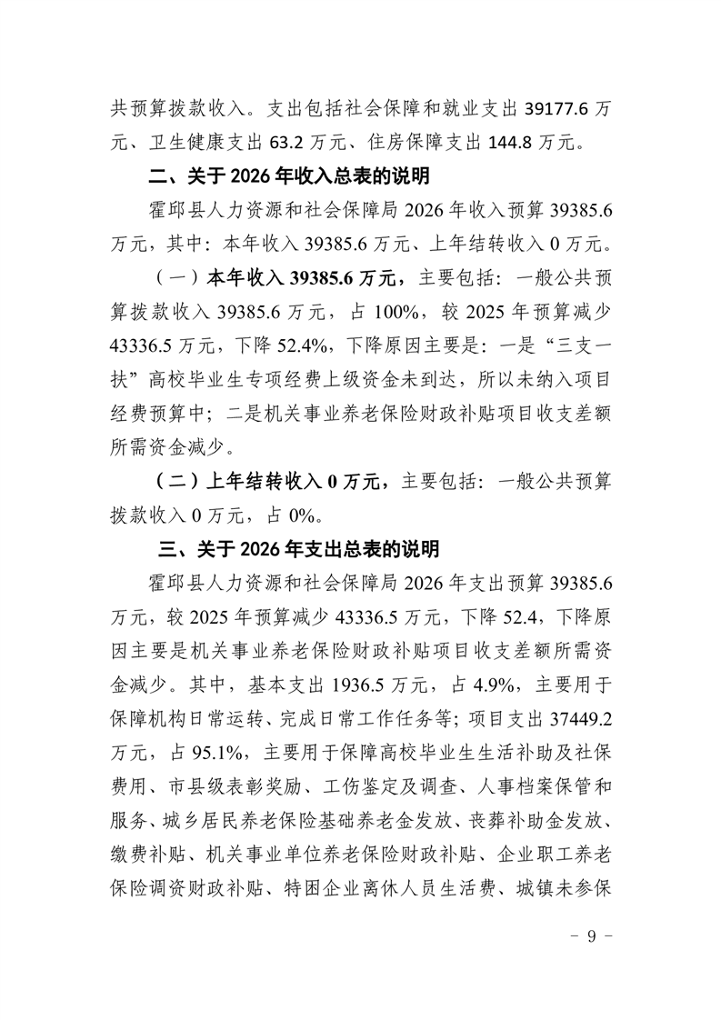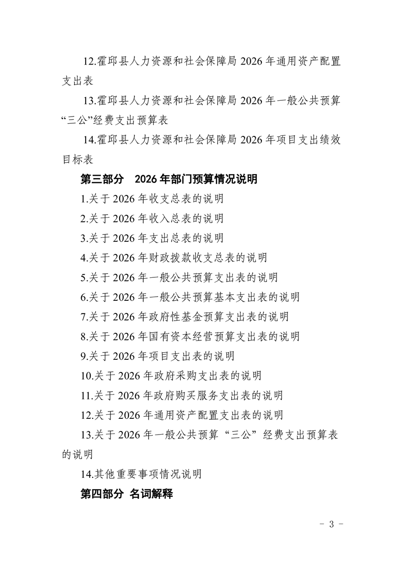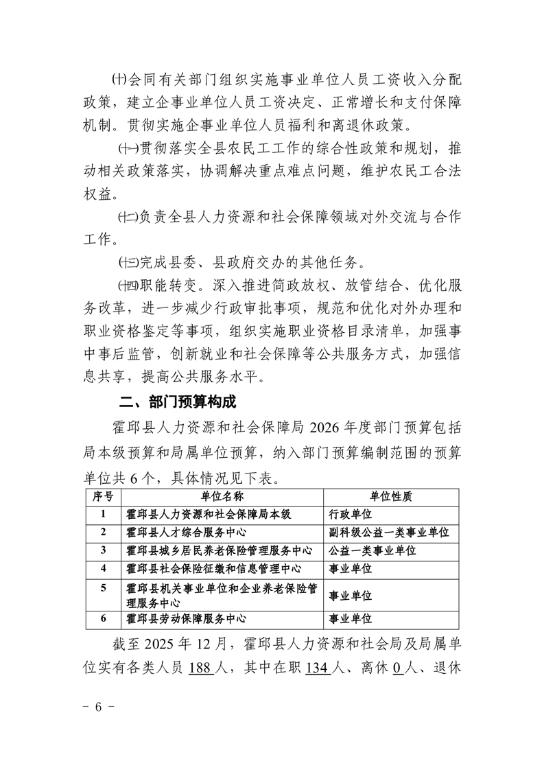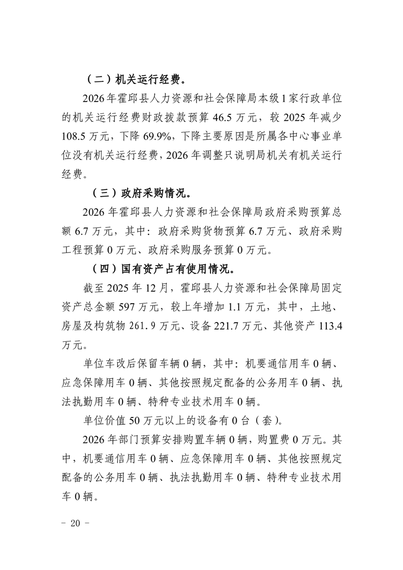 霍邱县人力资源和社会保障局2026年部门预算公开