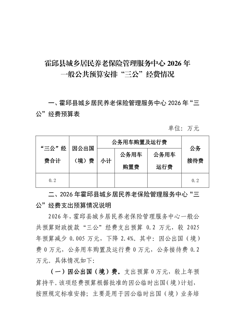 霍邱县城乡居民养老保险管理服务中心2024年度一般公共预算财政拨款“三公”经费支出预算公开