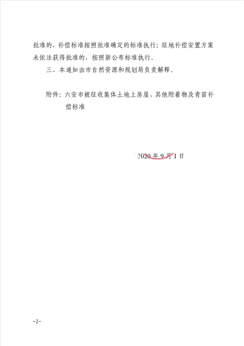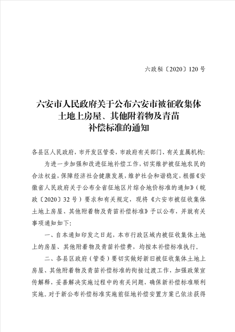 2020年霍邱县被征收集体土地房屋、其他附着物及青苗补偿标准