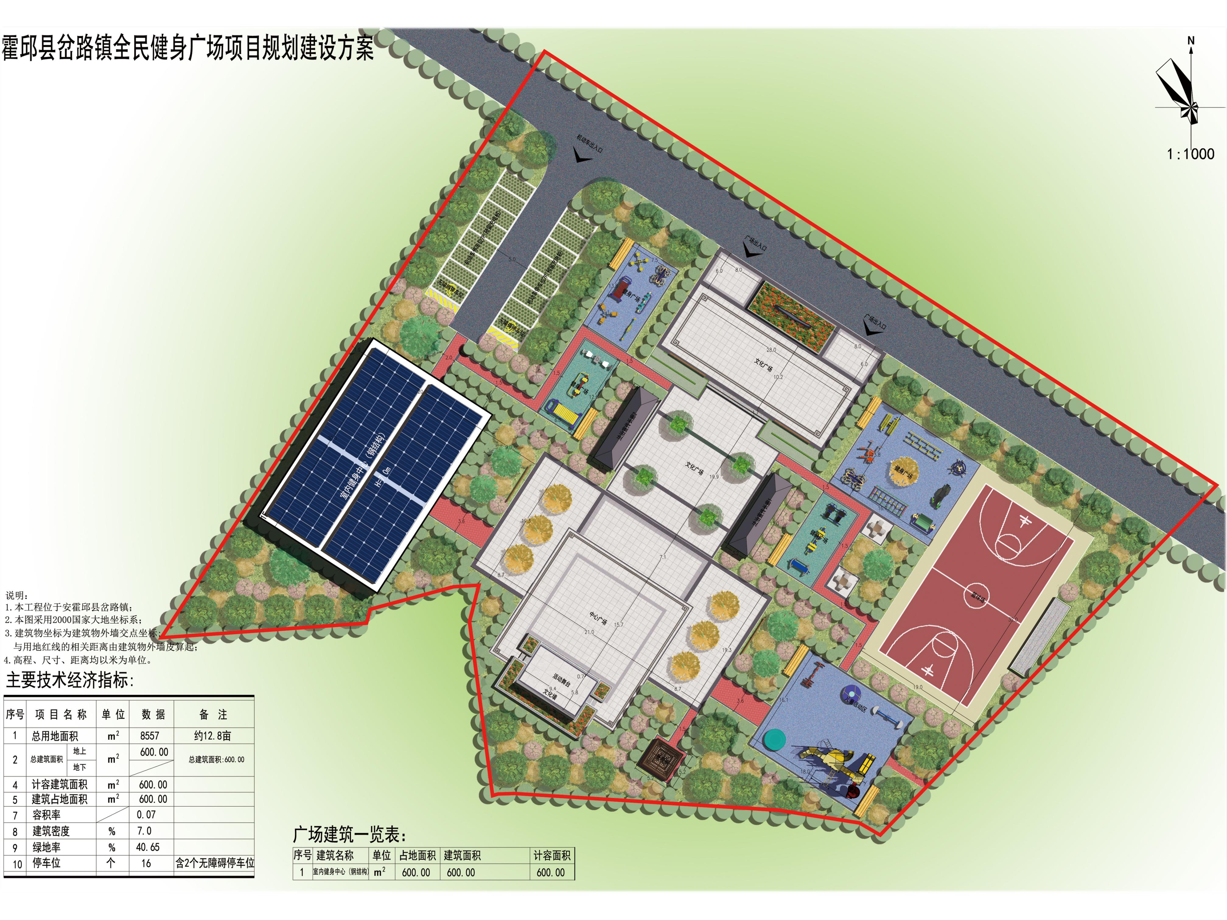 一、项目概况:该项目位于岔路镇街道西侧,用地面积8857㎡(13.3亩),规划一栋室内健身中心、法制宣传长廊、室外标准篮球场、健身广场、绿地游园、停车场等。