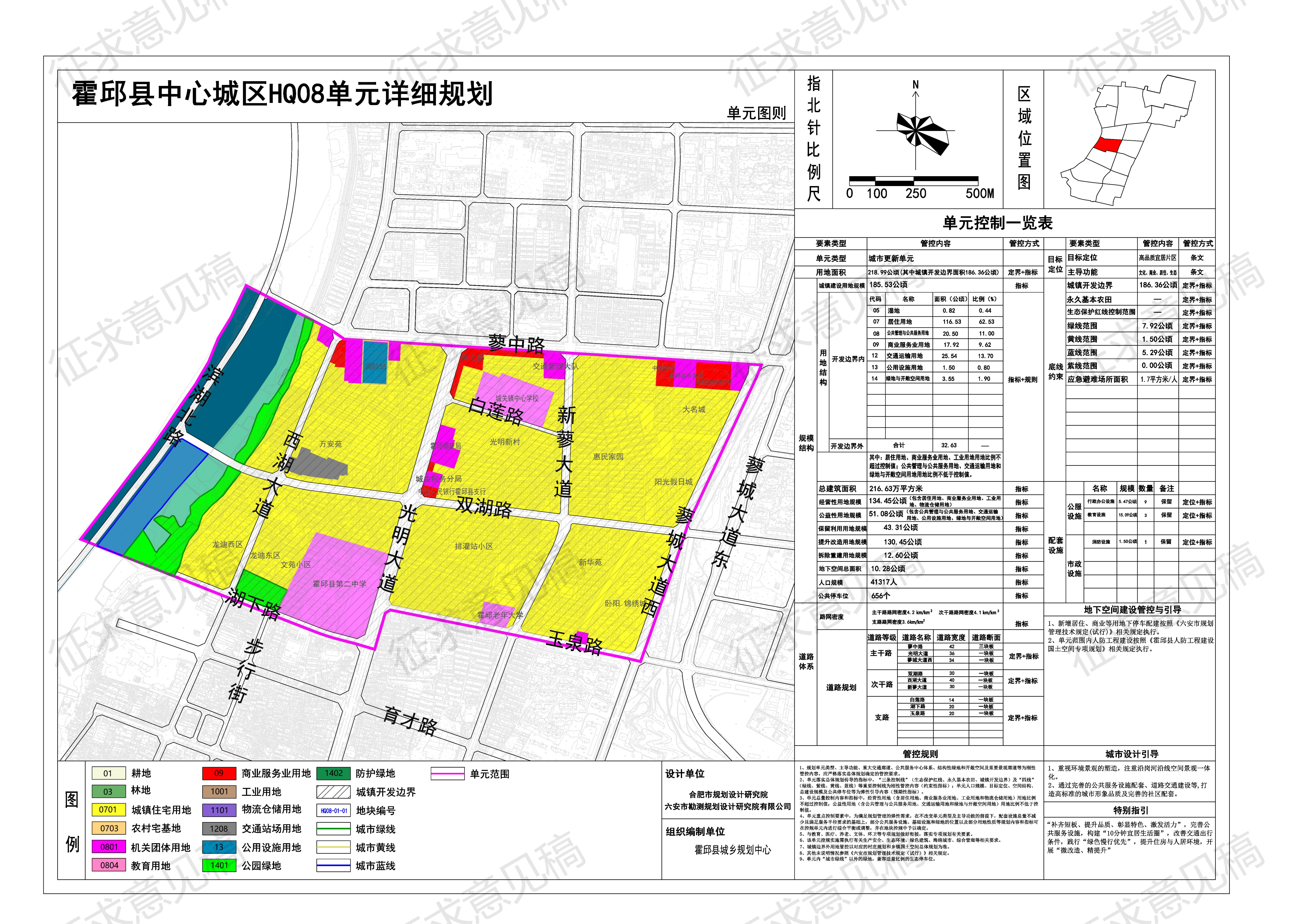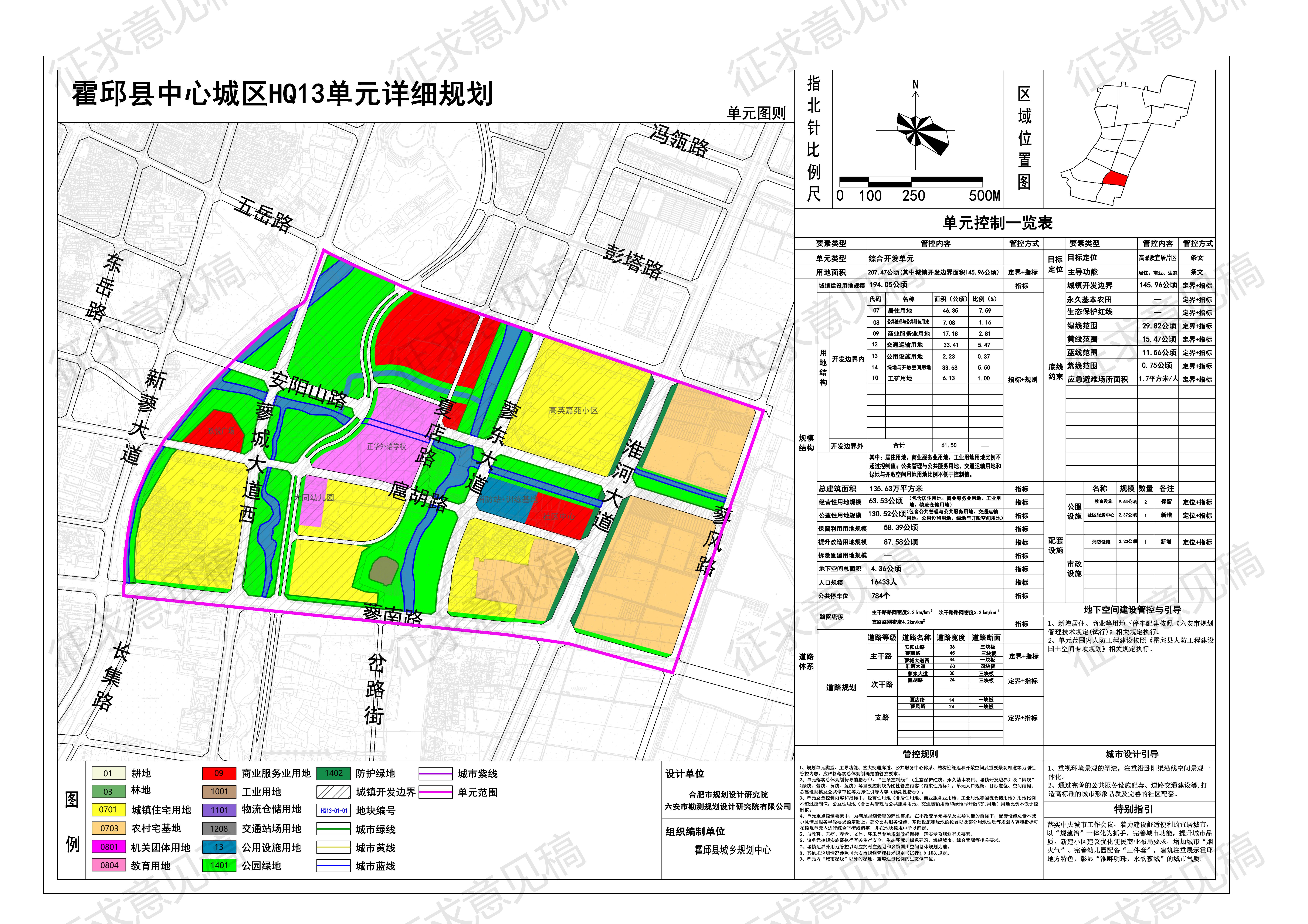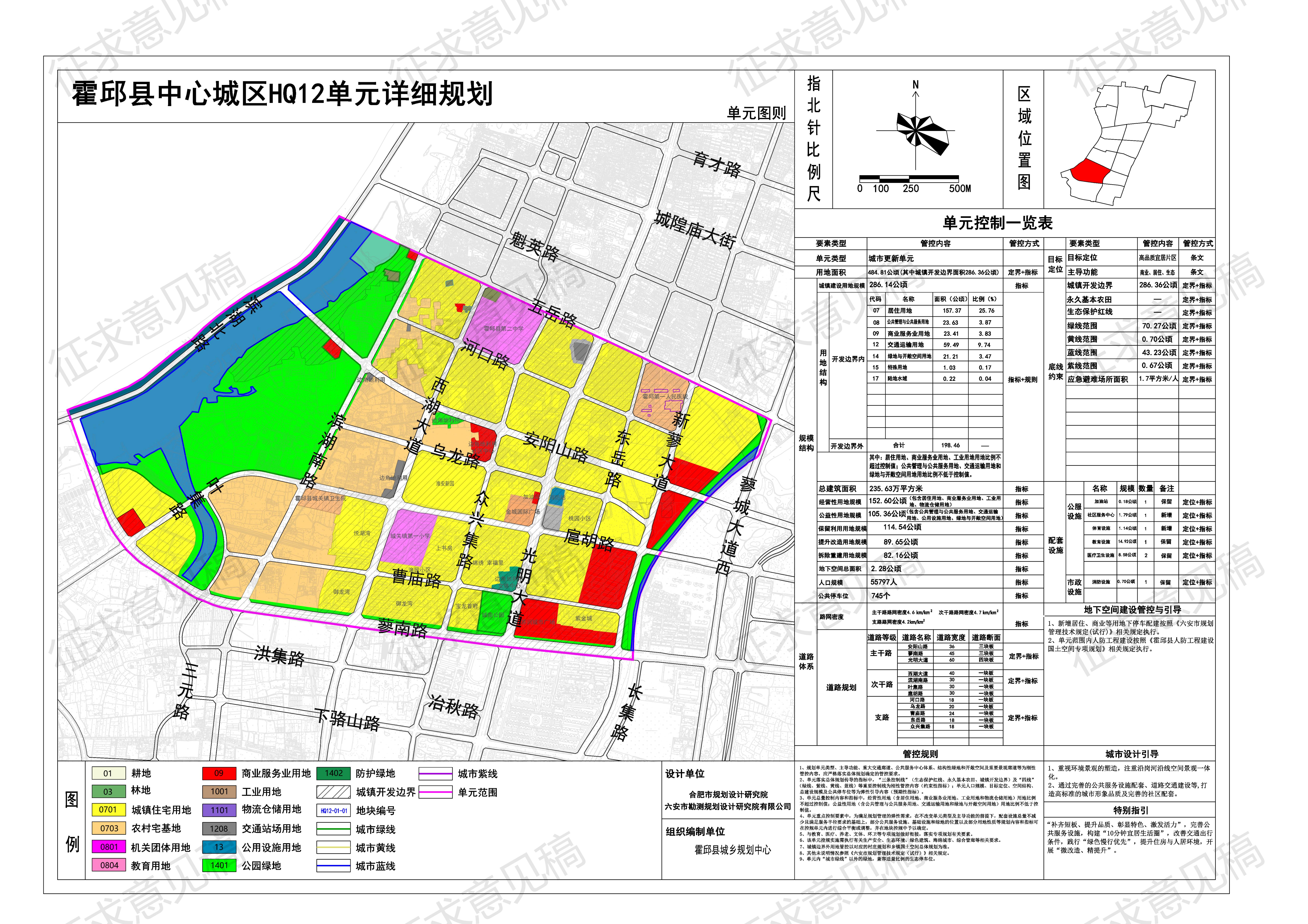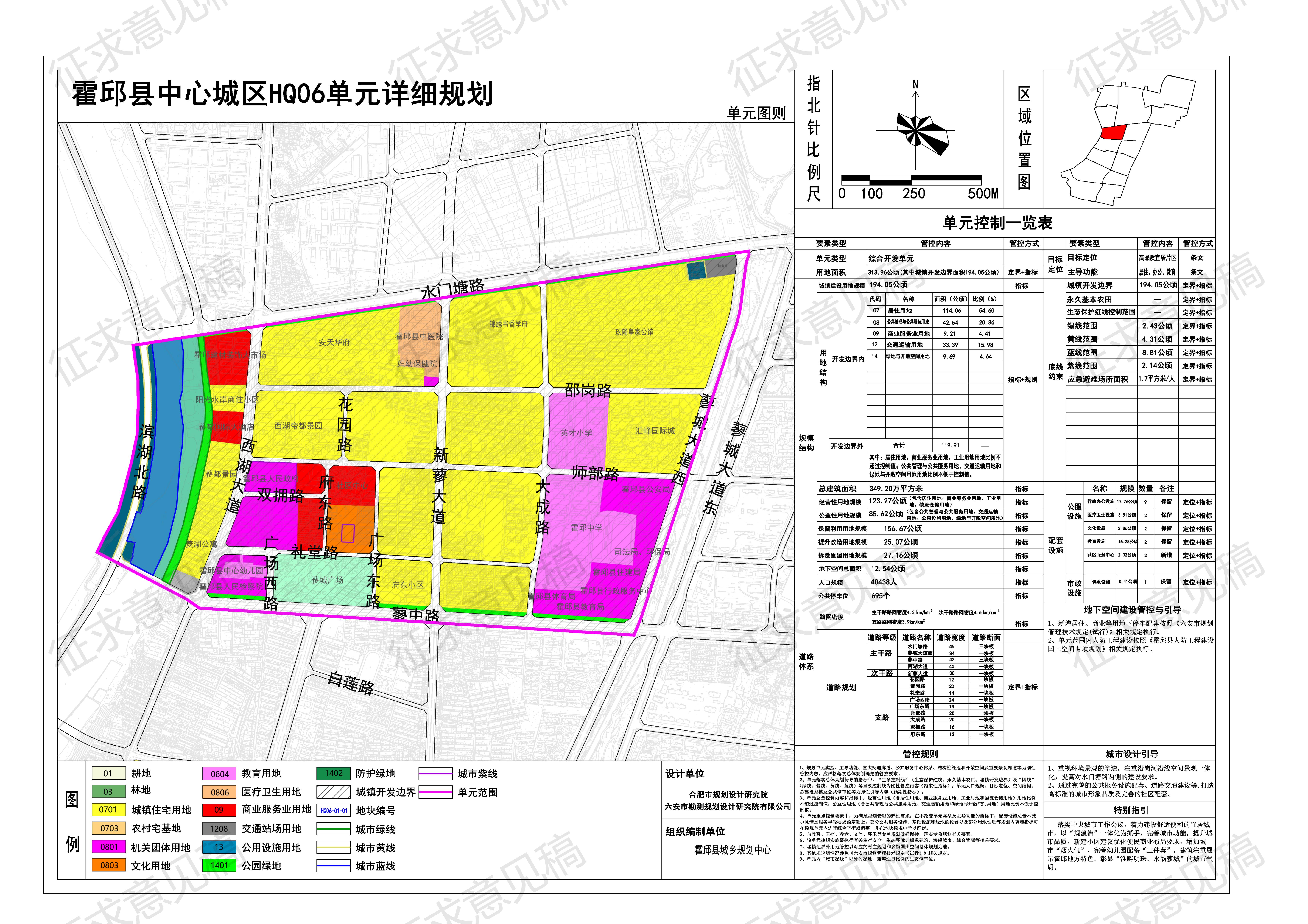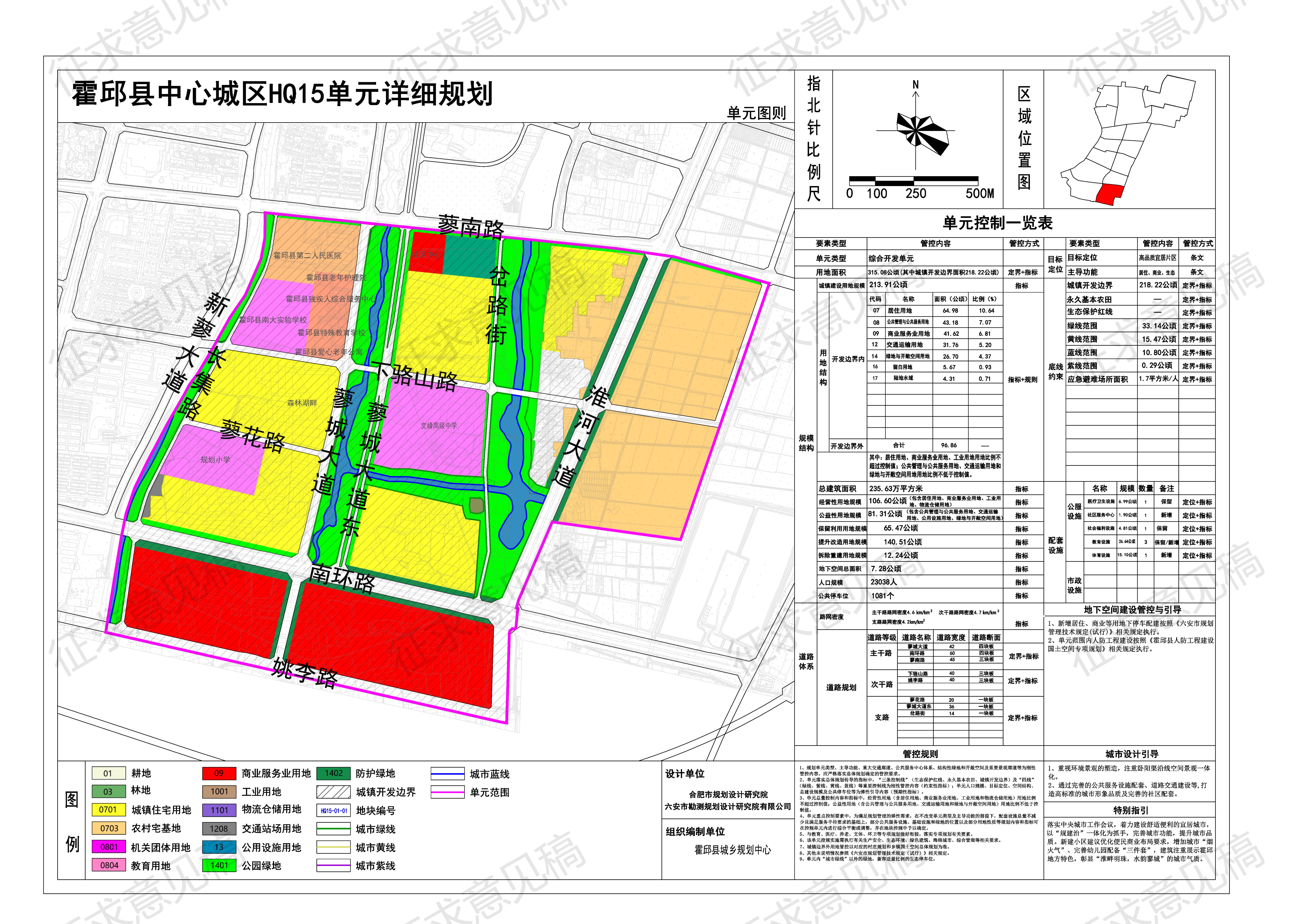 依据《中华人民共和国城乡规划法》等相关规定,现将《霍邱县中心城区 HQ06-15单元详细规划(征求意见稿)》进行批前公示,征询公众意见。如有意见者,请在公示期内以纸质或者电子邮件形式与我中心联系,我中心将在公示期满后综合分析有关公众的意见。