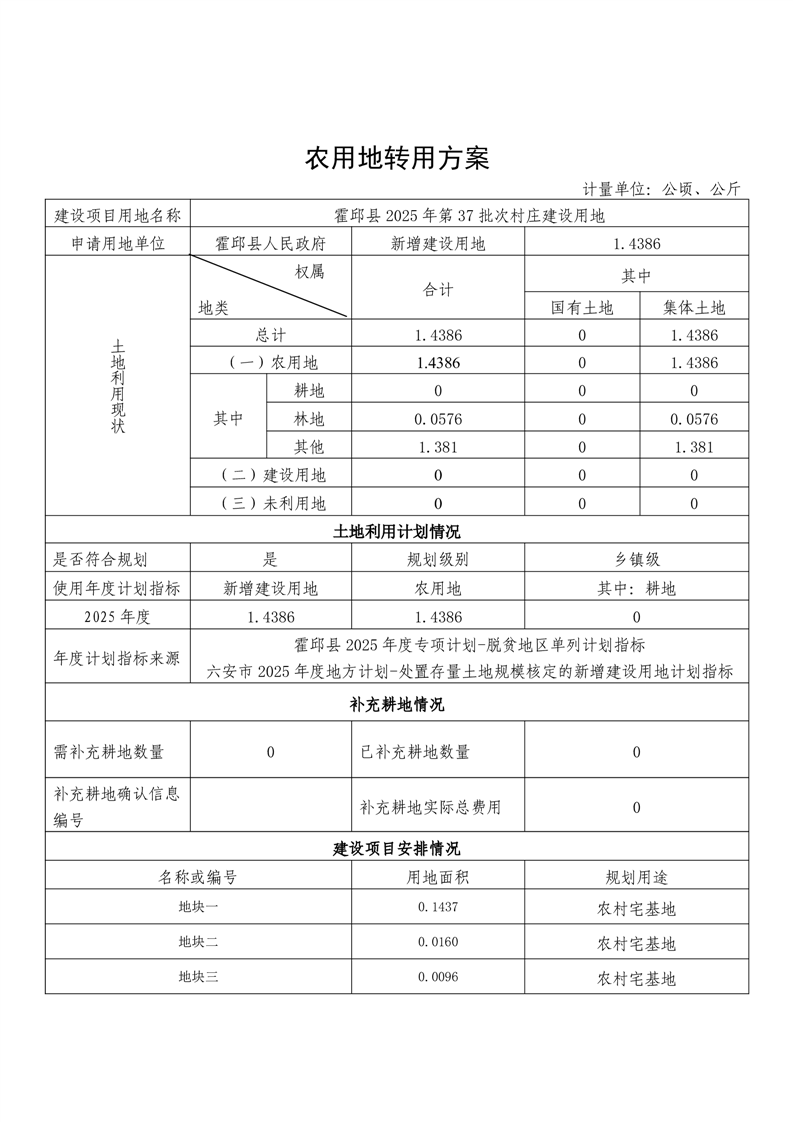 霍邱县2025年第37批次村庄建设用地(农转用方案)