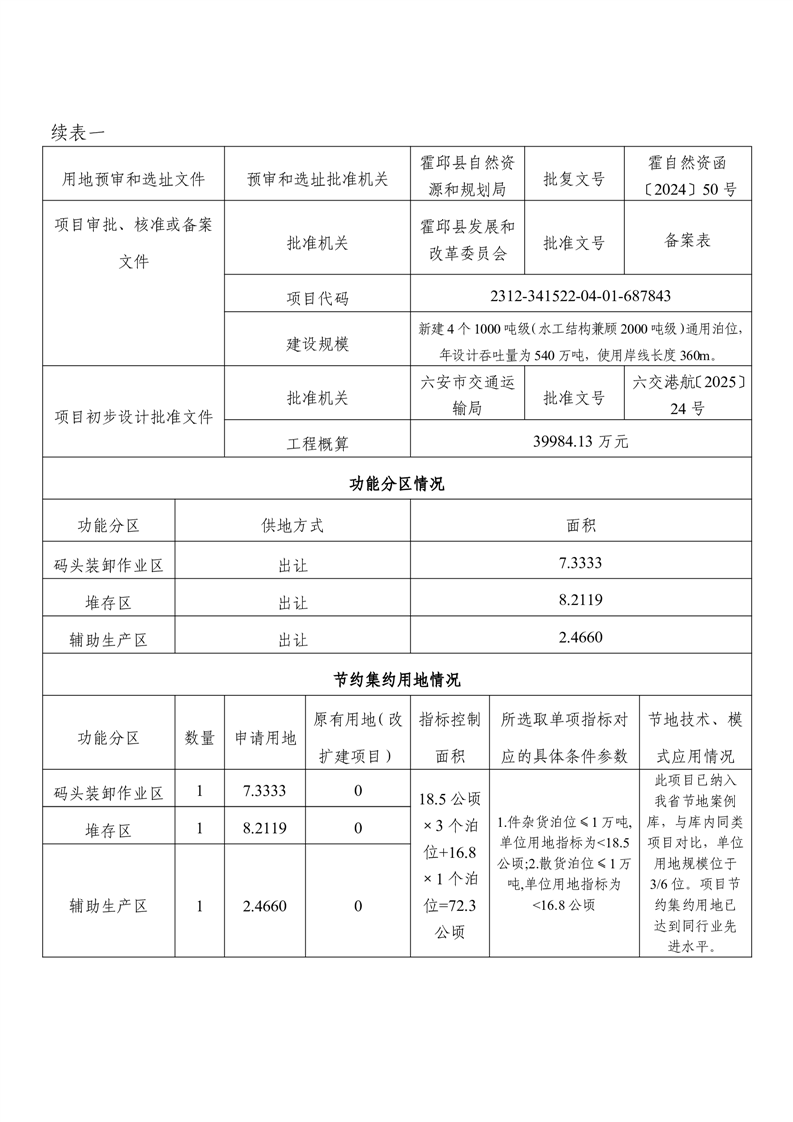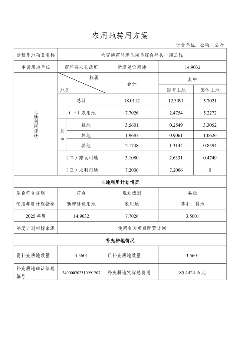 关于申请六安港霍邱港区周集综合码头一期工程建设用地(农转用方案)