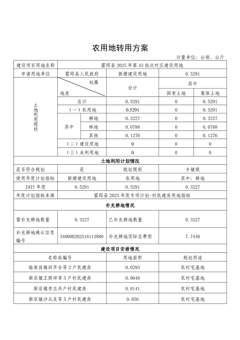 霍邱县2025年第43批次村庄建设用地(农转用方案)