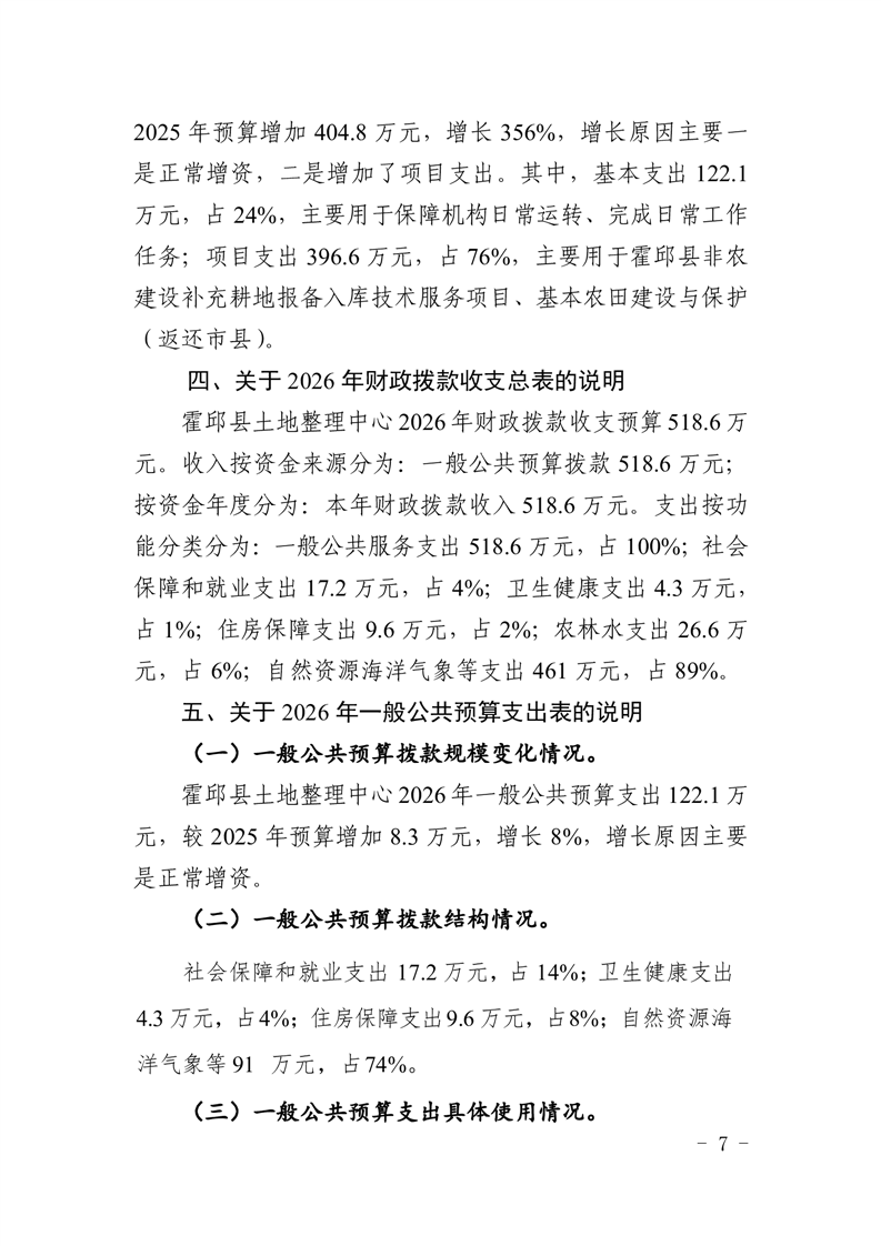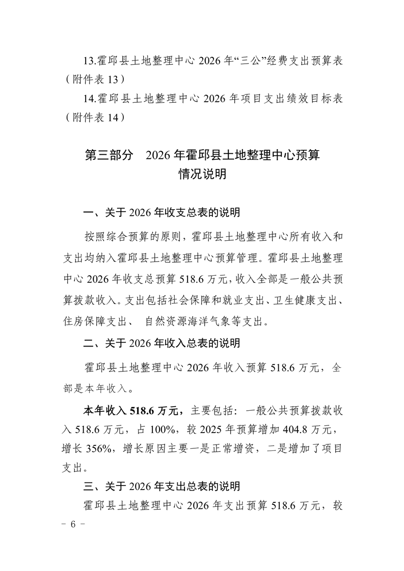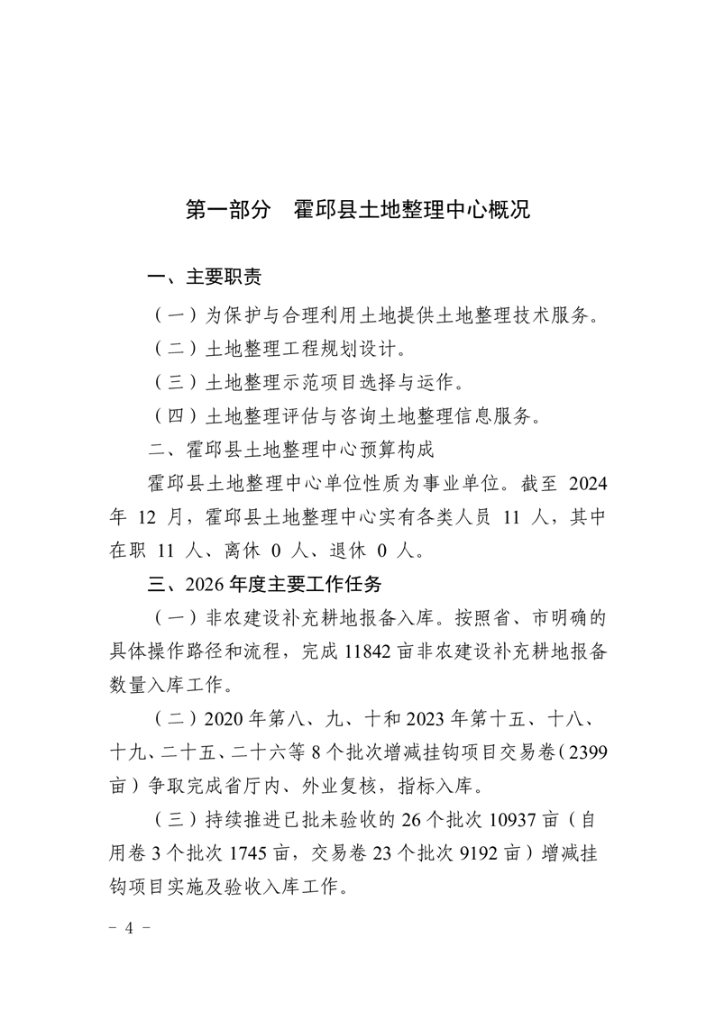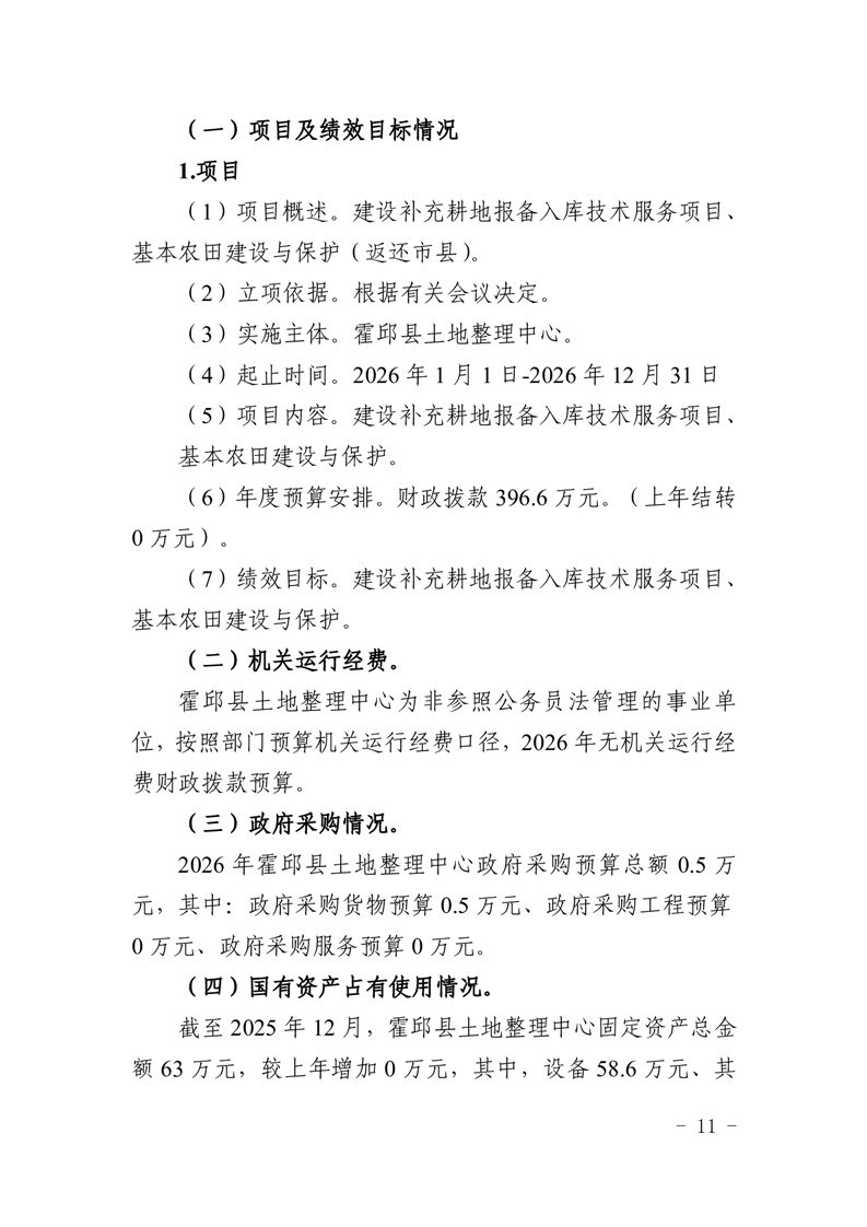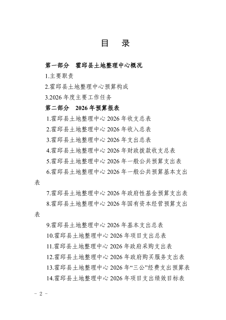 霍邱县土地整理中心2026年单位预算公开