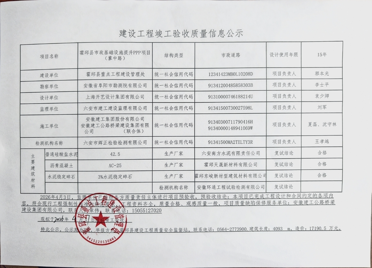 霍邱县市政基础设施提升PPP项目(蓼中路)