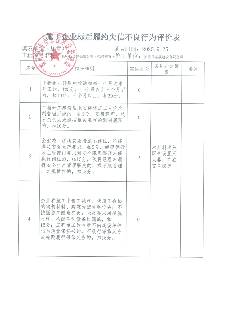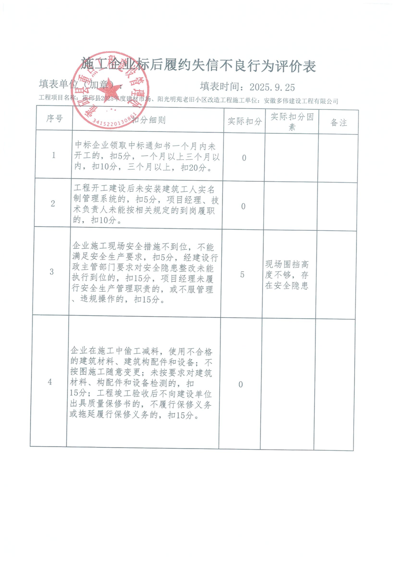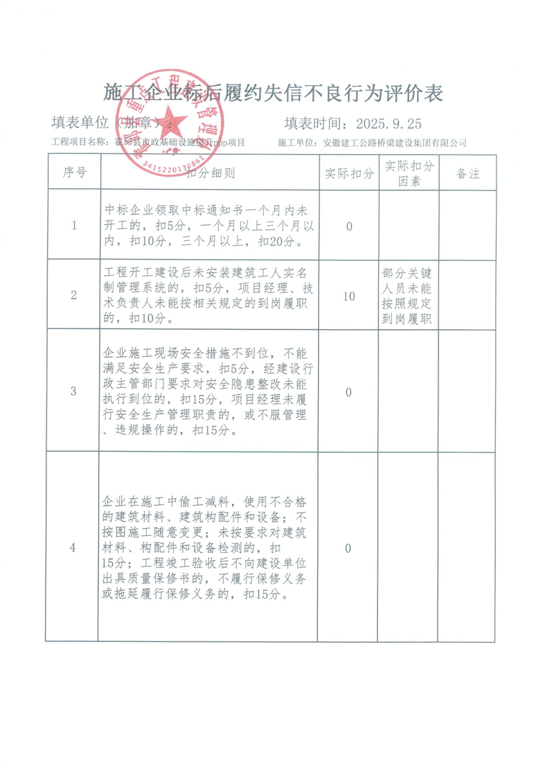 霍邱县重点处2025年三季度施工企业标后履约情况通报