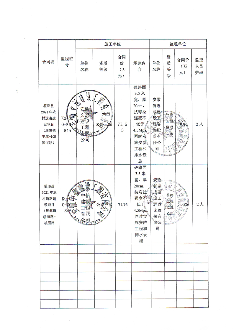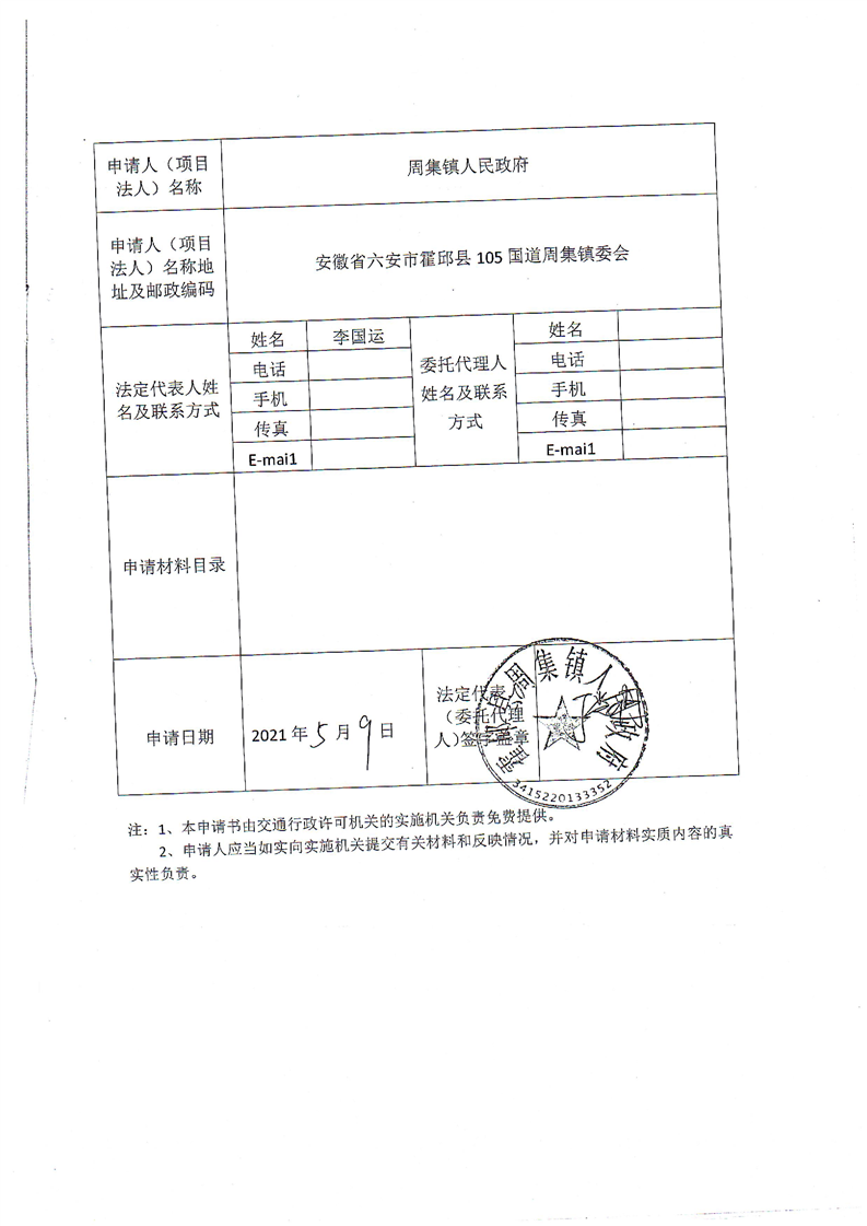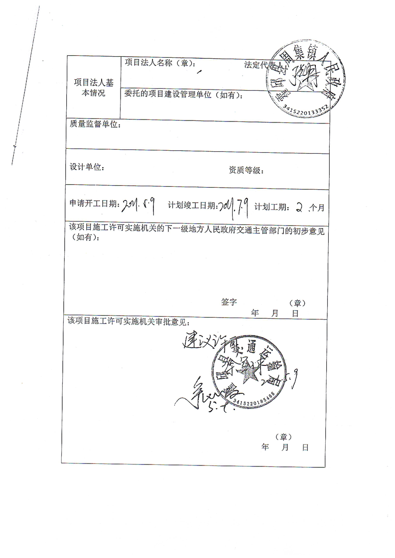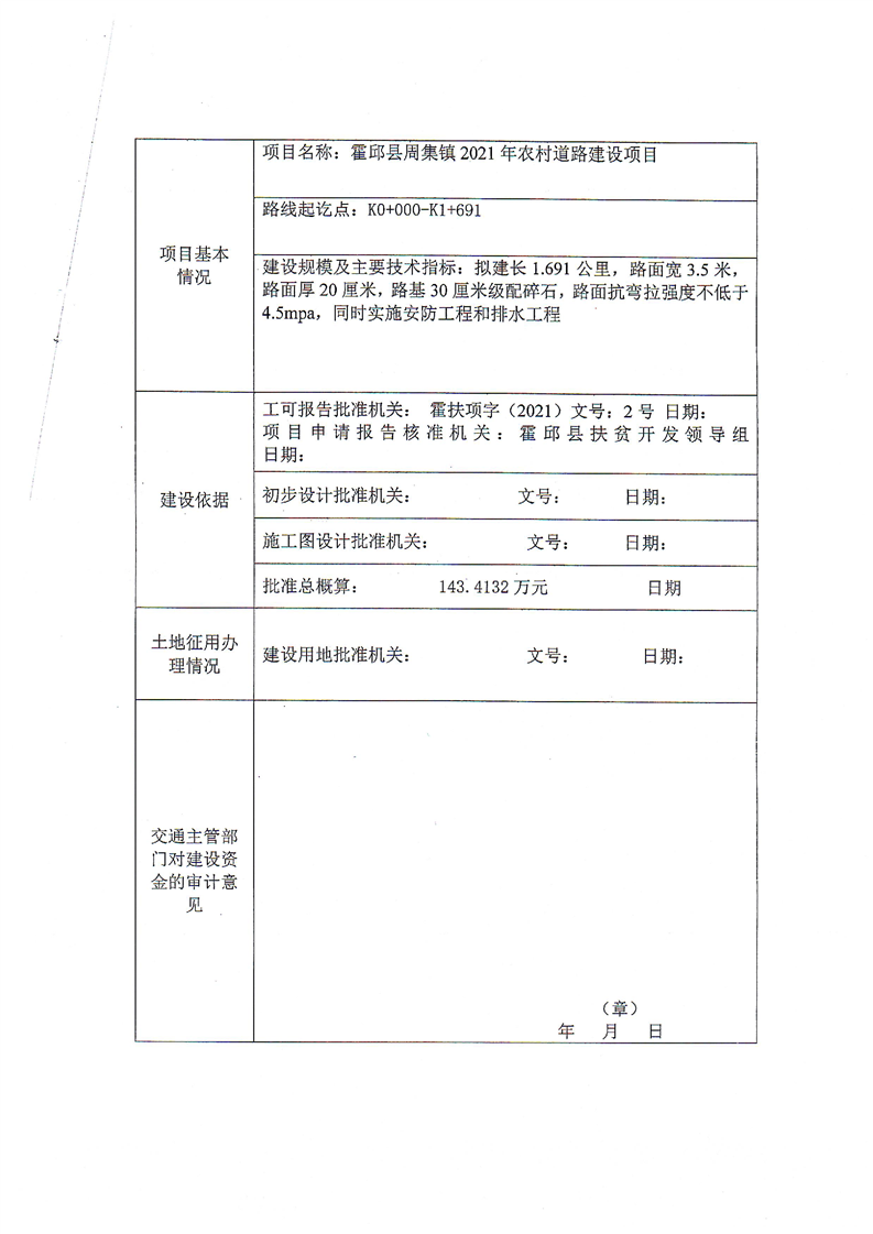 霍邱县周集镇2021年村级道路建设项目施工许可申请书