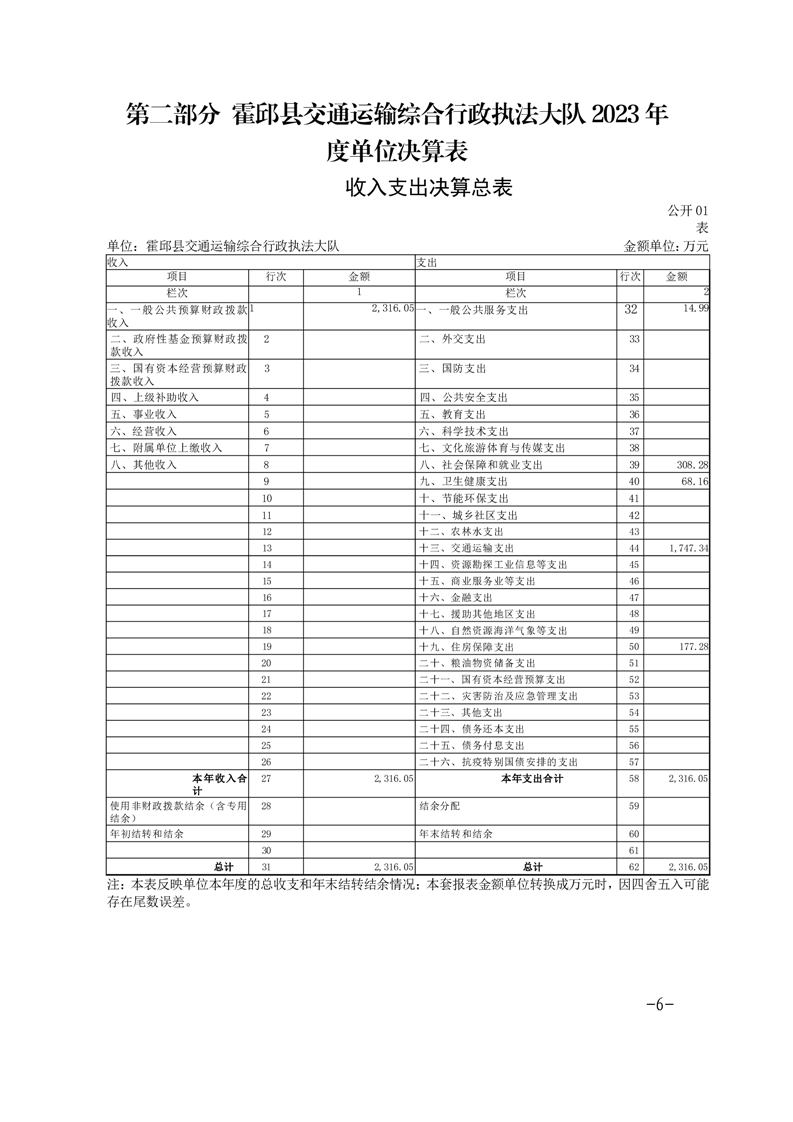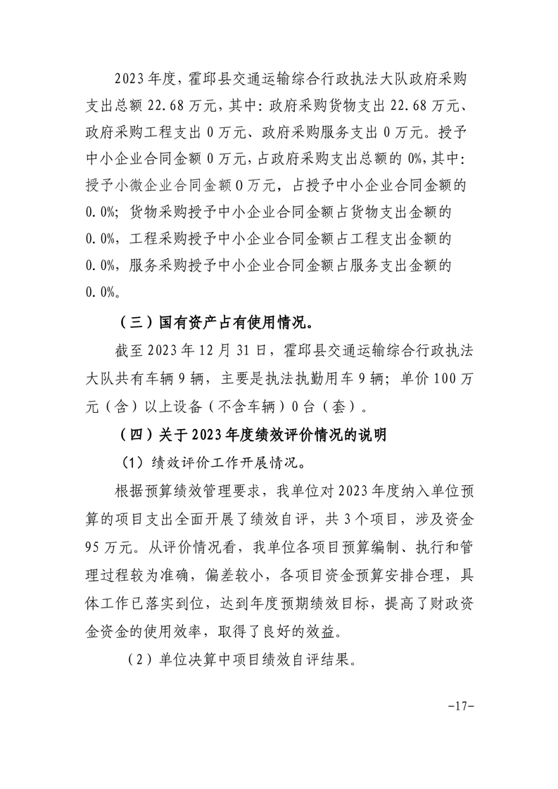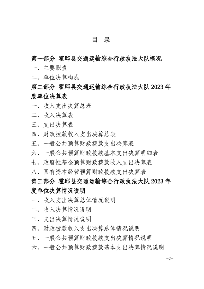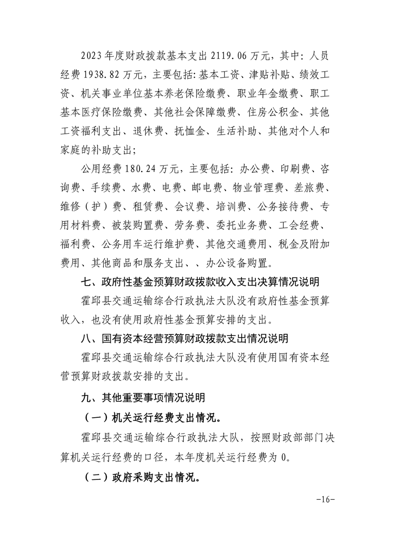 霍邱县交通运输综合行政执法大队2023年度单位决算