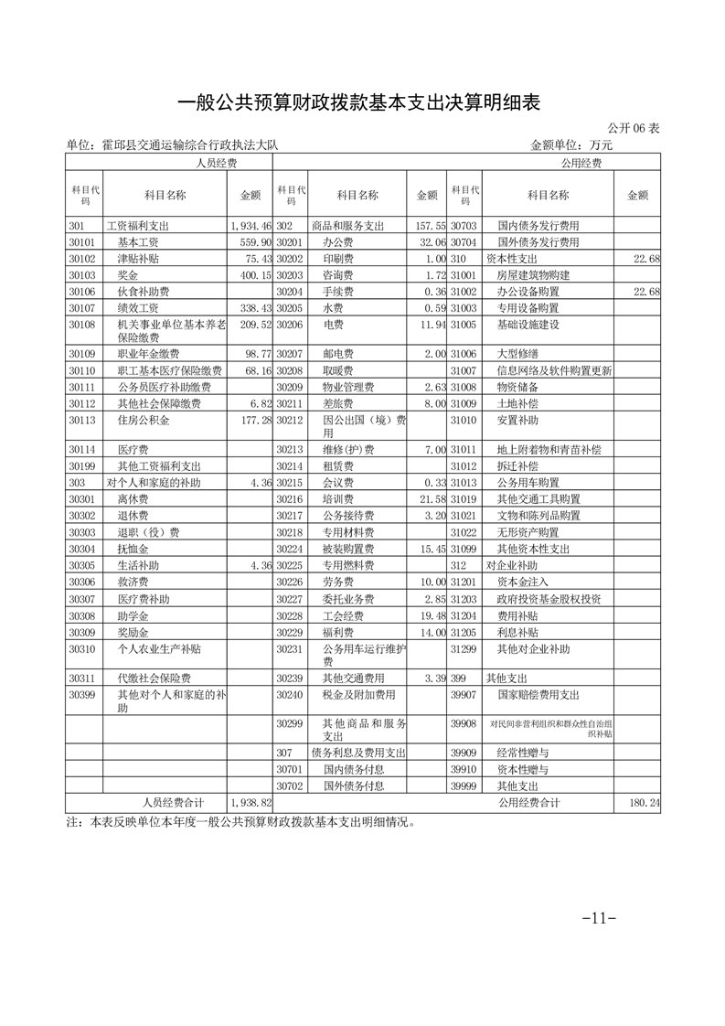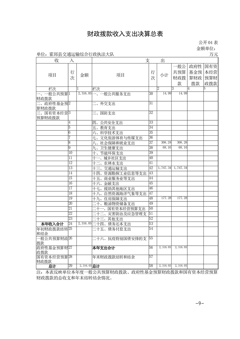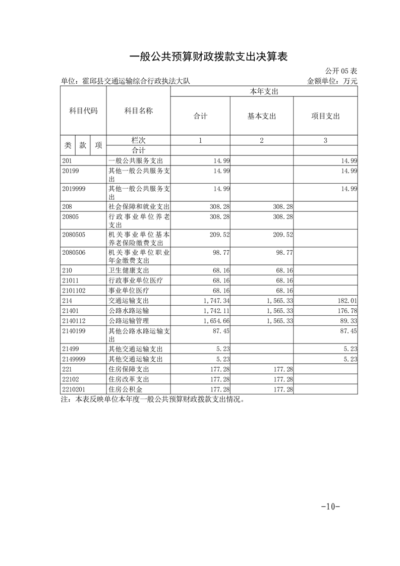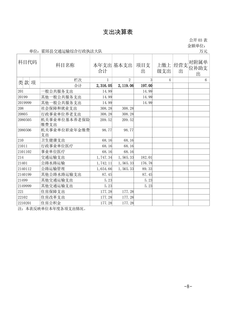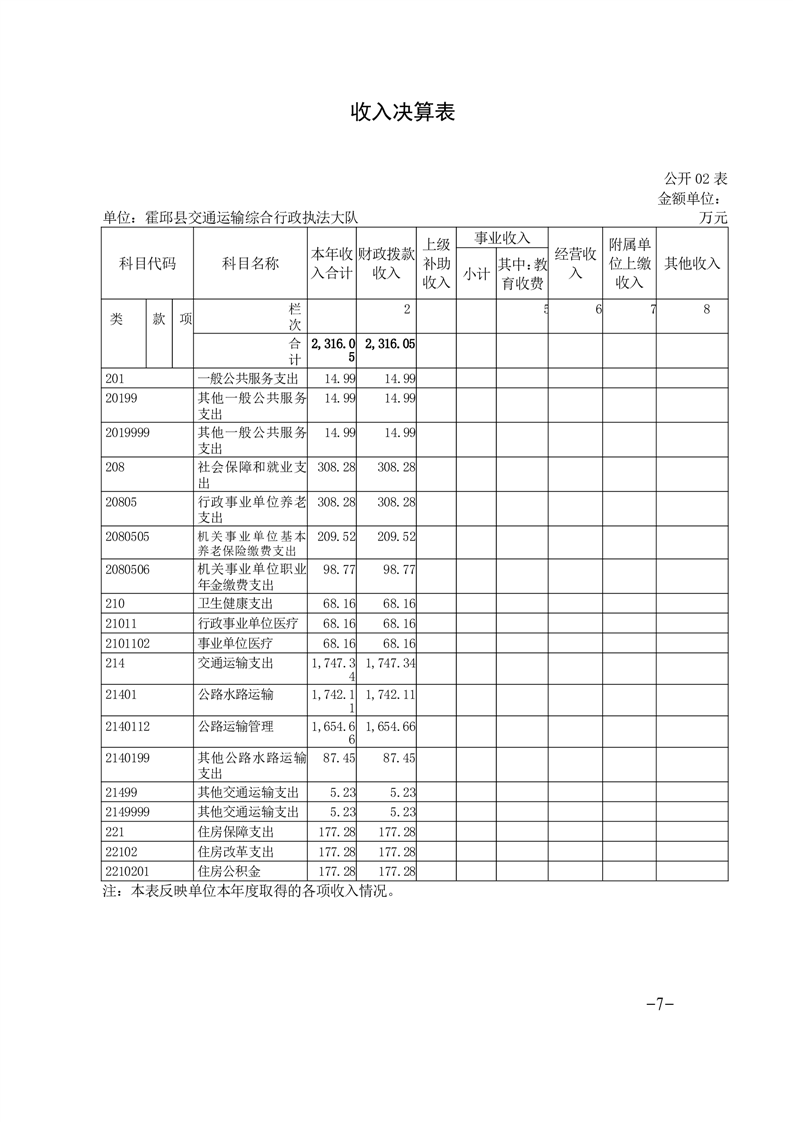 霍邱县交通运输综合行政执法大队2023年度单位决算