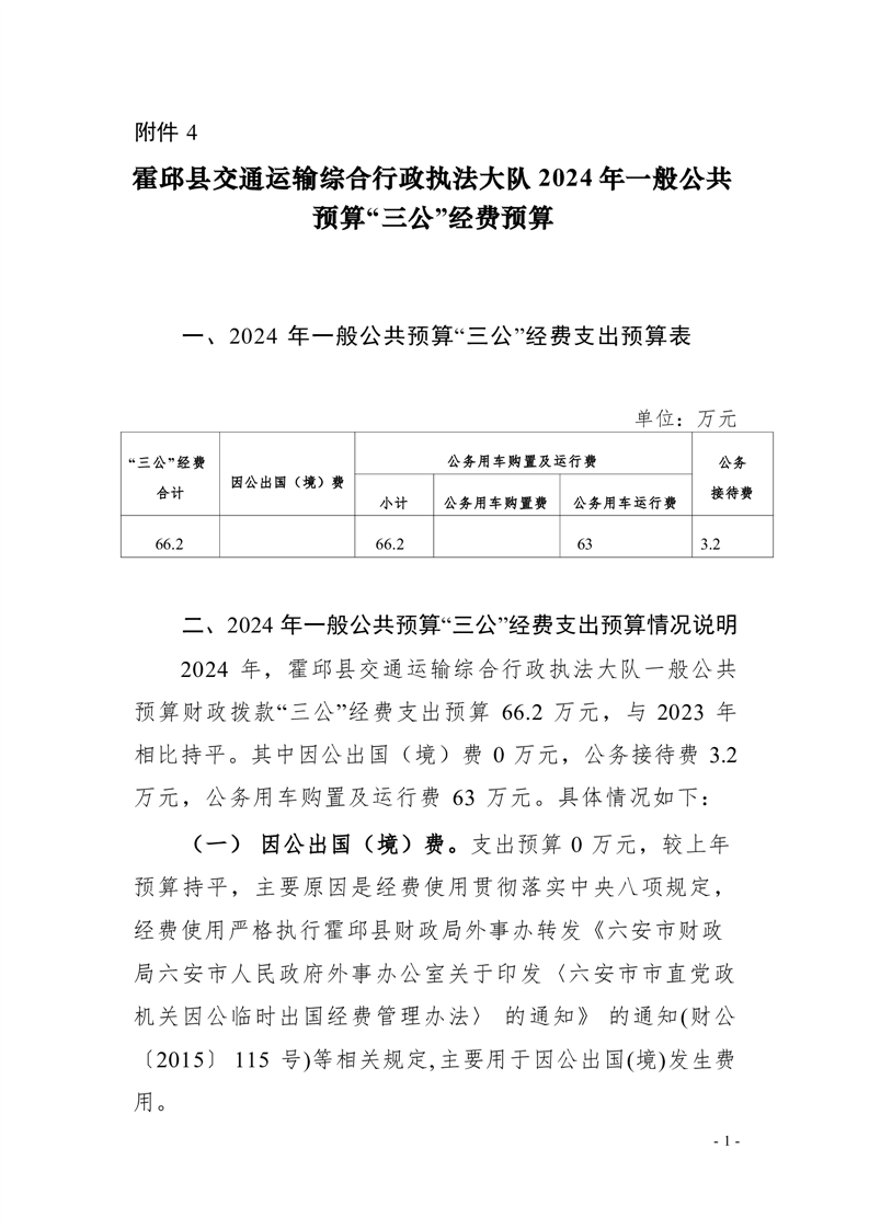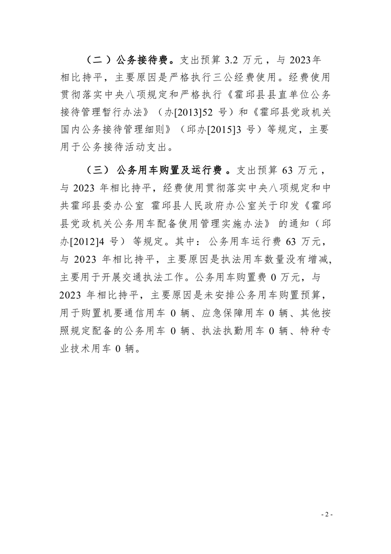 霍邱县交通运输综合行政执法大队2023年度一般公共预算财政拨款“三公”经费支出决算公开