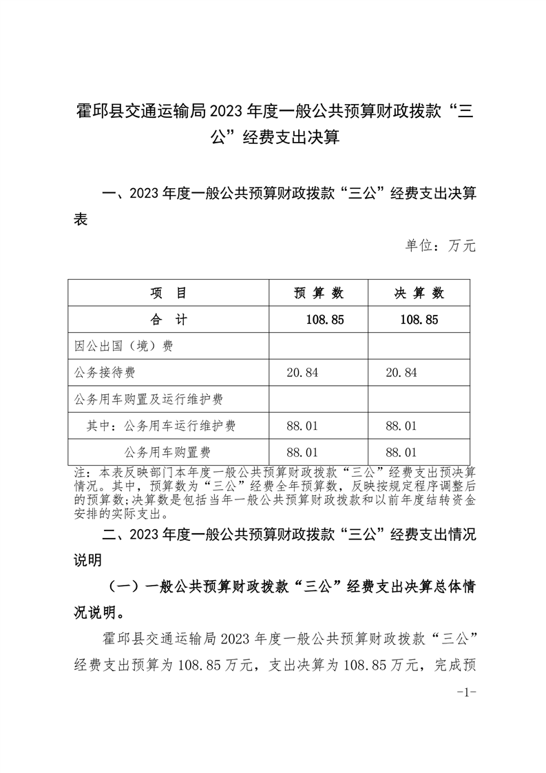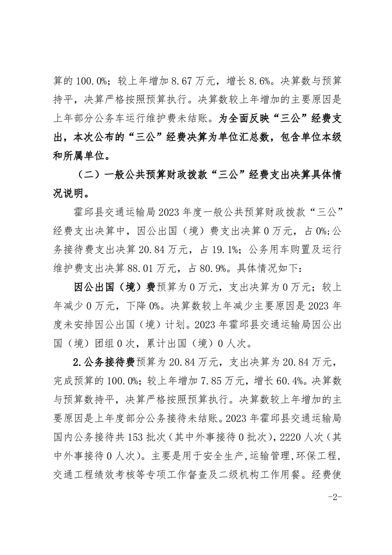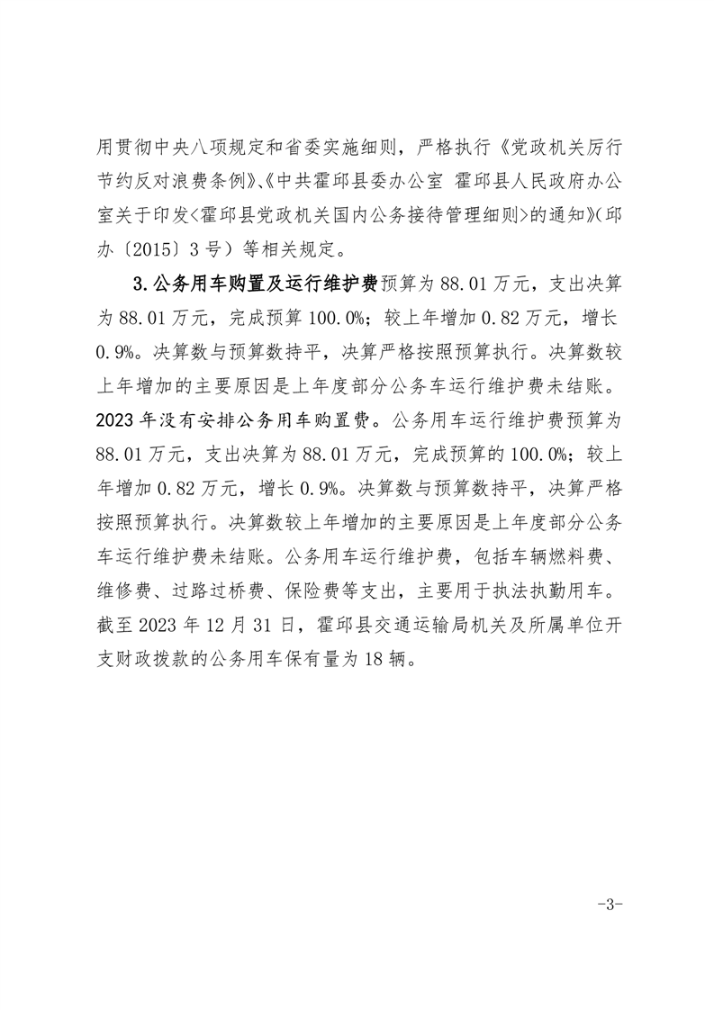 霍邱县交通运输局2023年度部门三公经费公开