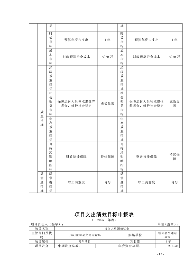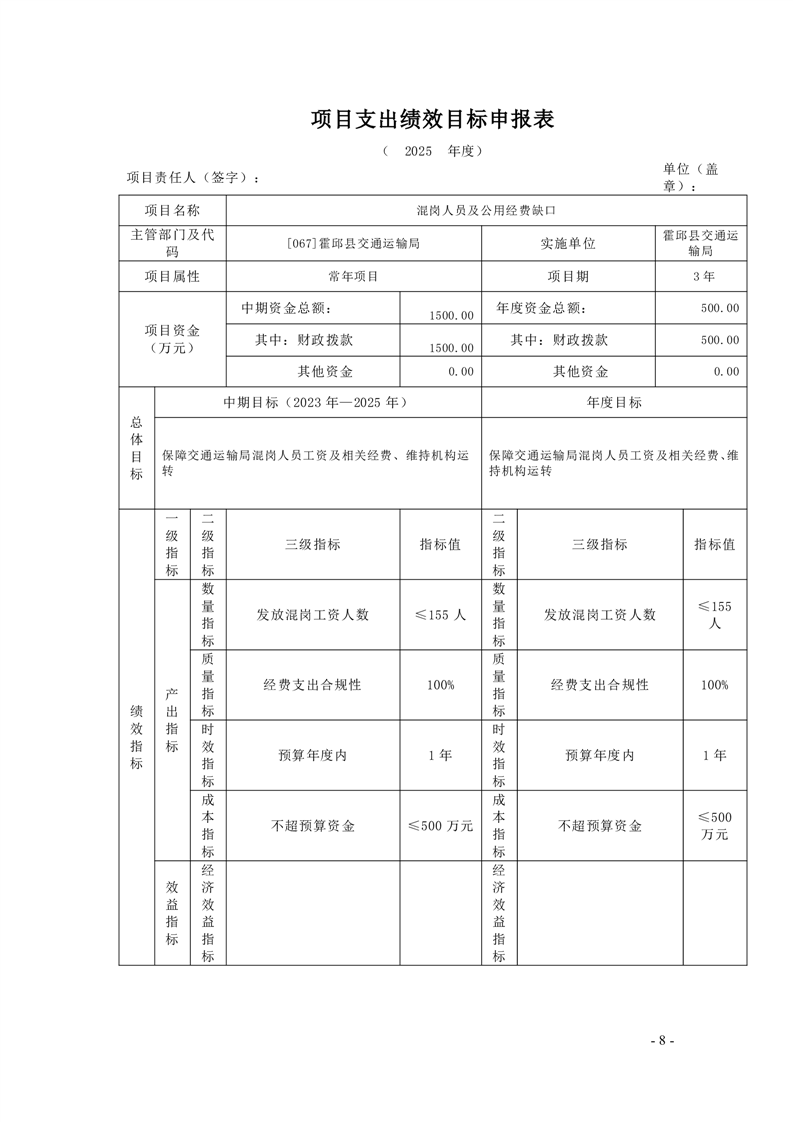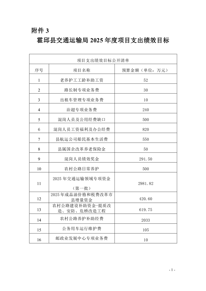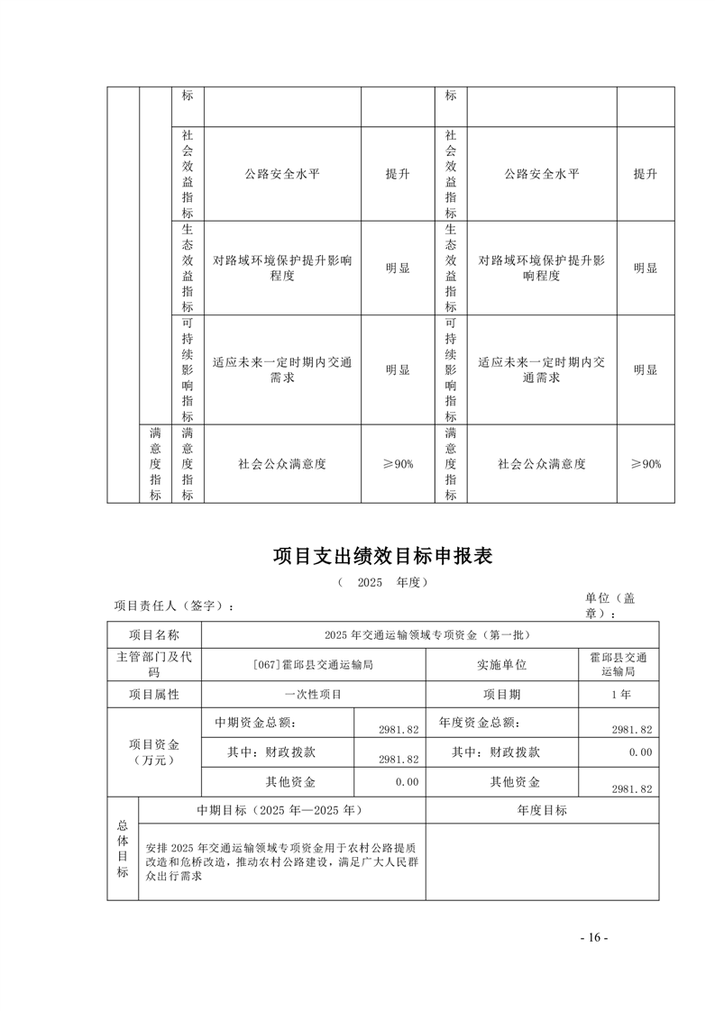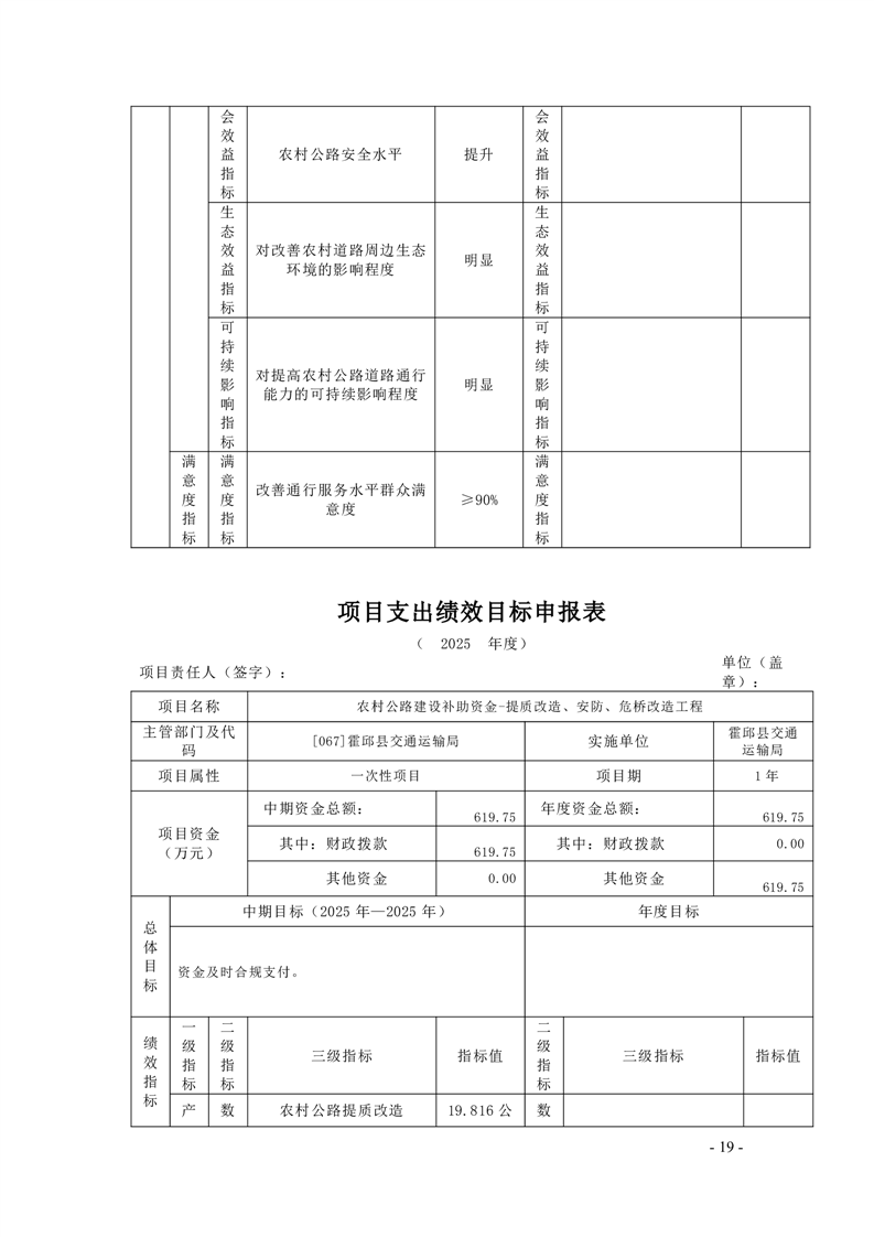 【绩效目标】霍邱县交通运输局2025年项目支出绩效目标申报表
