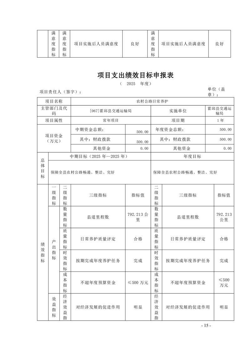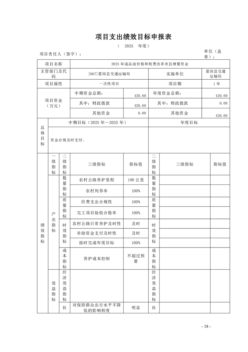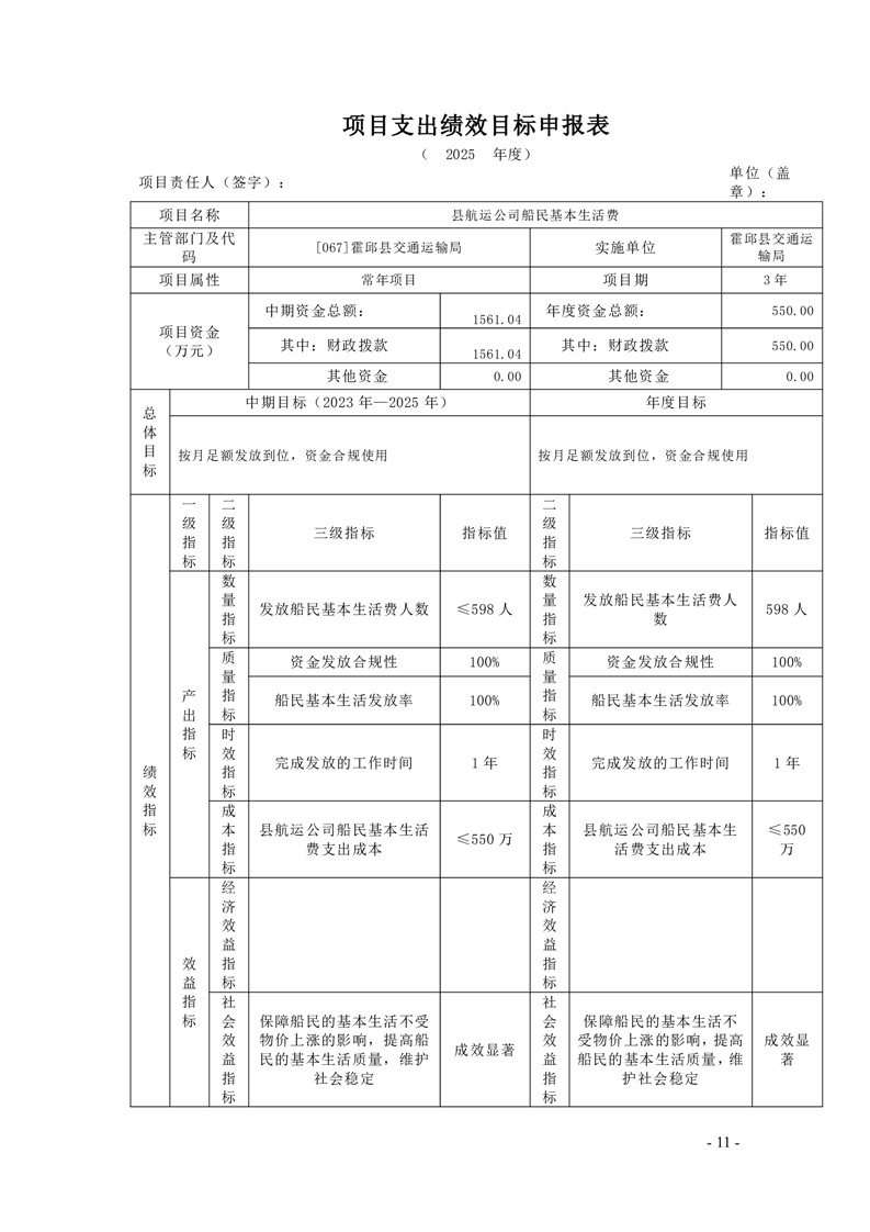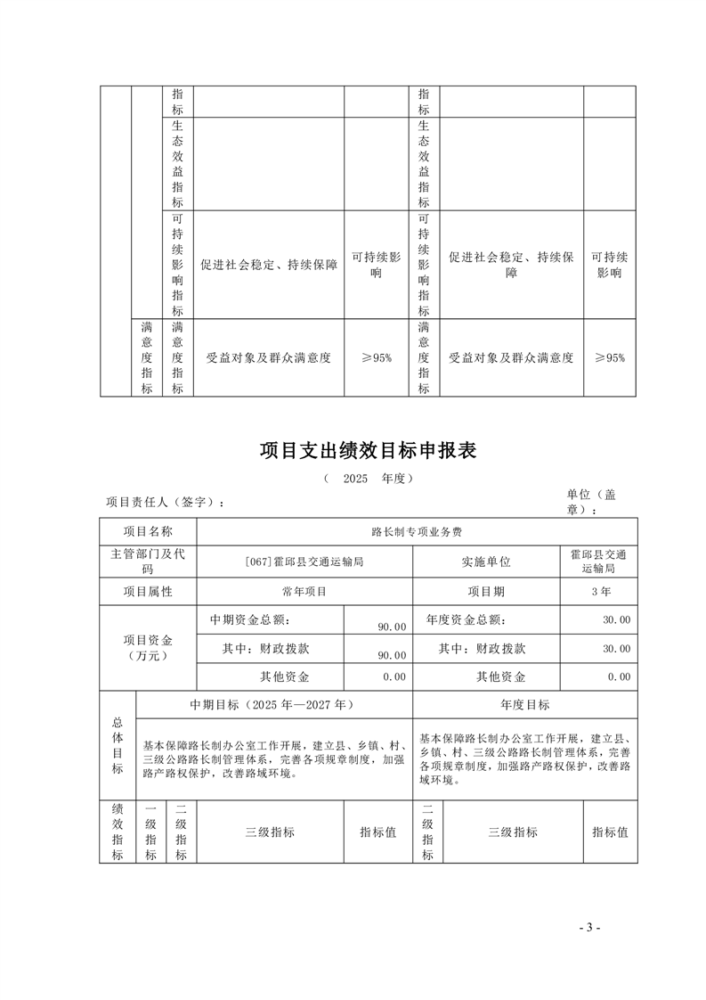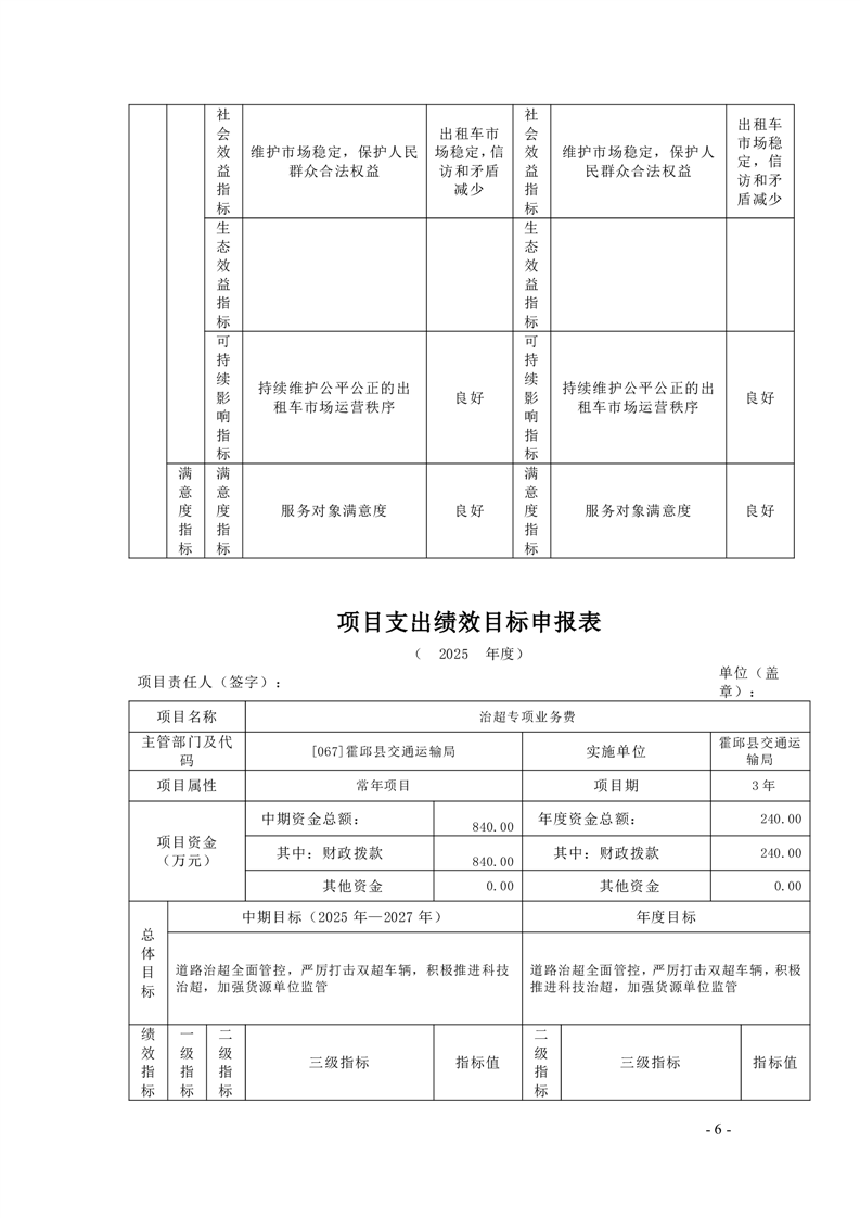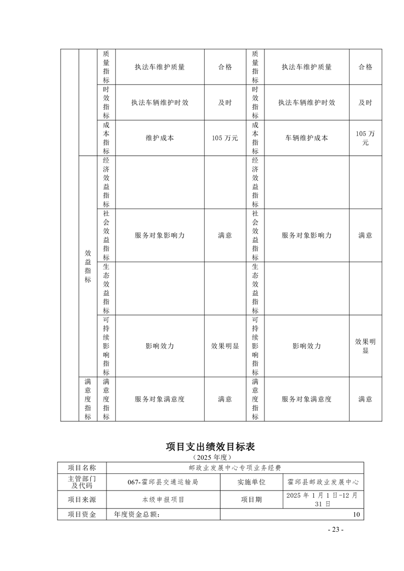 【绩效目标】霍邱县交通运输局2025年项目支出绩效目标申报表
