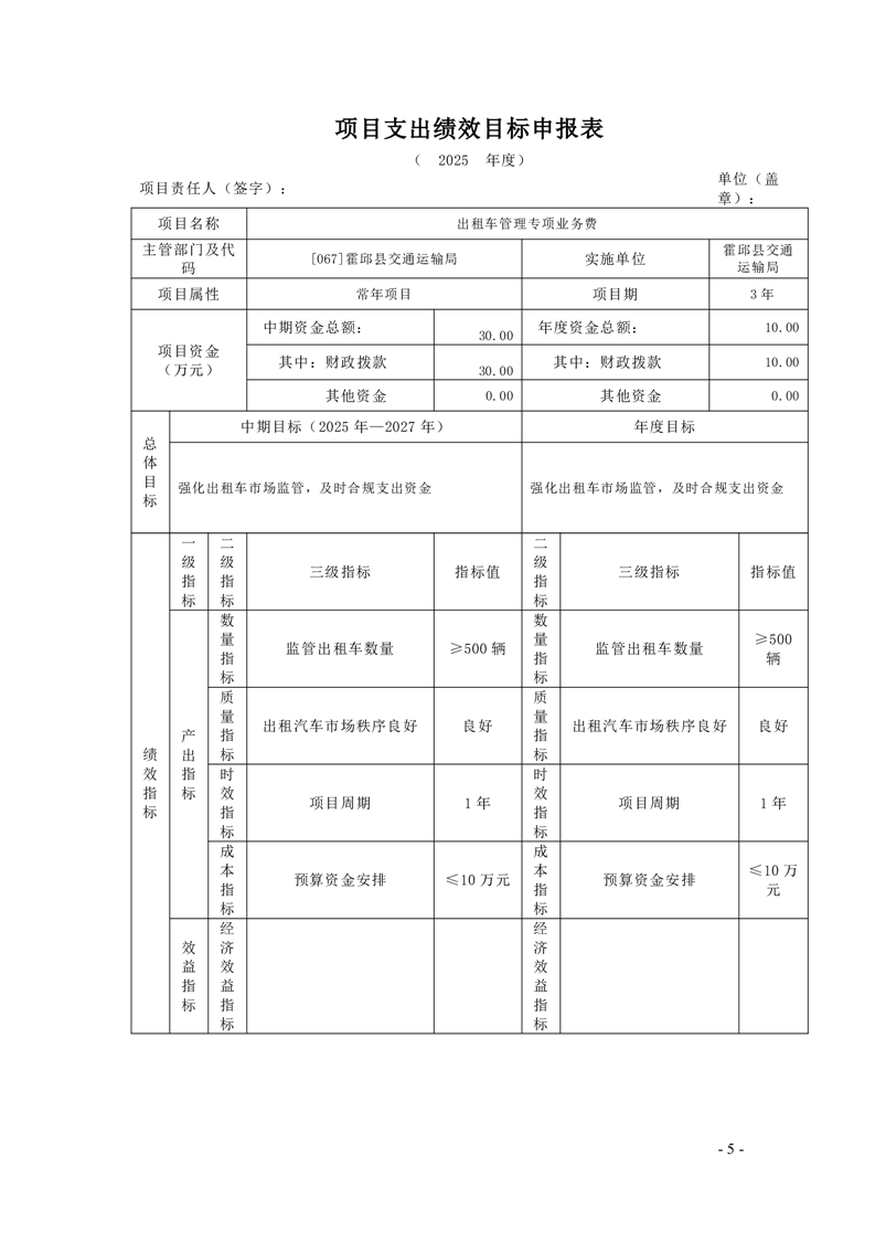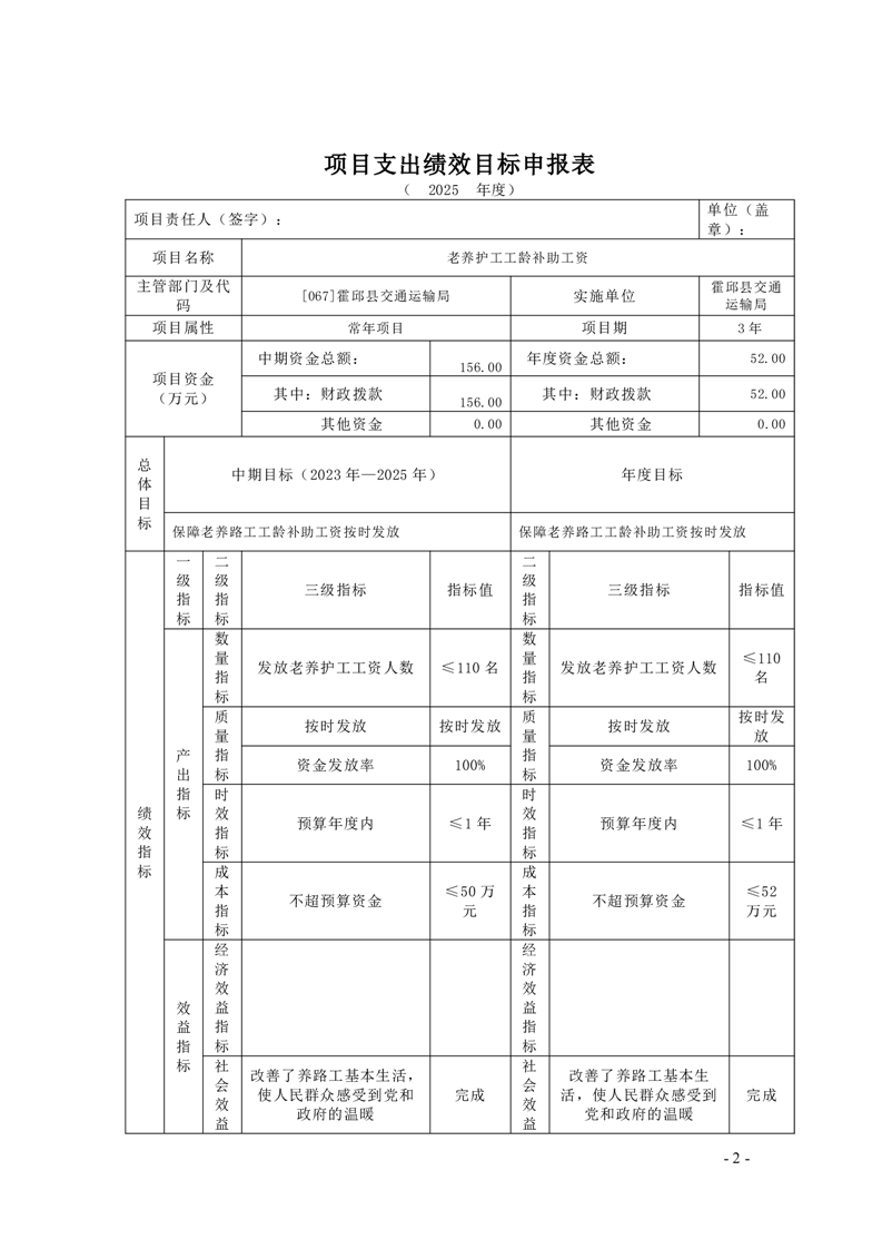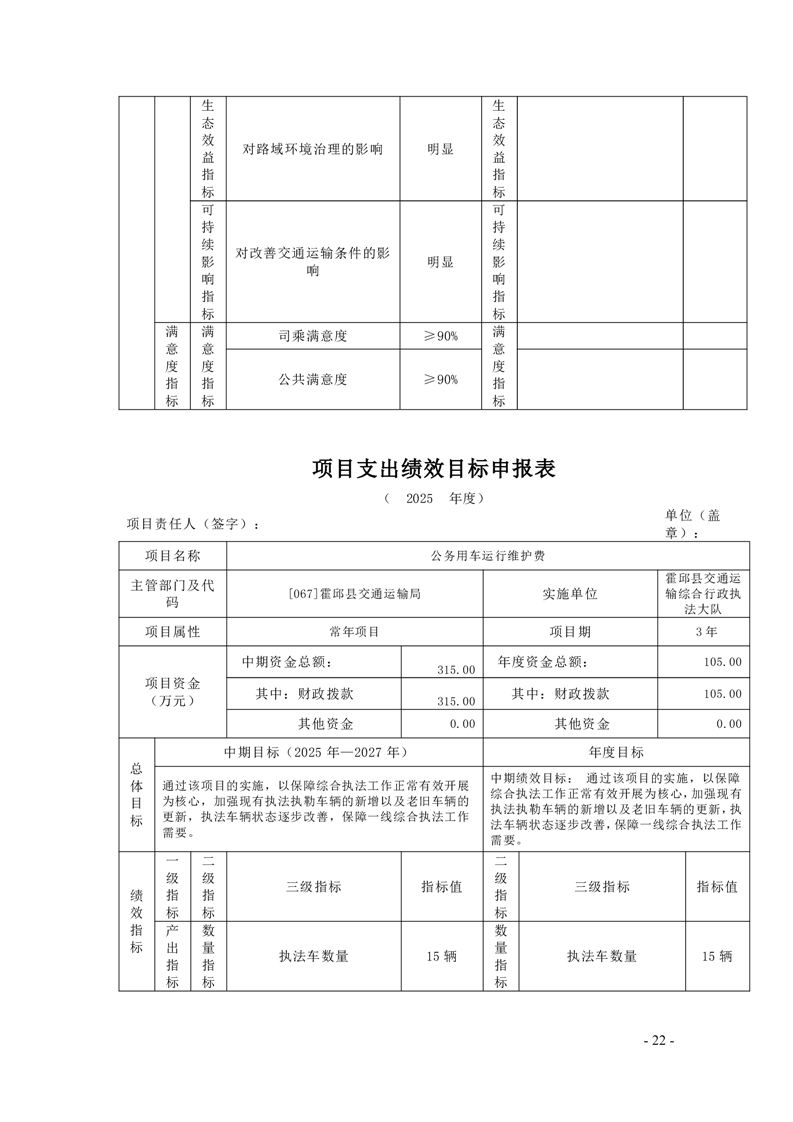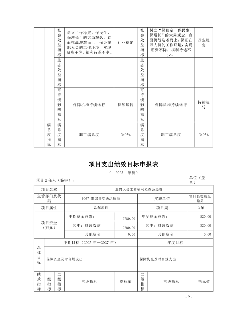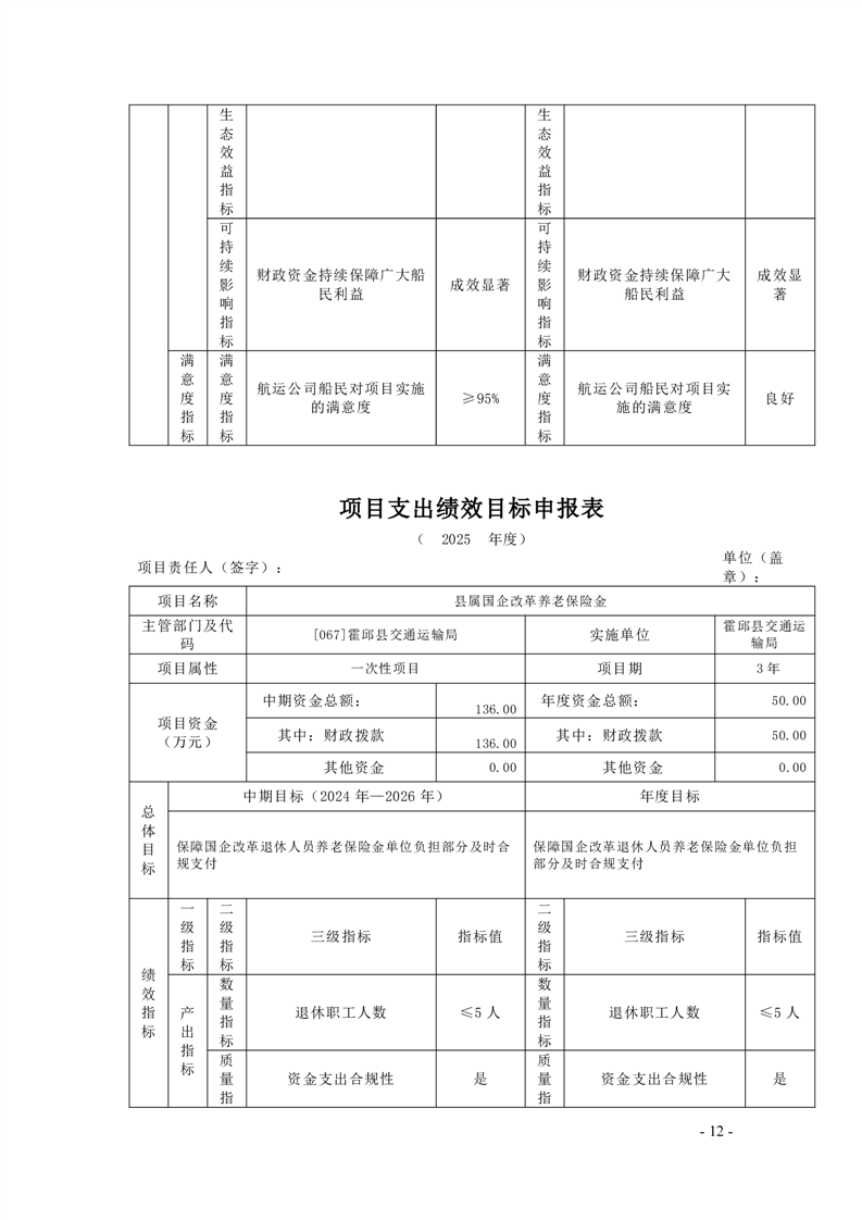 【绩效目标】霍邱县交通运输局2025年项目支出绩效目标申报表
