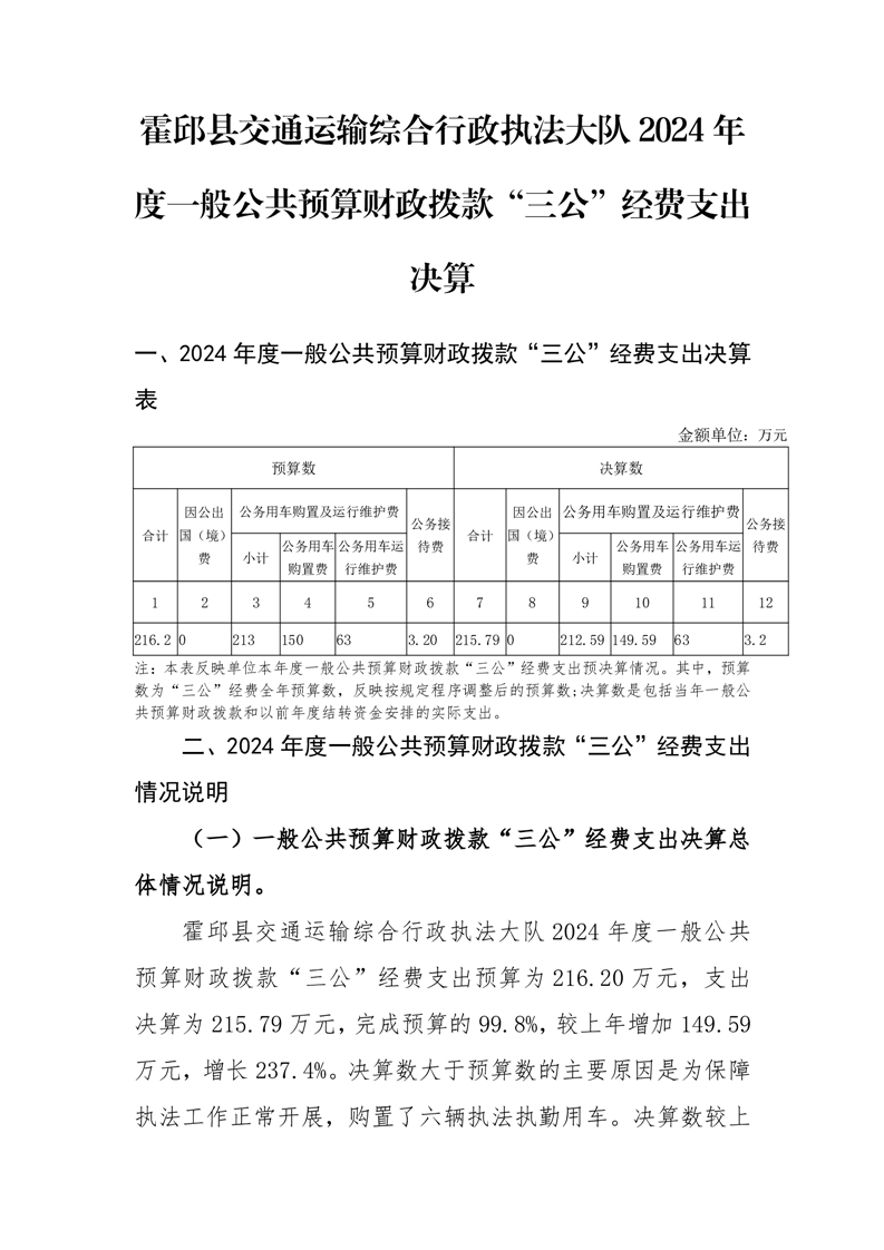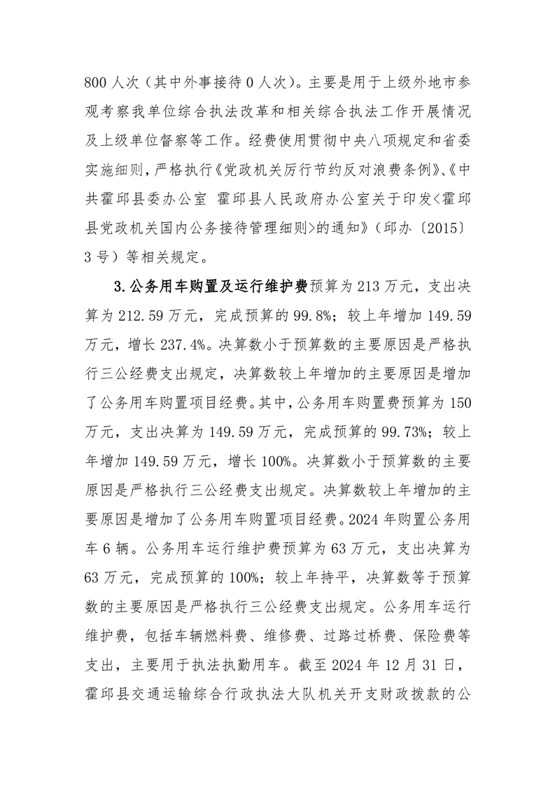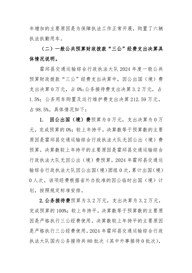 霍邱县交通运输综合行政执法大队 2024 年度一般公共预算财政拨款“三公”经费支出决算公开