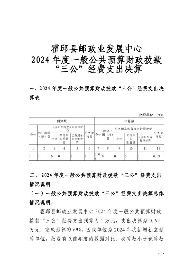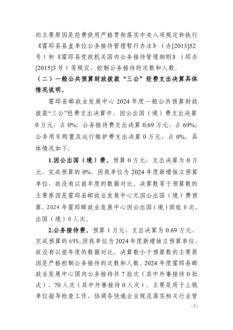霍邱县邮政业发展中心2024年一般公共预算财政拨款“三公”经费支出决算公开