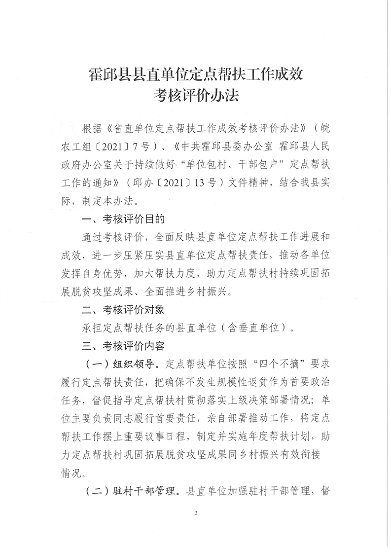 【帮扶责任人和驻村管理情况】霍邱县县直单位定点帮扶工作成效考核评价办法