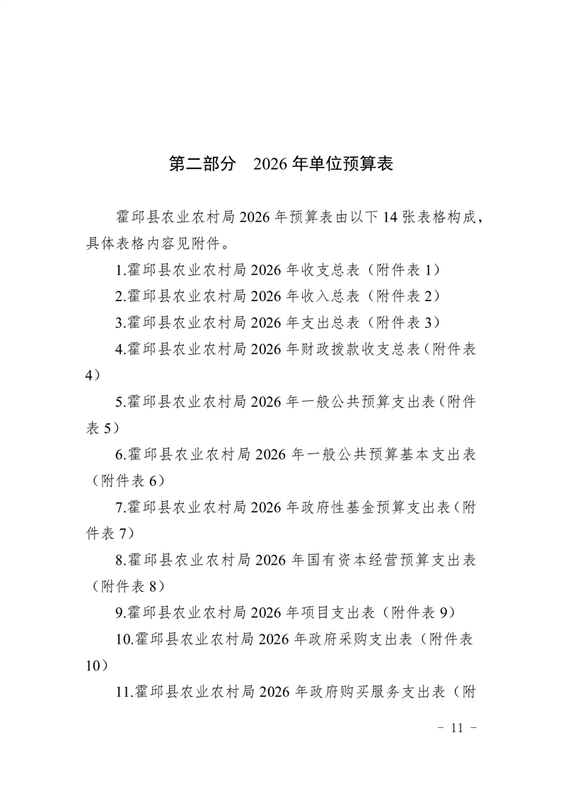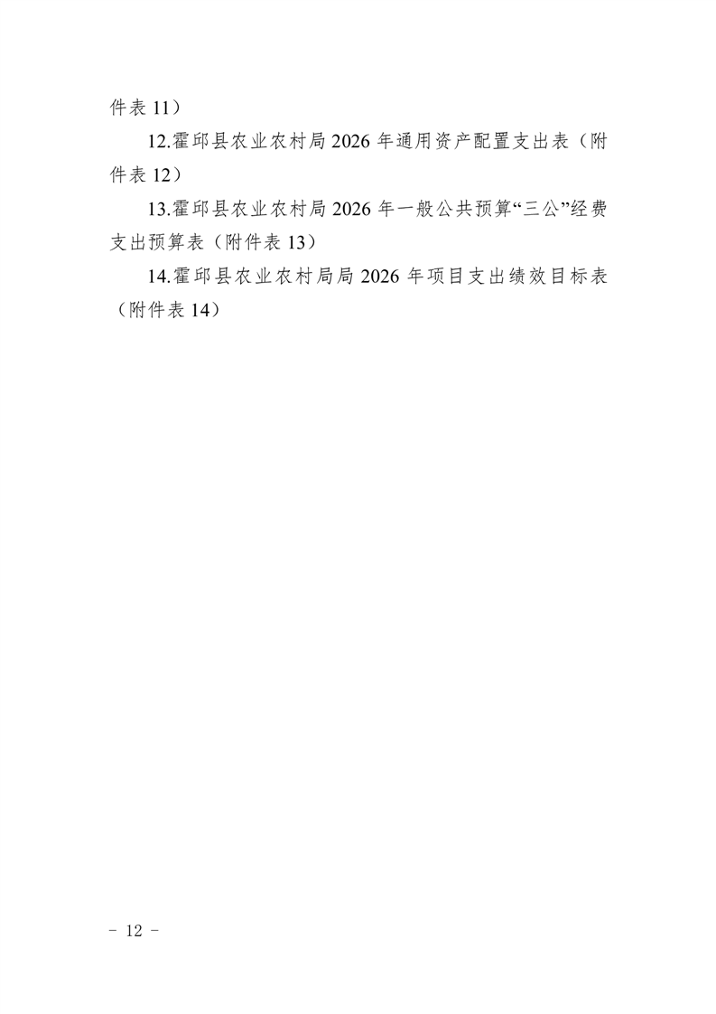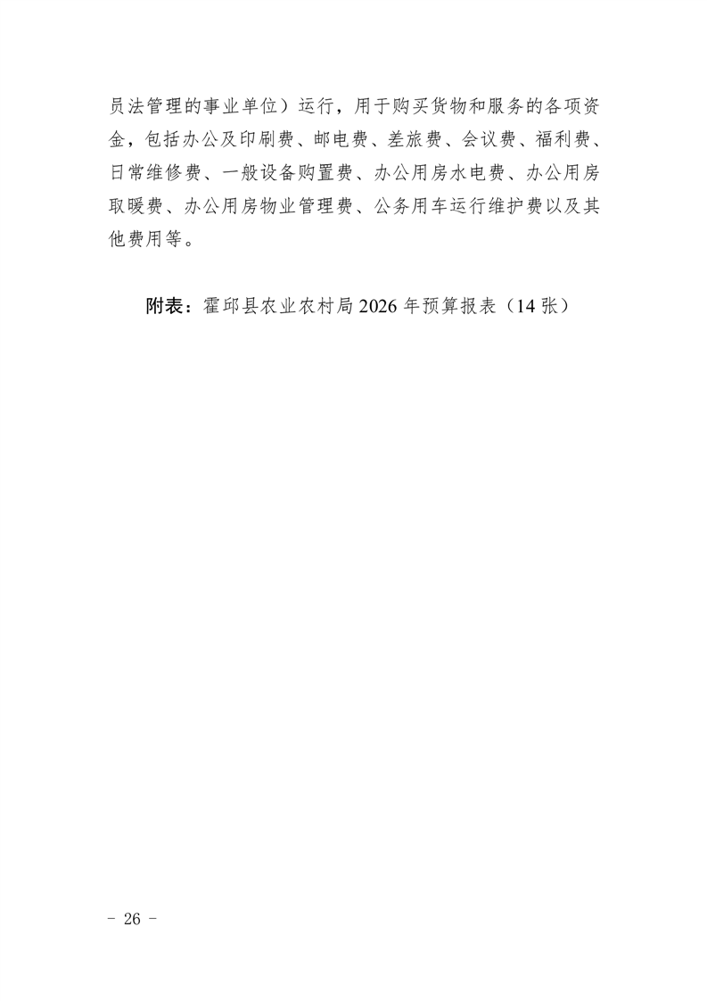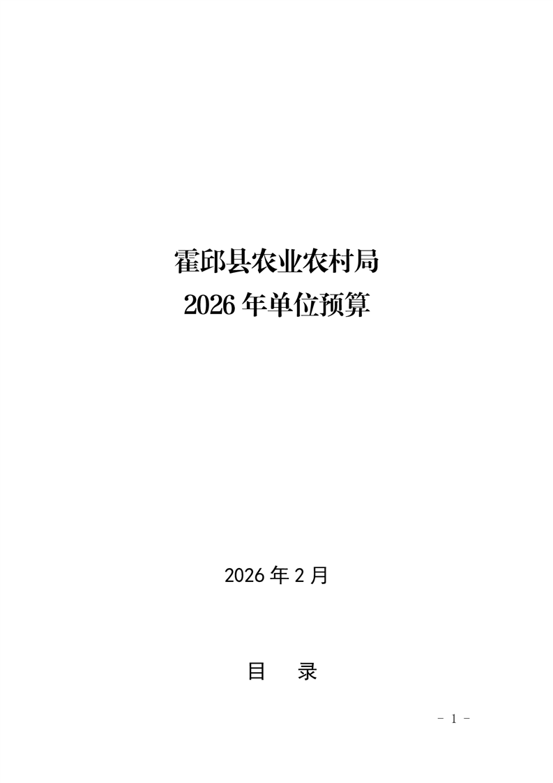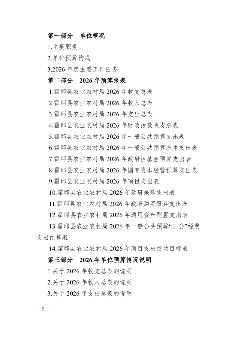 霍邱县农业农村局2026年(本级)单位预算公开
