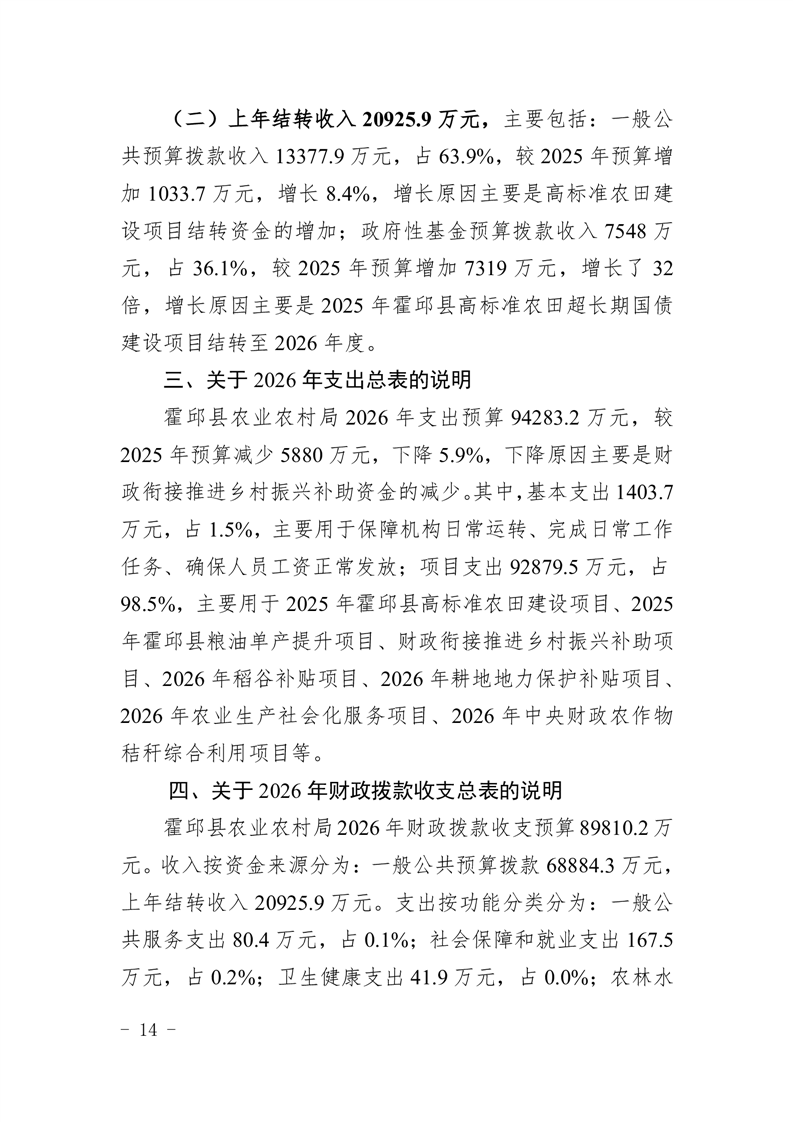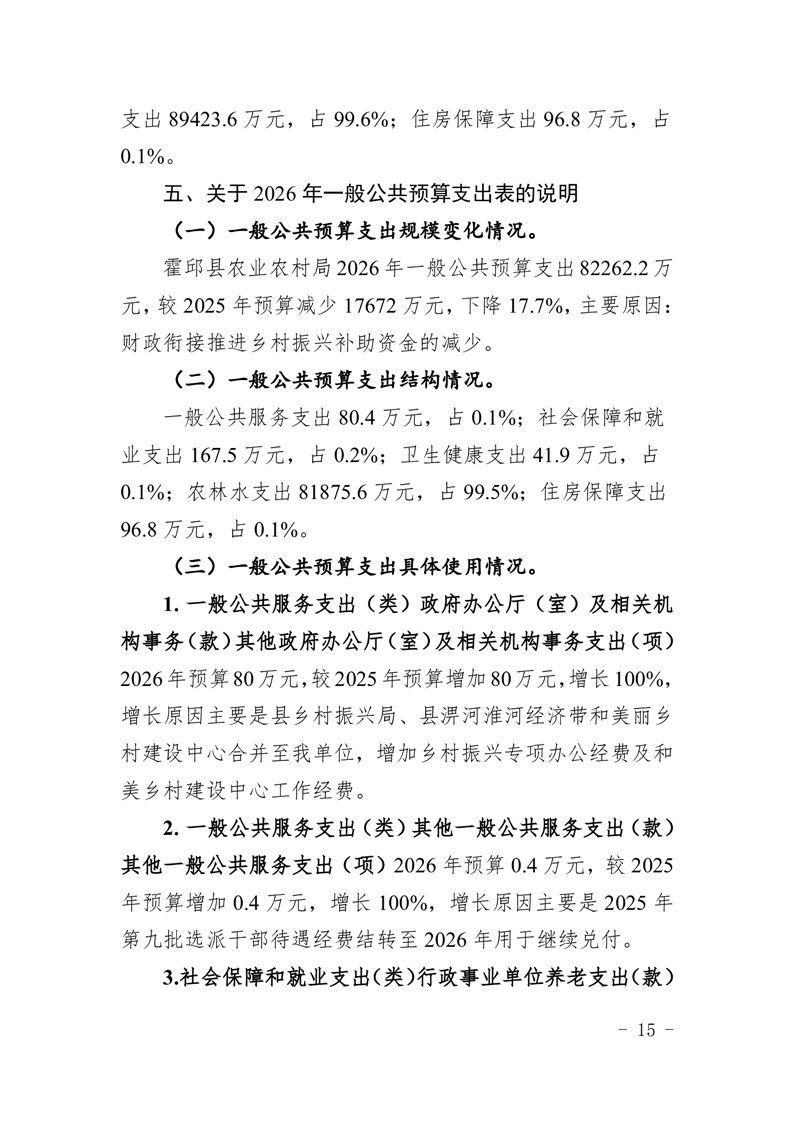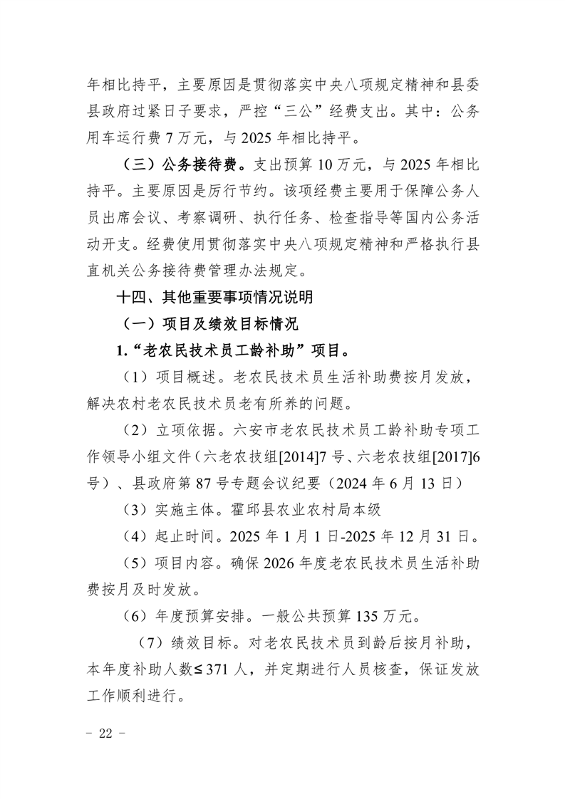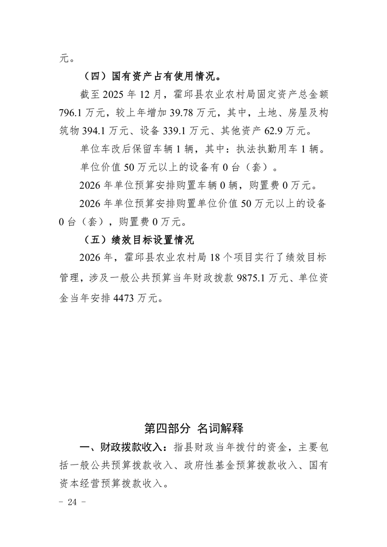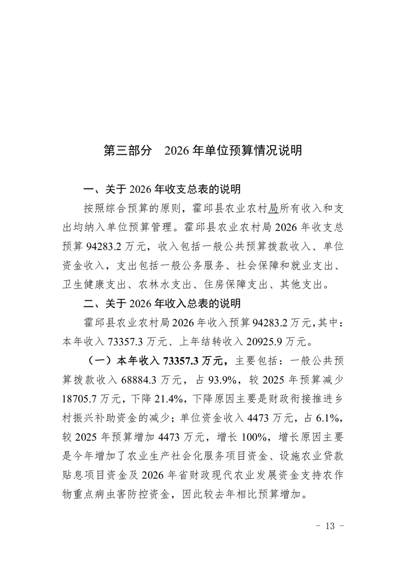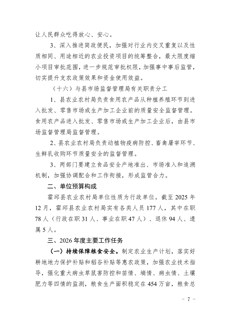 霍邱县农业农村局2026年(本级)单位预算公开