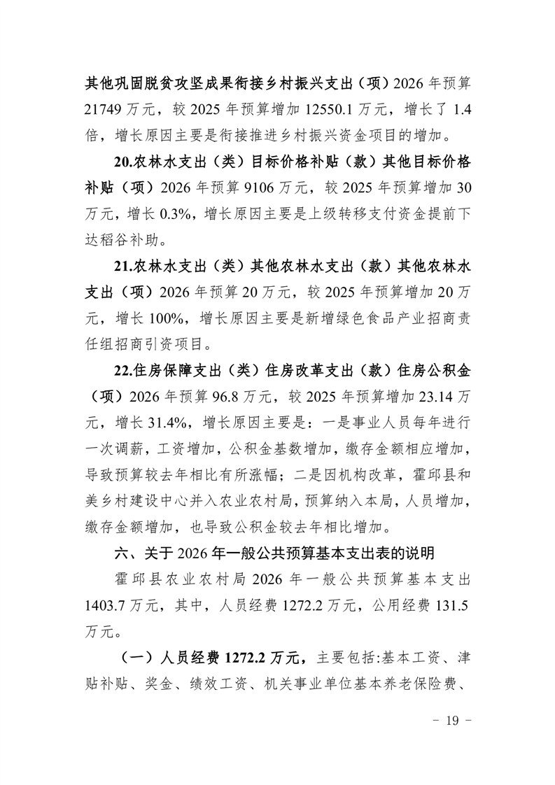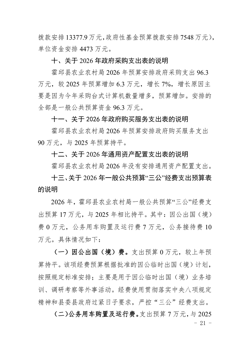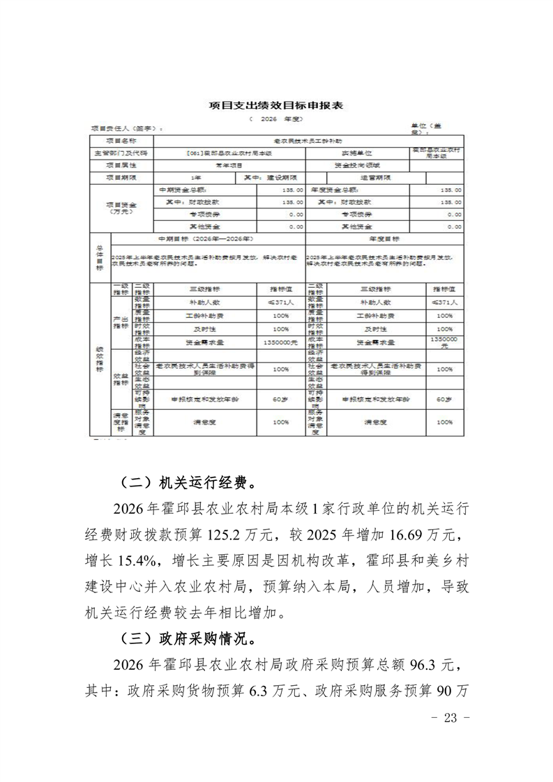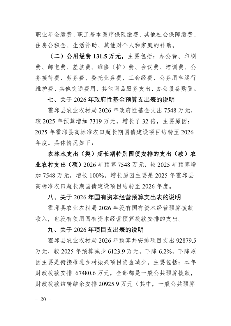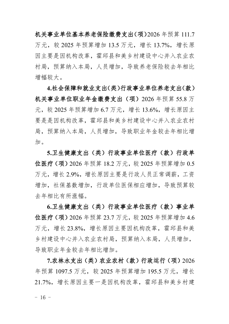 霍邱县农业农村局2026年(本级)单位预算公开