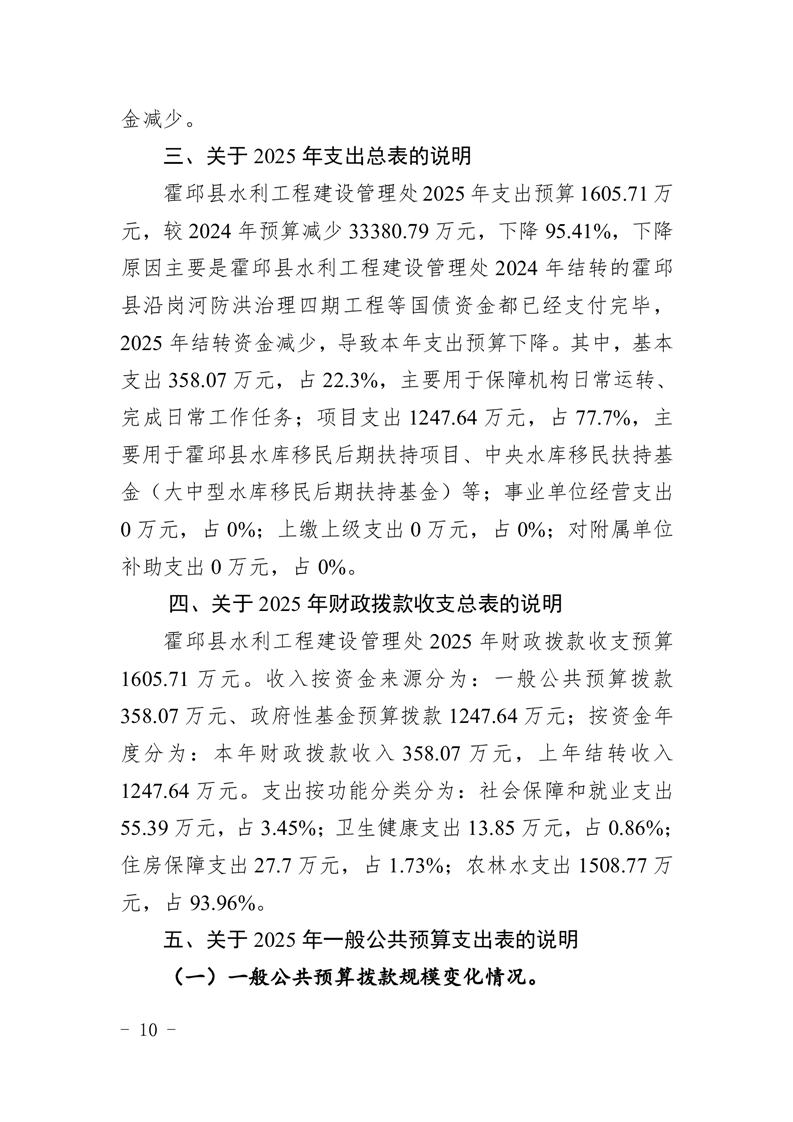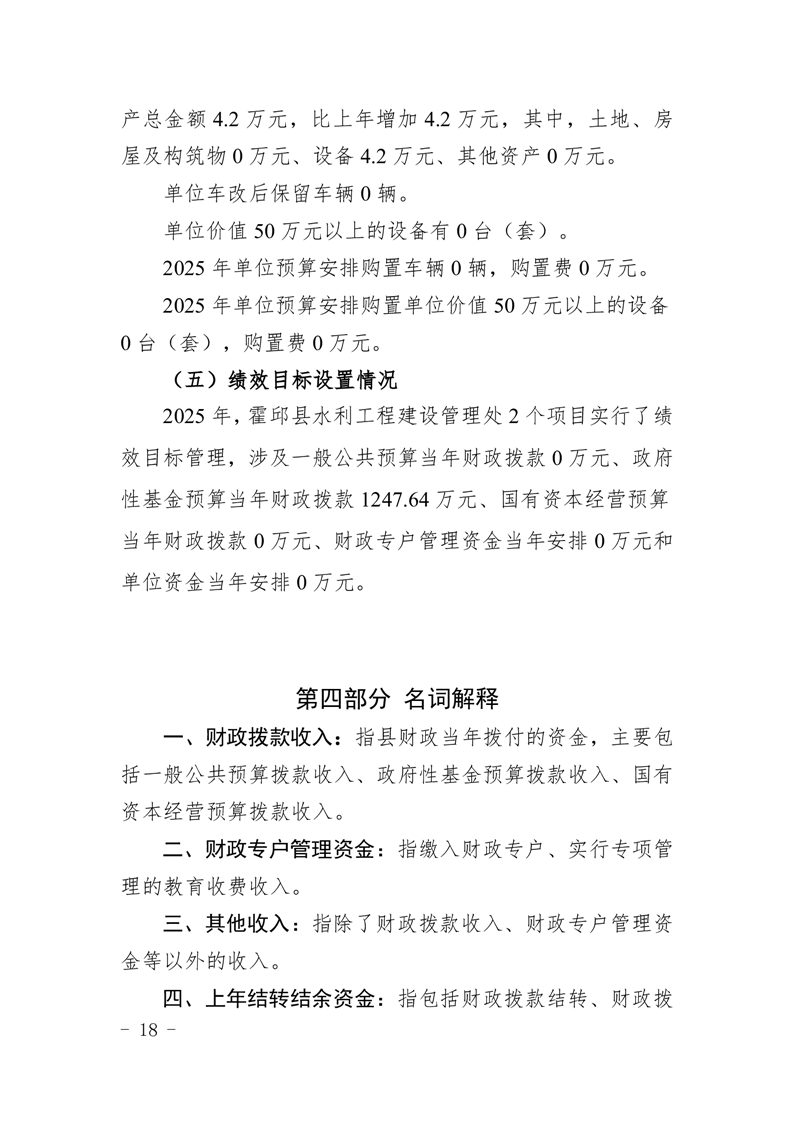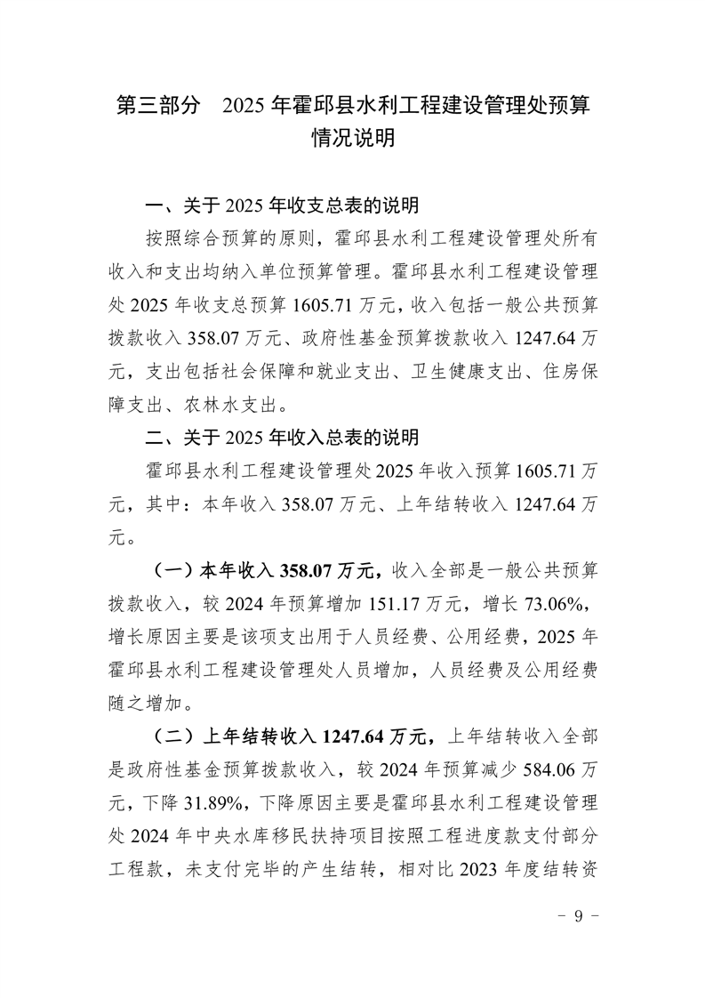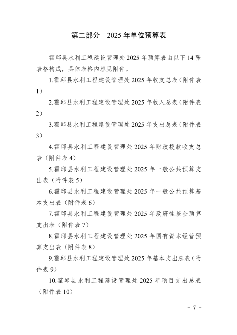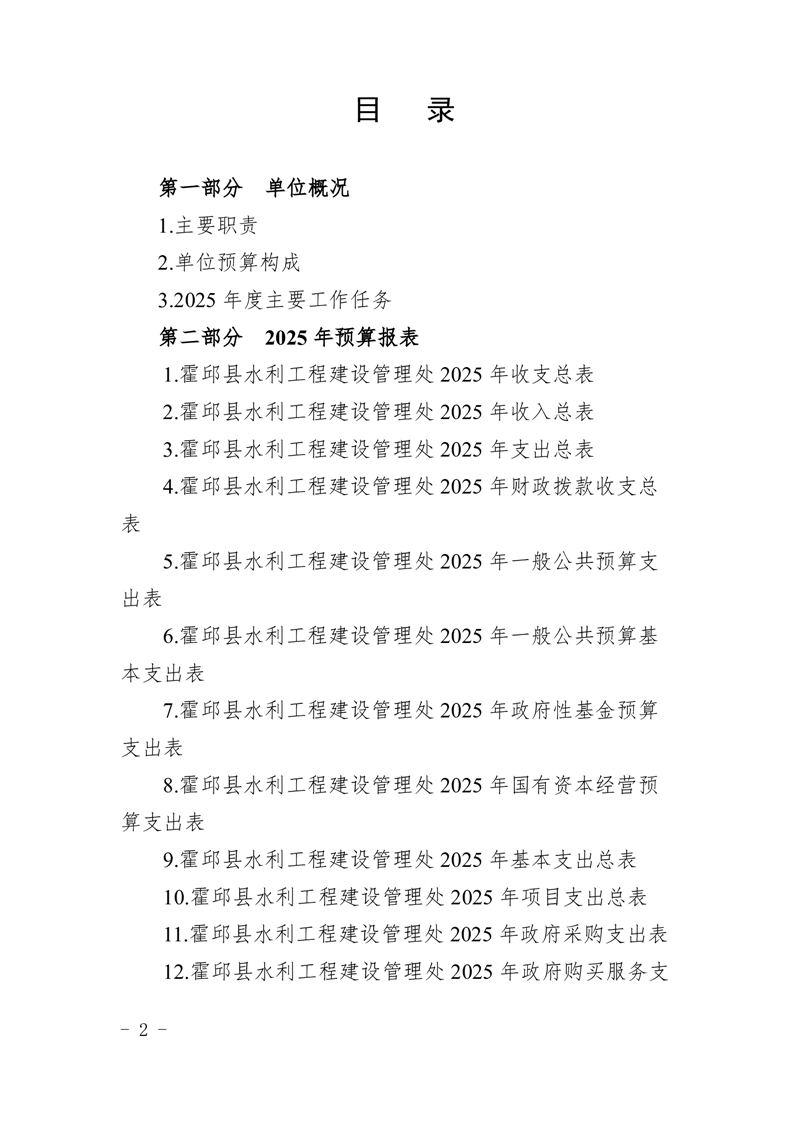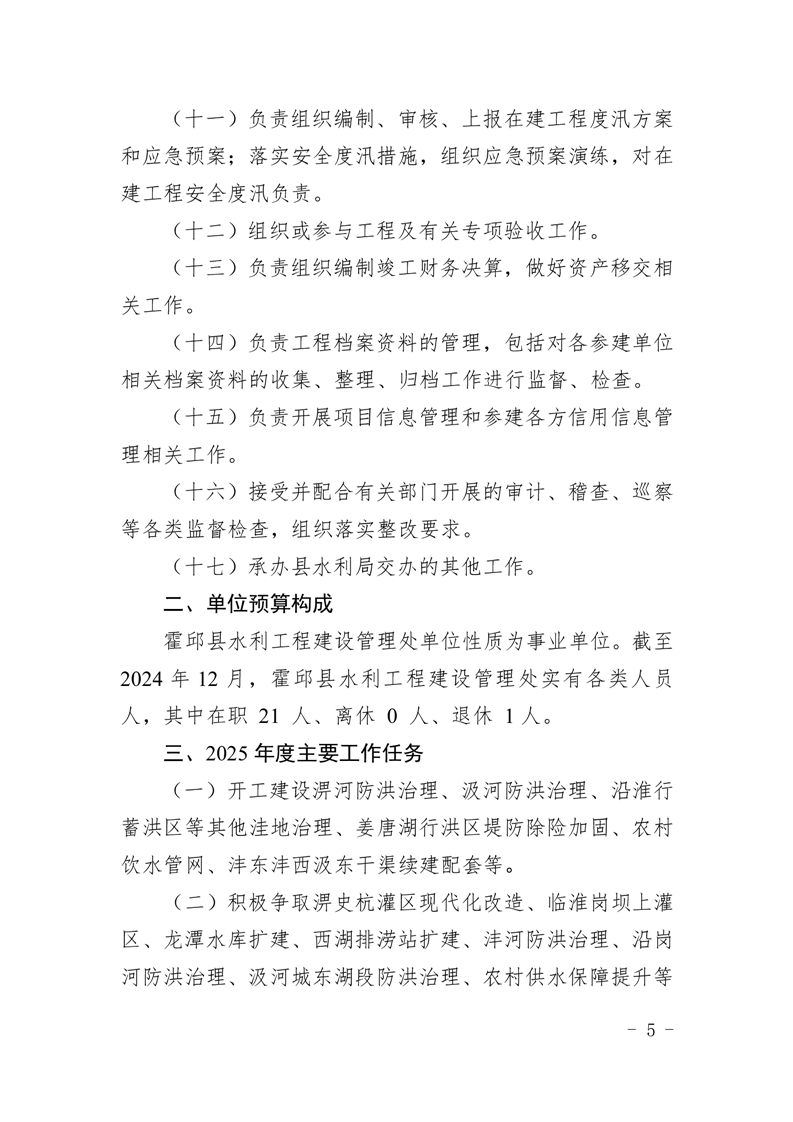 霍邱县水利工程建设管理处2025年单位预算公开