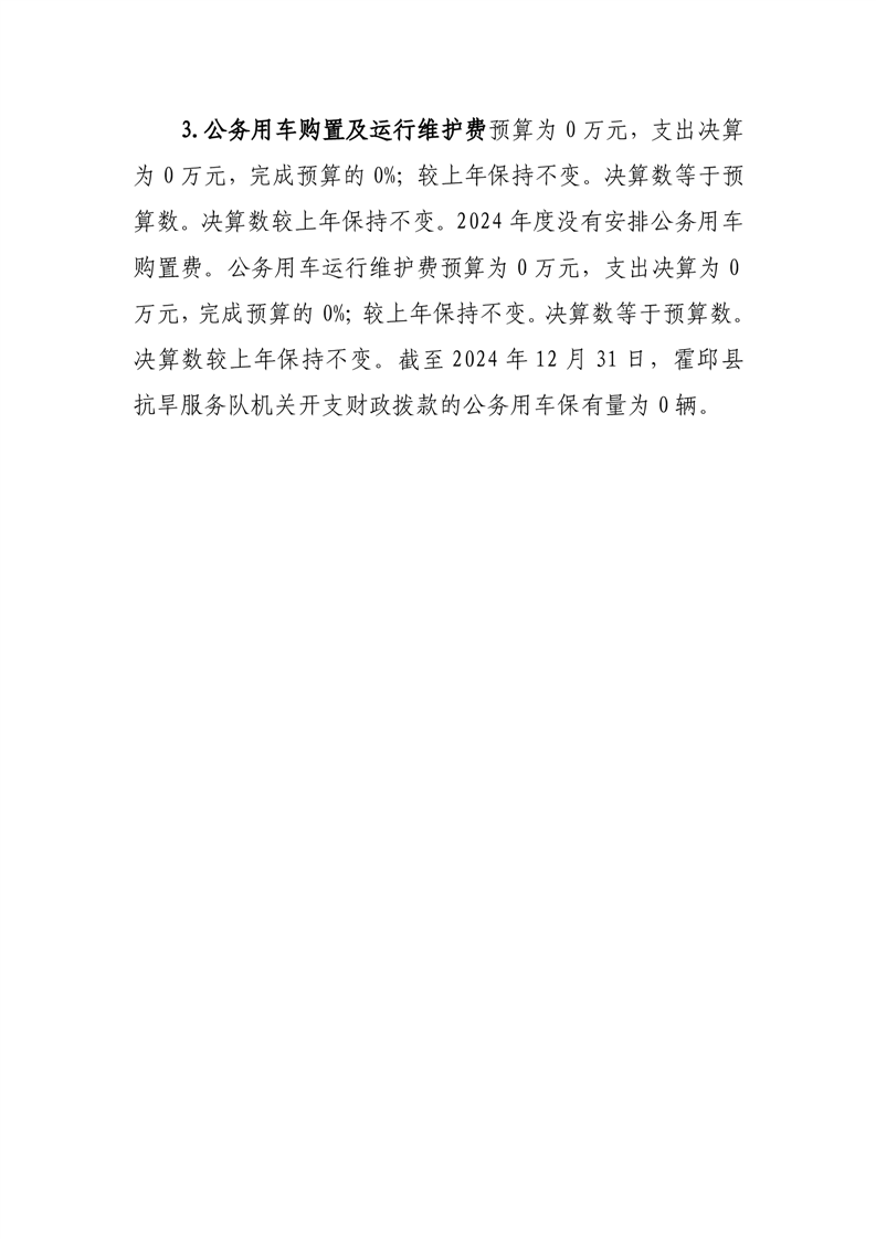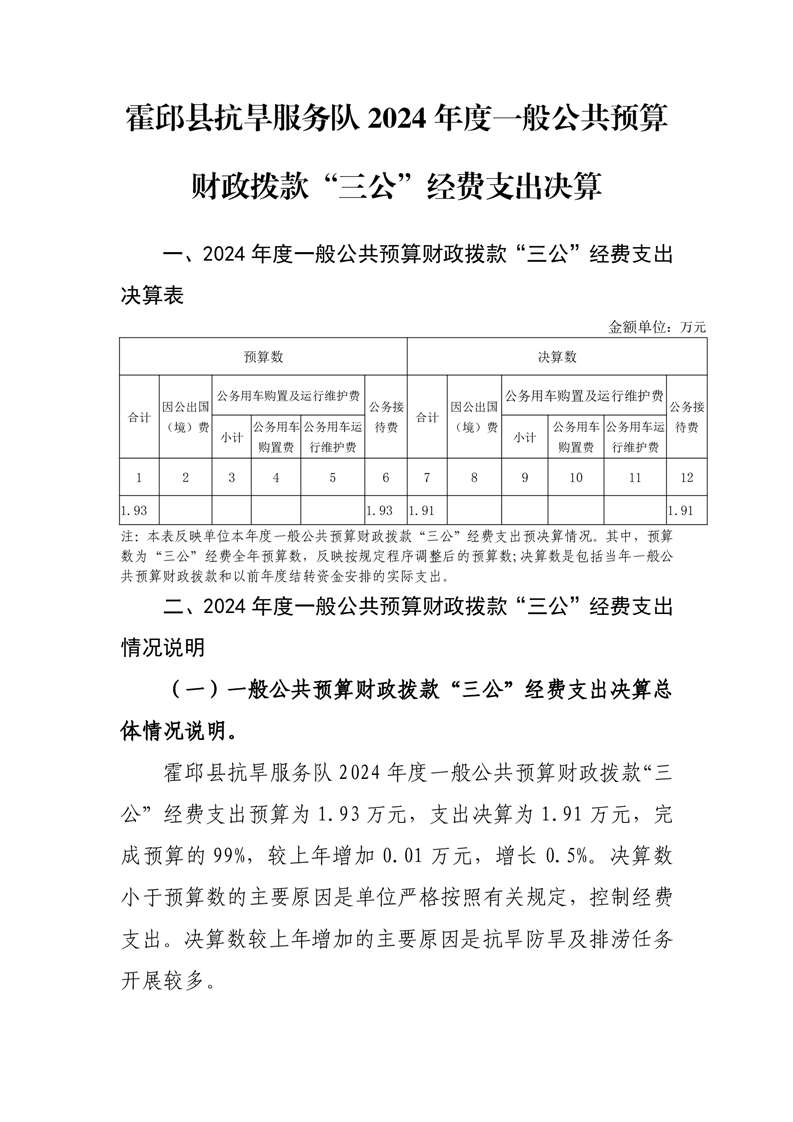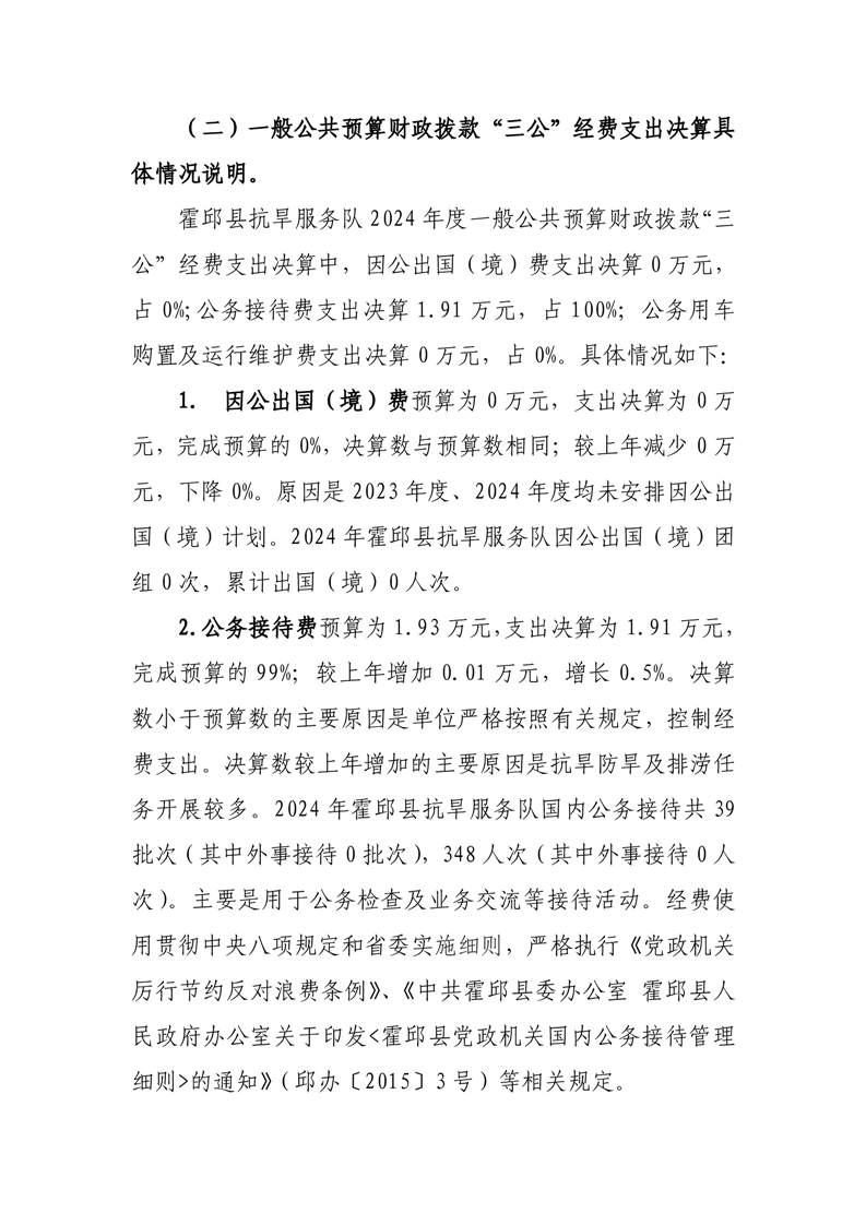 霍邱县抗旱服务队2024年度一般公共预算财政拨款“三公”经费支出决算