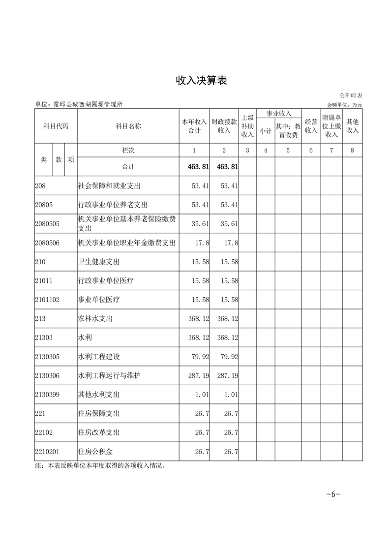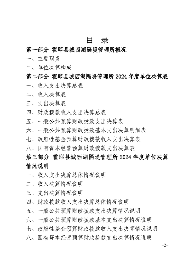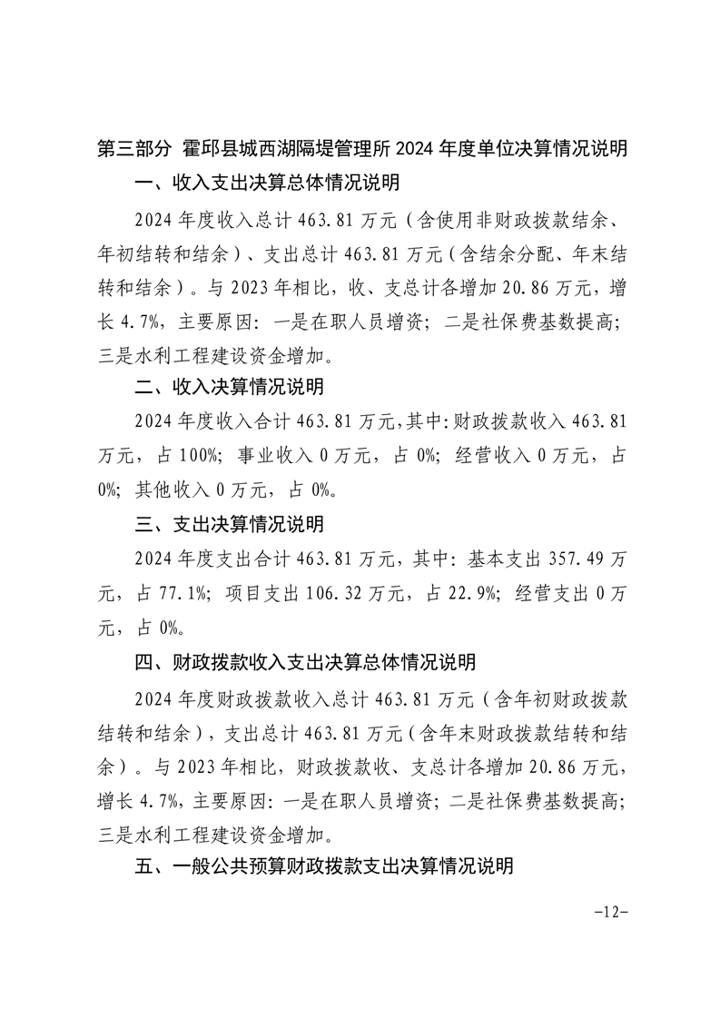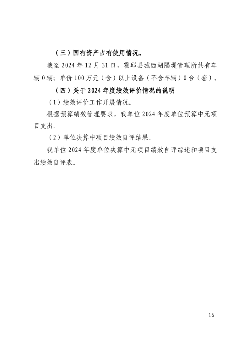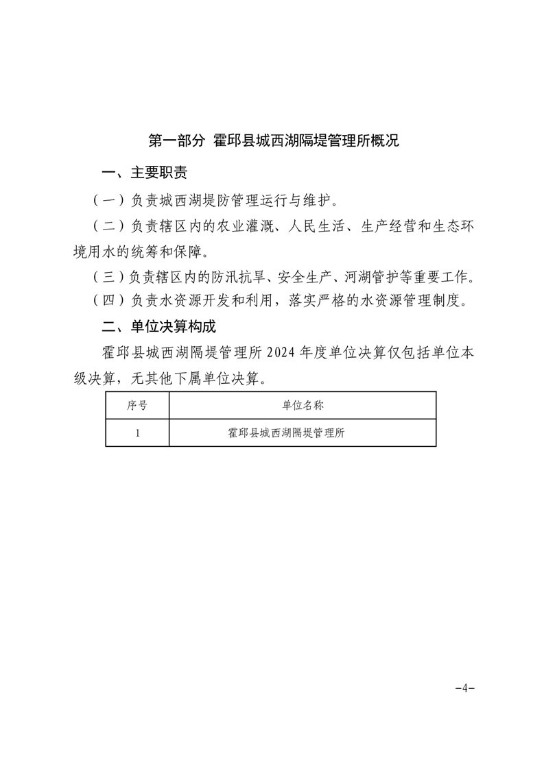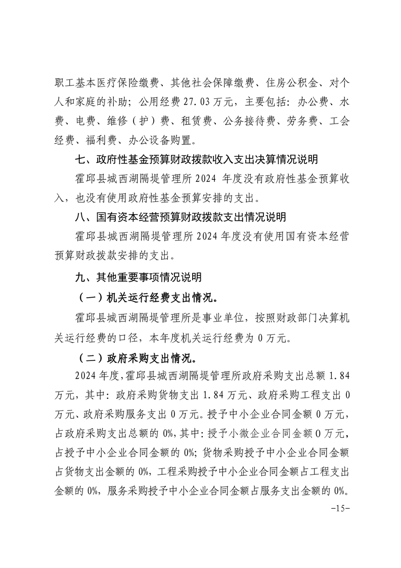 霍邱县城西湖隔堤管理所2024年度单位决算
