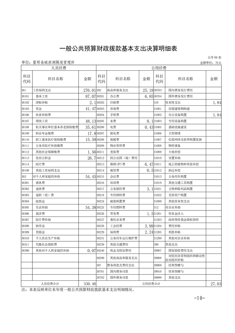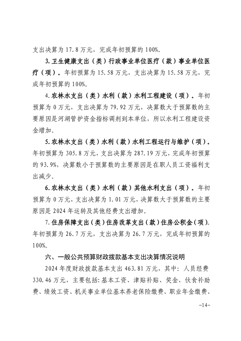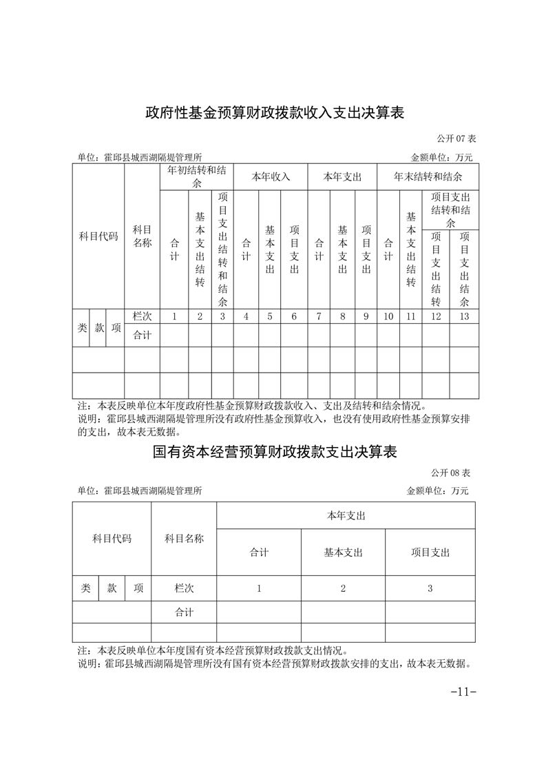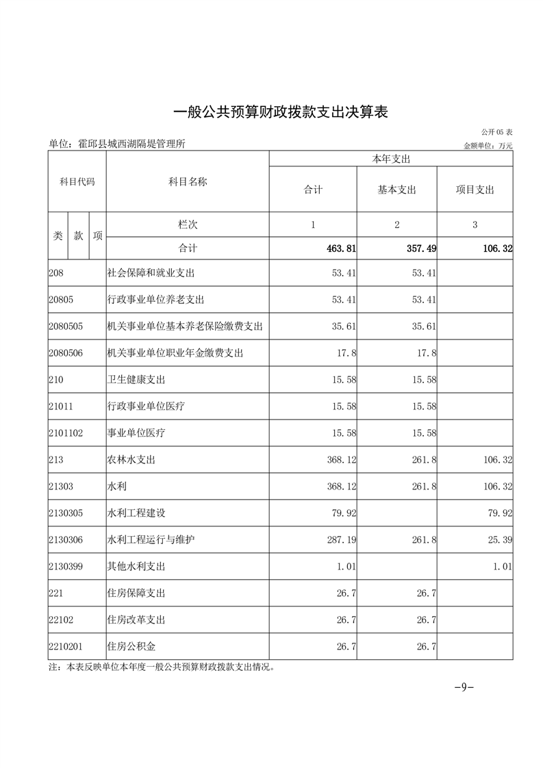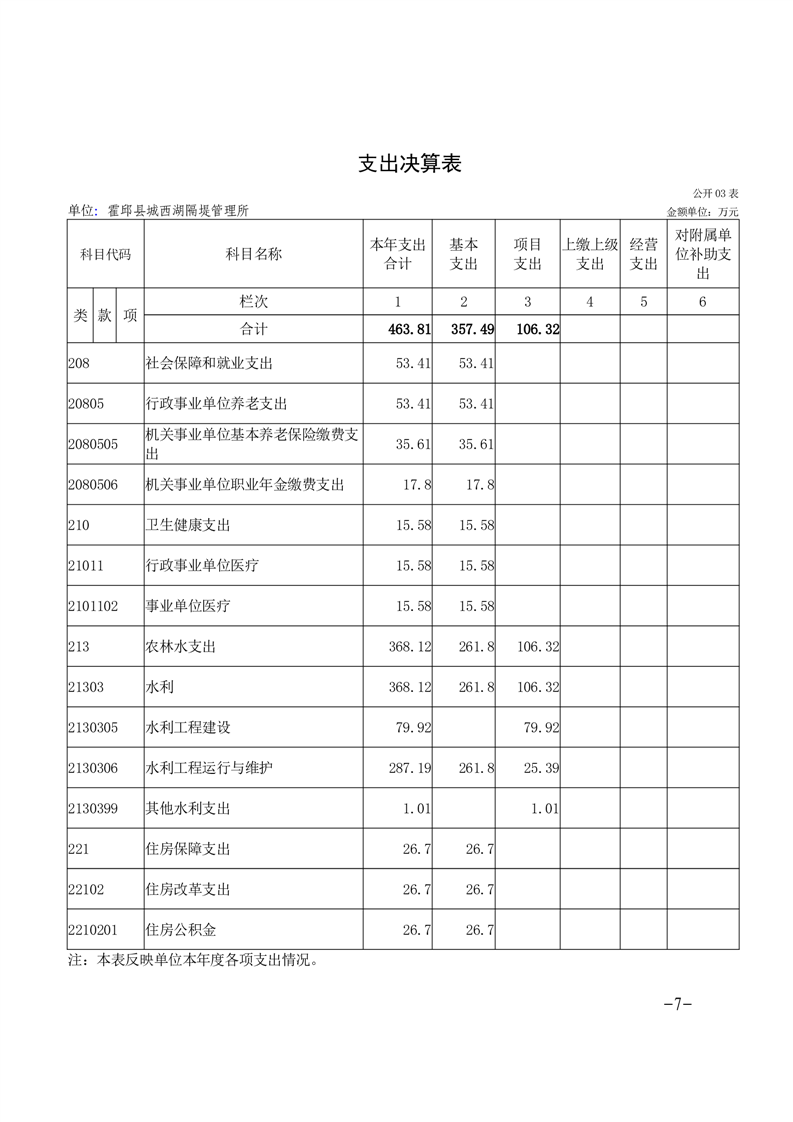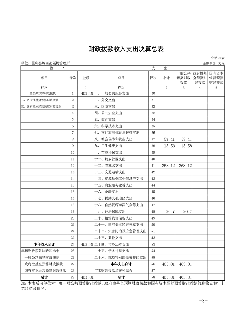 霍邱县城西湖隔堤管理所2024年度单位决算