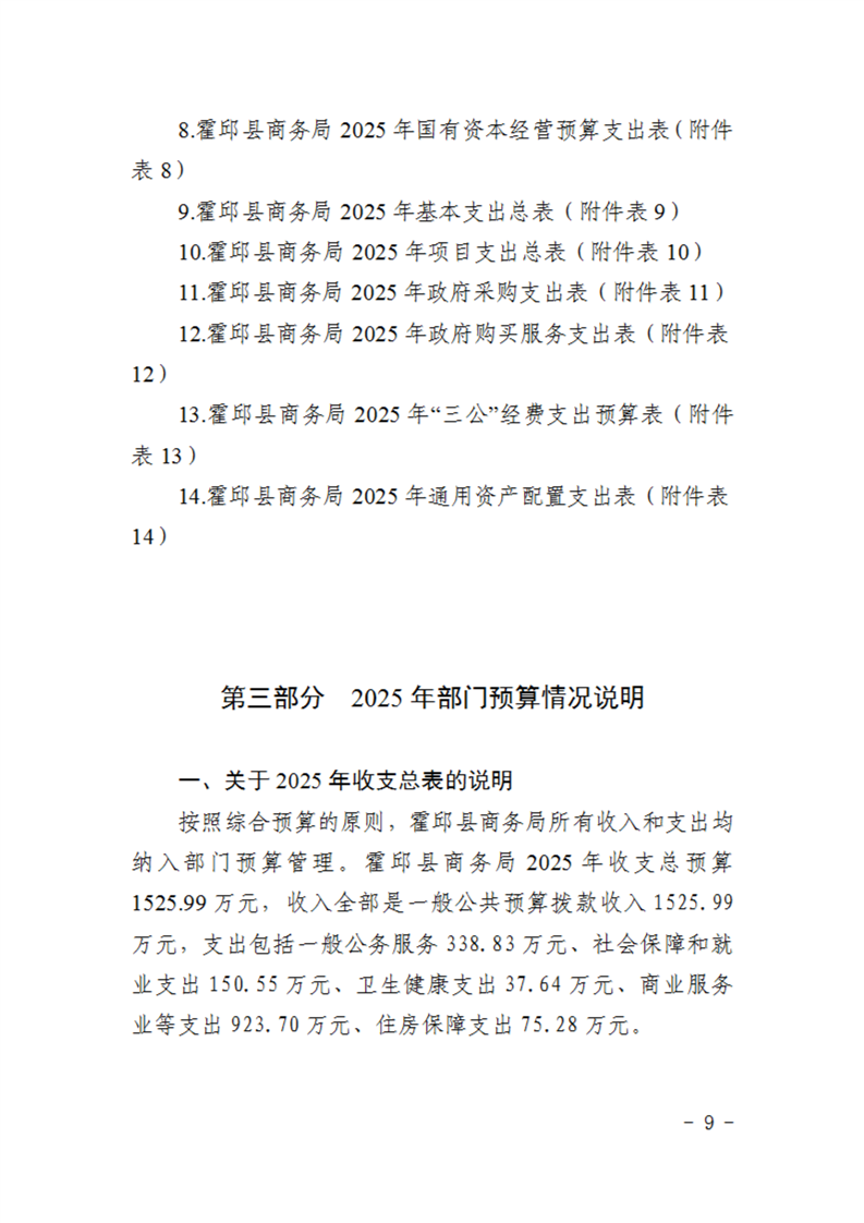 霍邱县商务局2025年部门预算公开