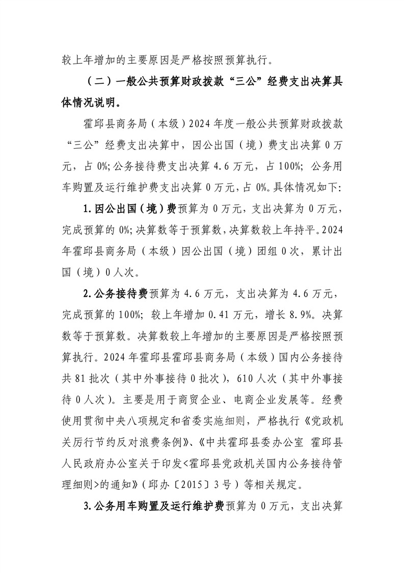 霍邱县商务局(本级)单位2024年度一般公共预算财政拨款 “三公”经费支出决算