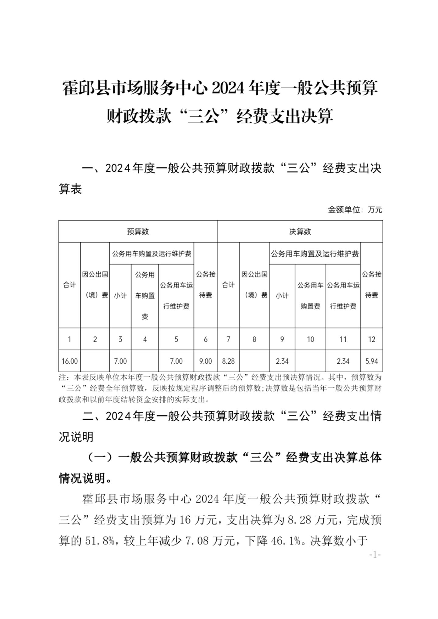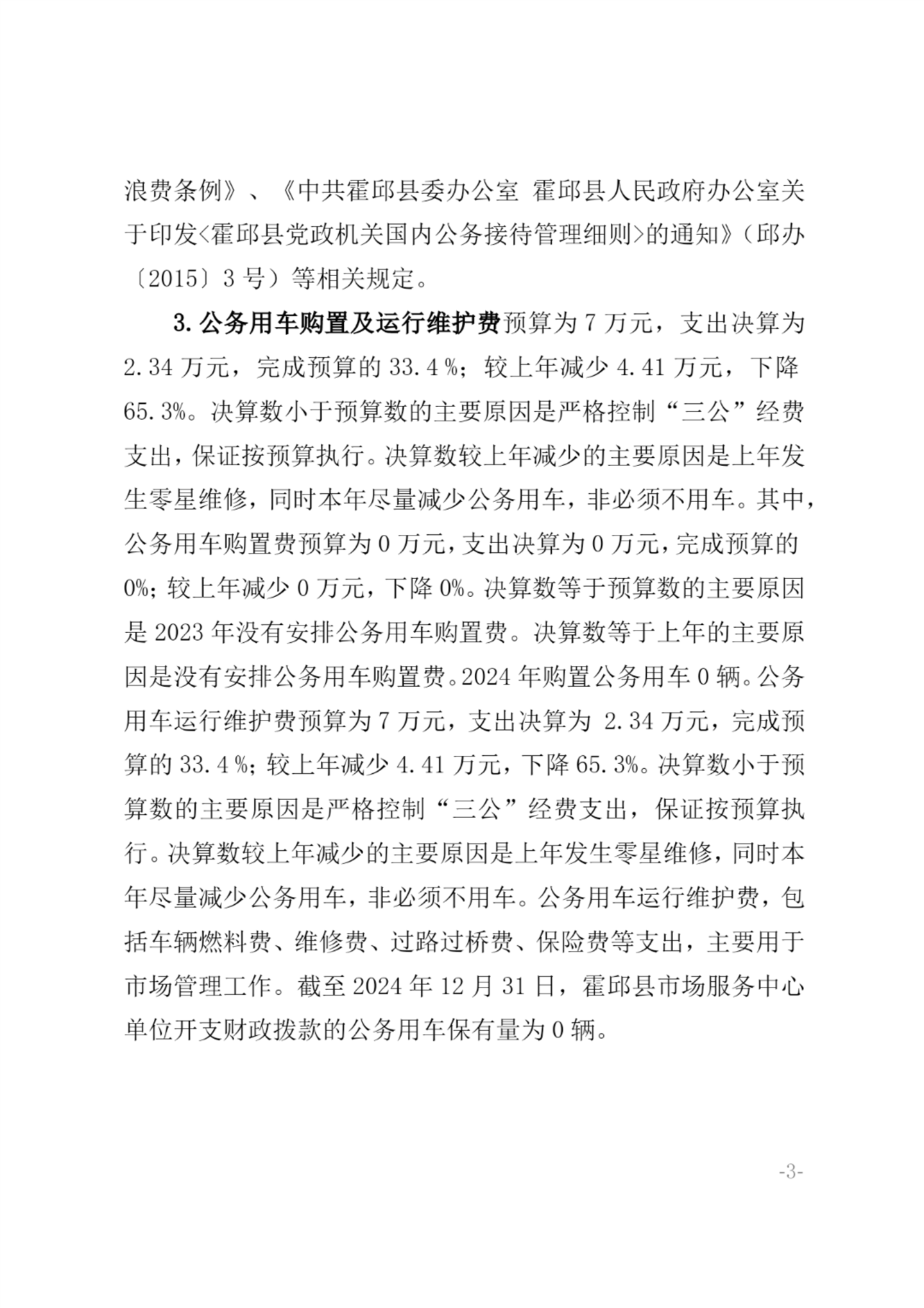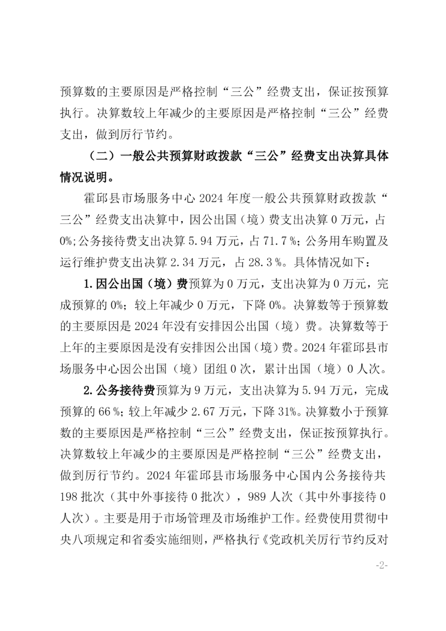 霍邱县市场服务中心单位2024年度一般公共预算财政拨款 “三公”经费支出决算