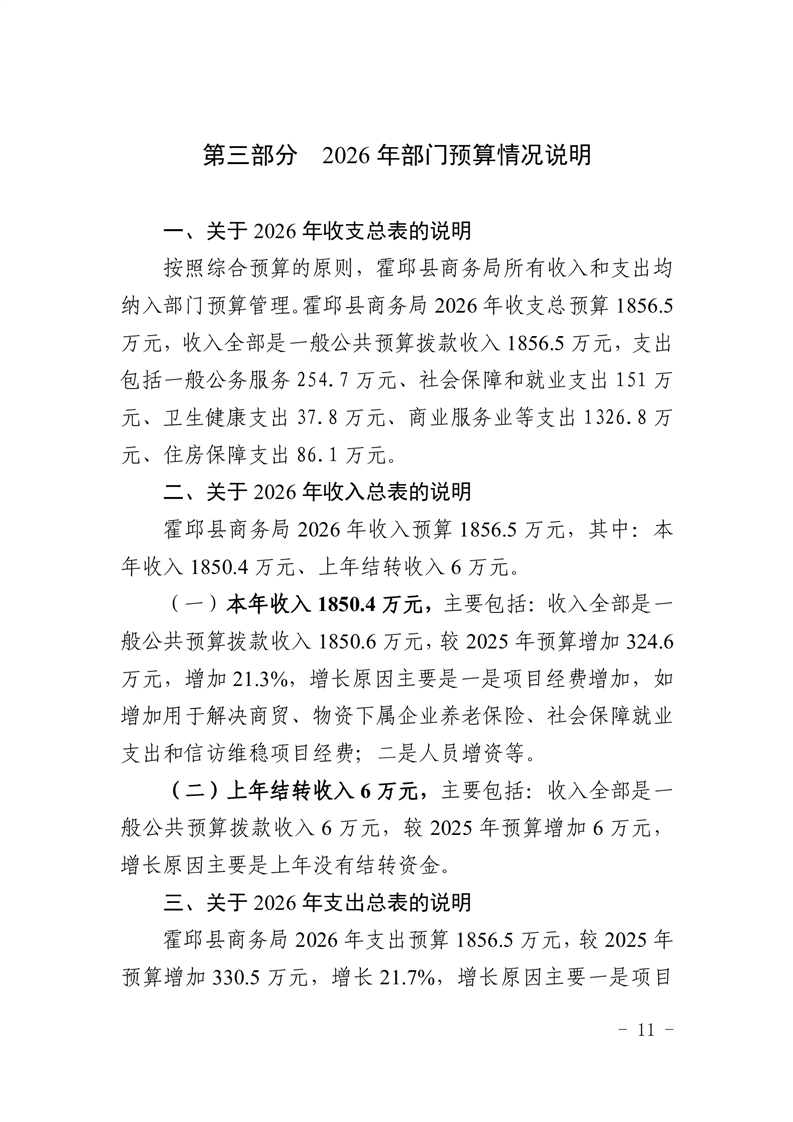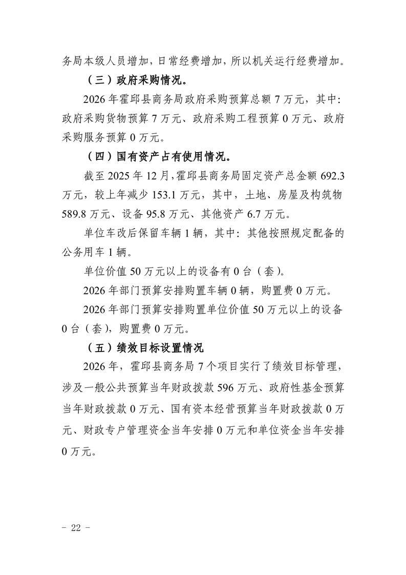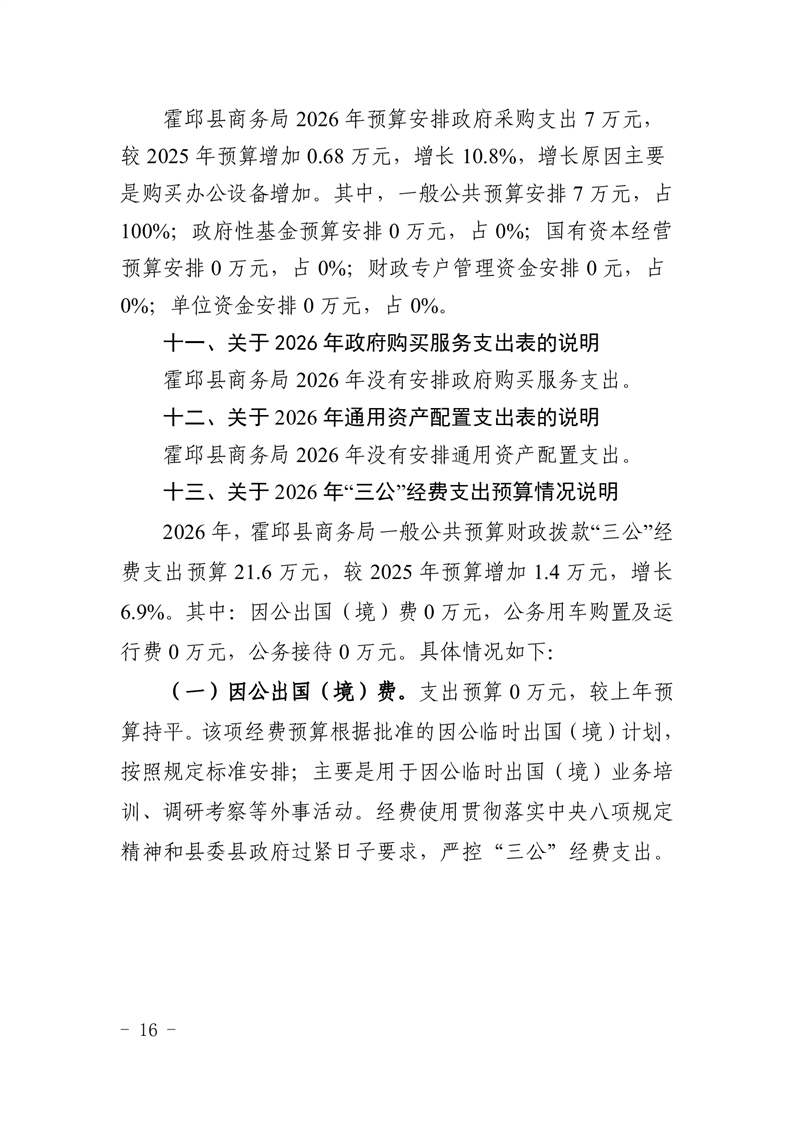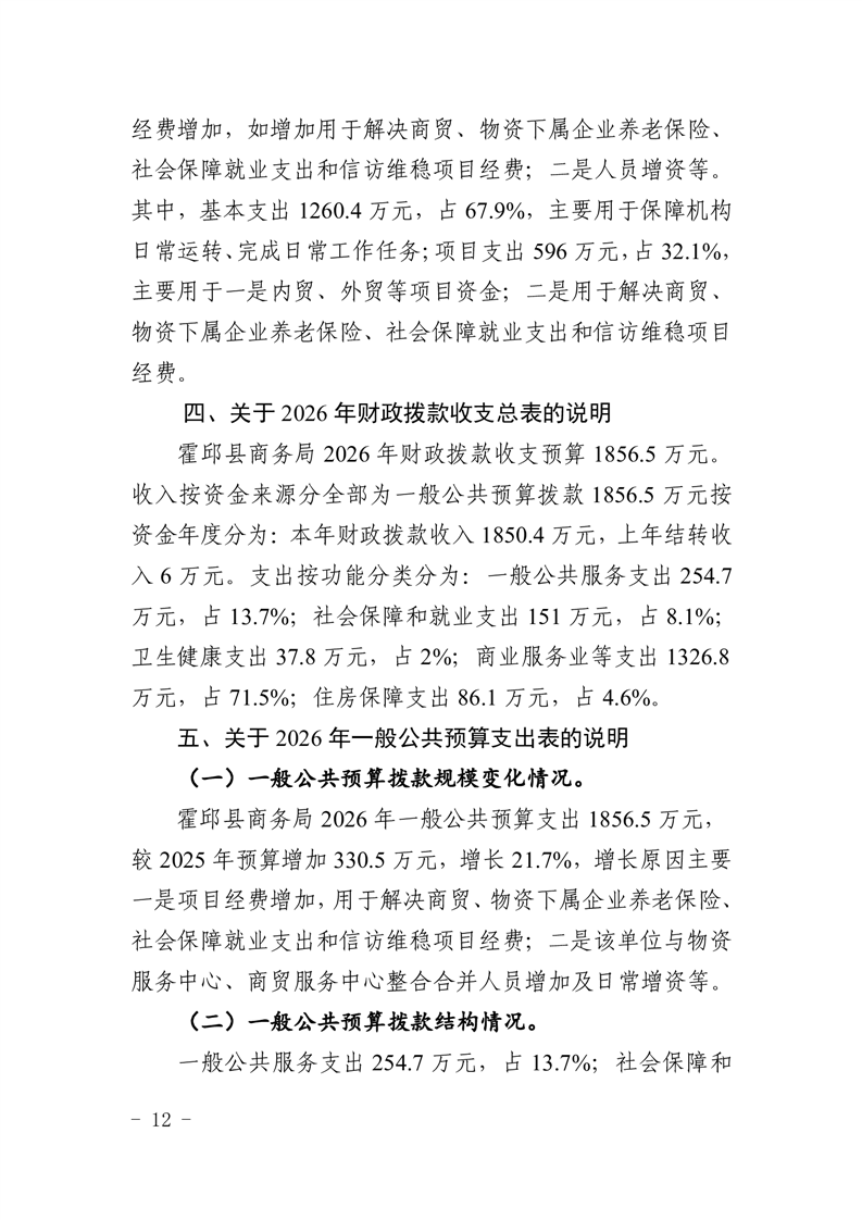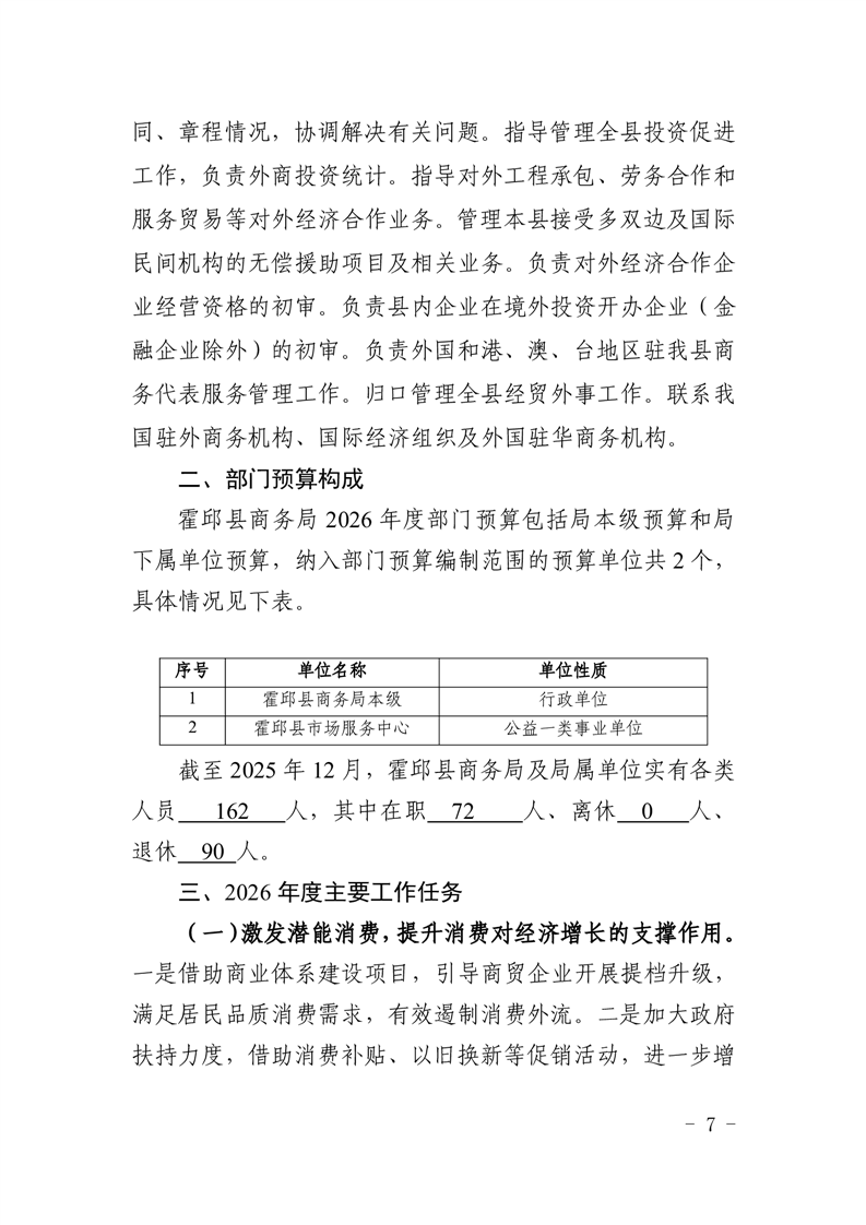霍邱县商务局2026年部门预算公开