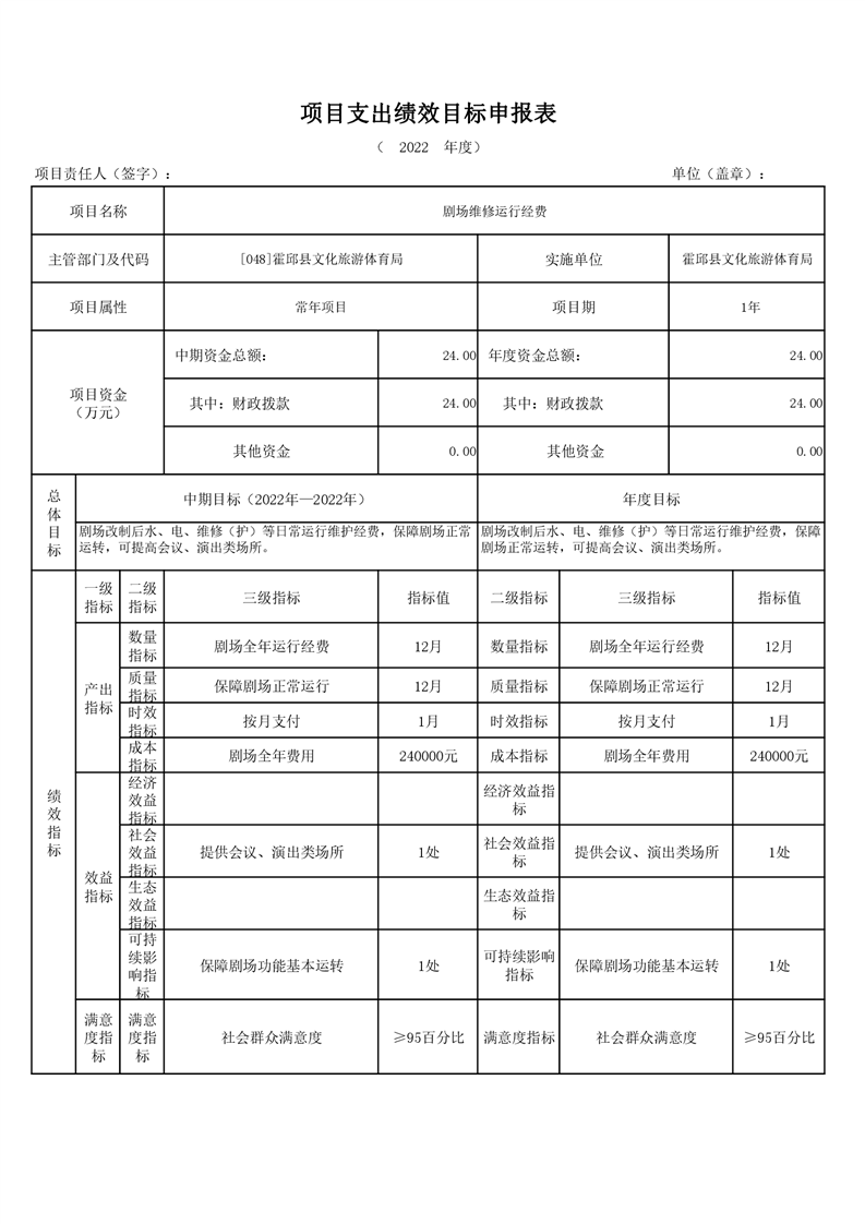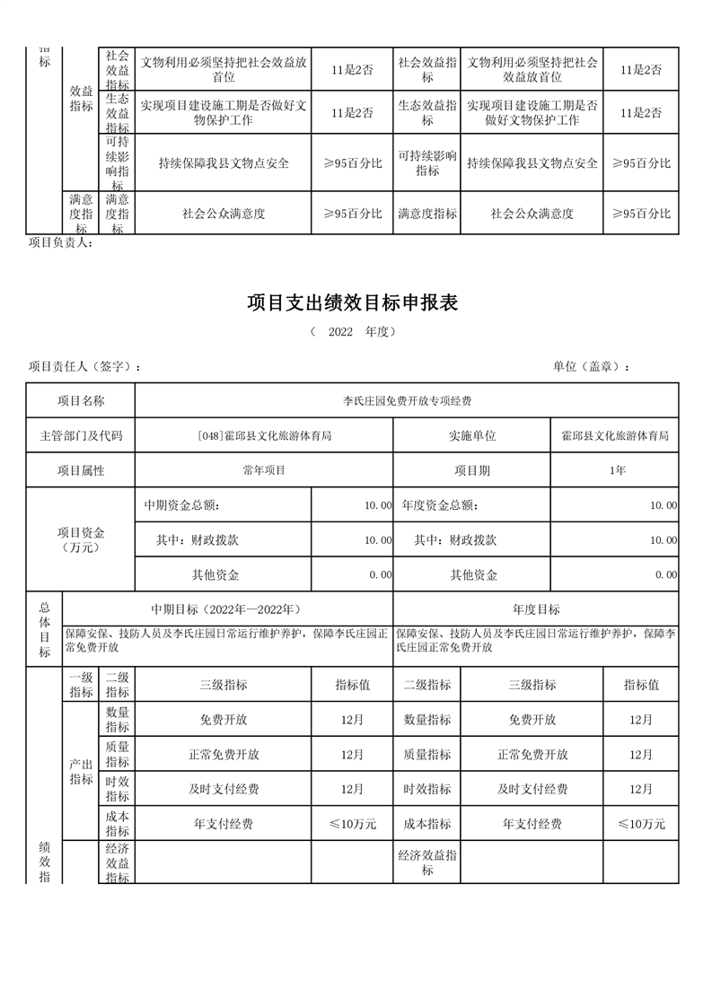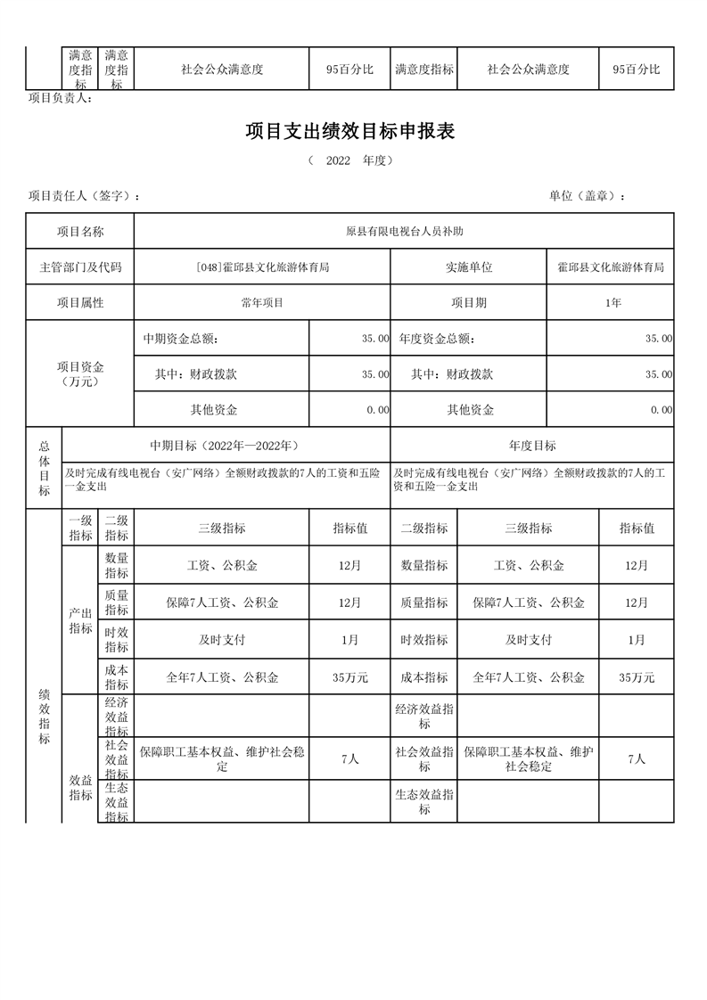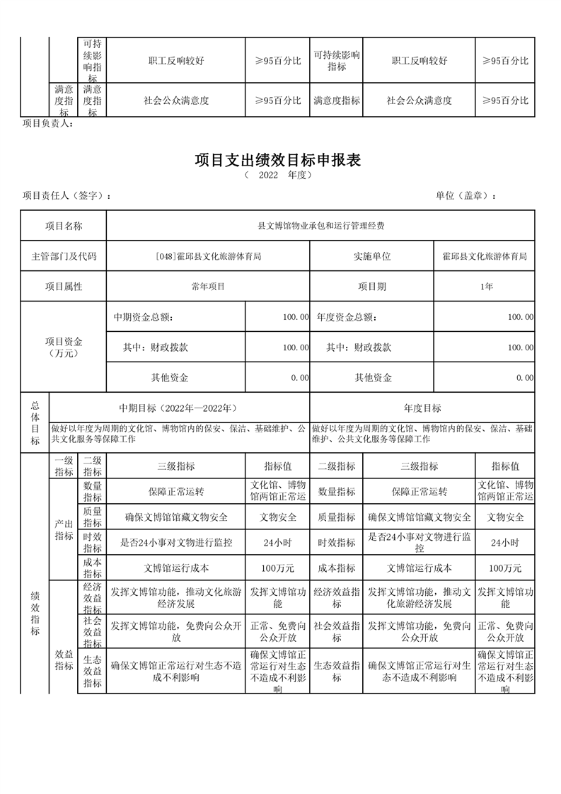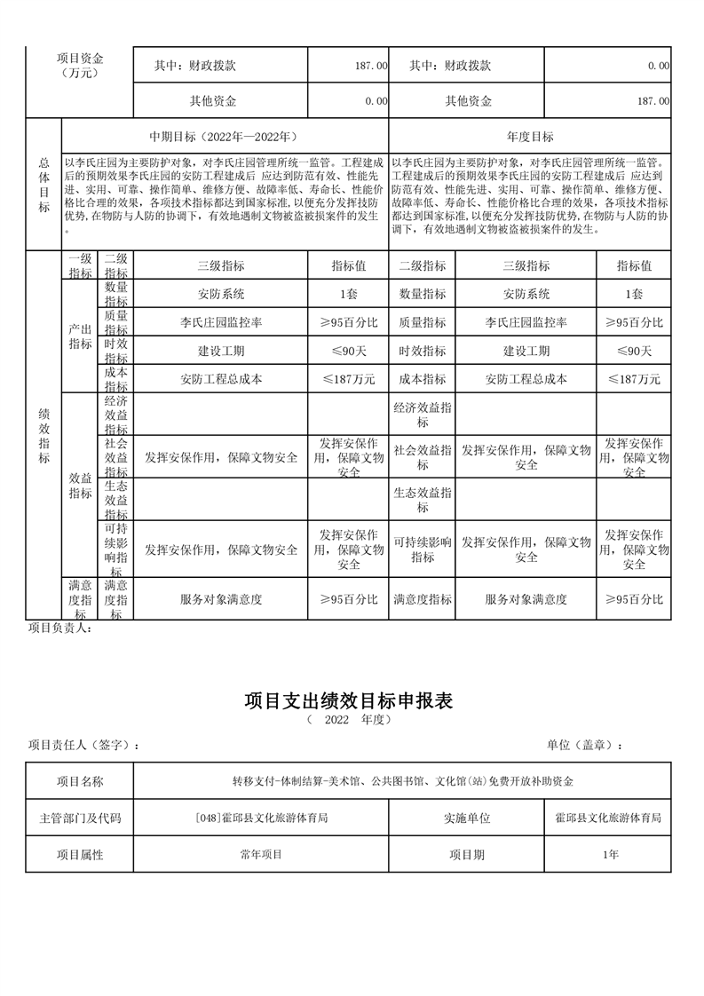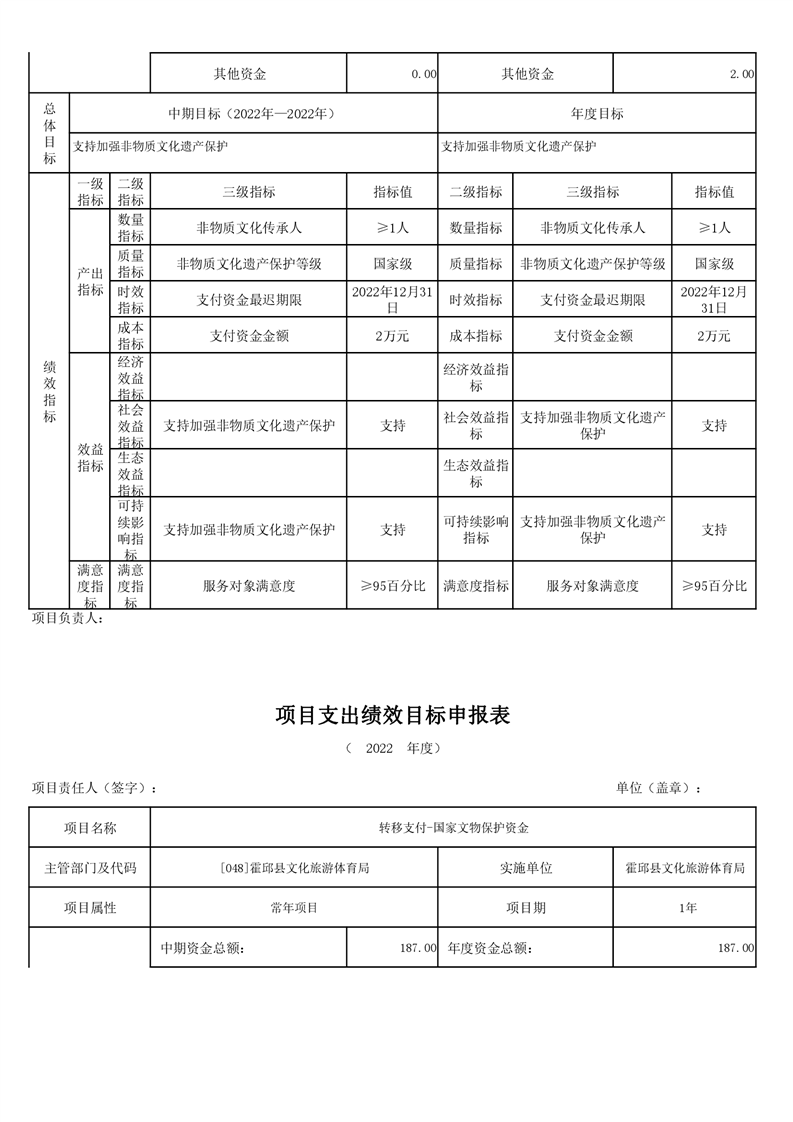 霍邱县文化旅游体育局2022年项目绩效目标表
