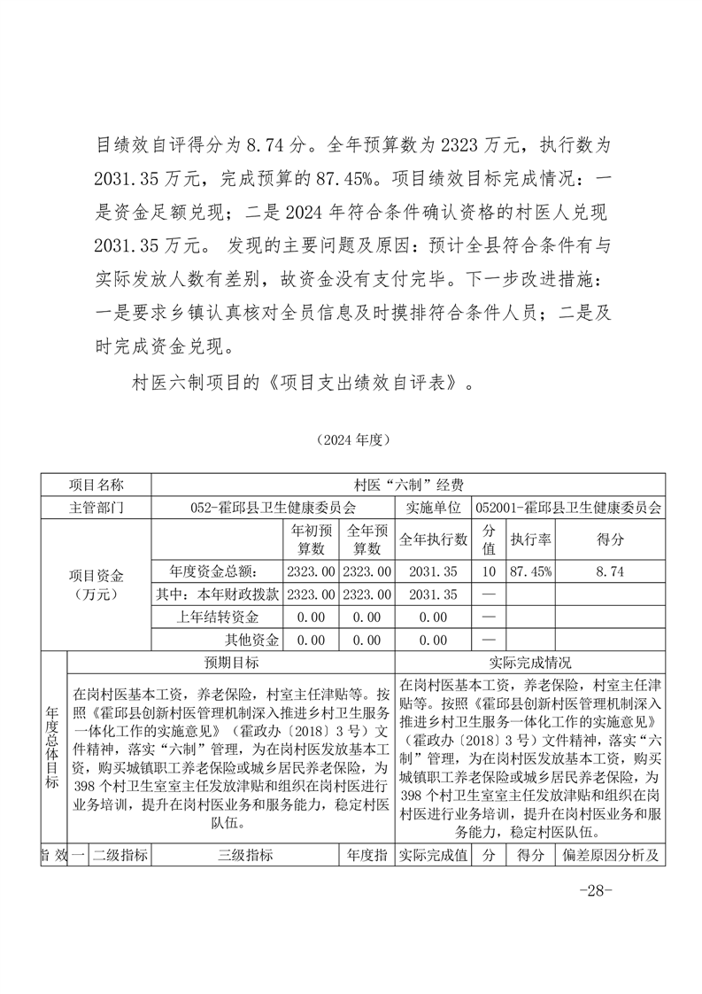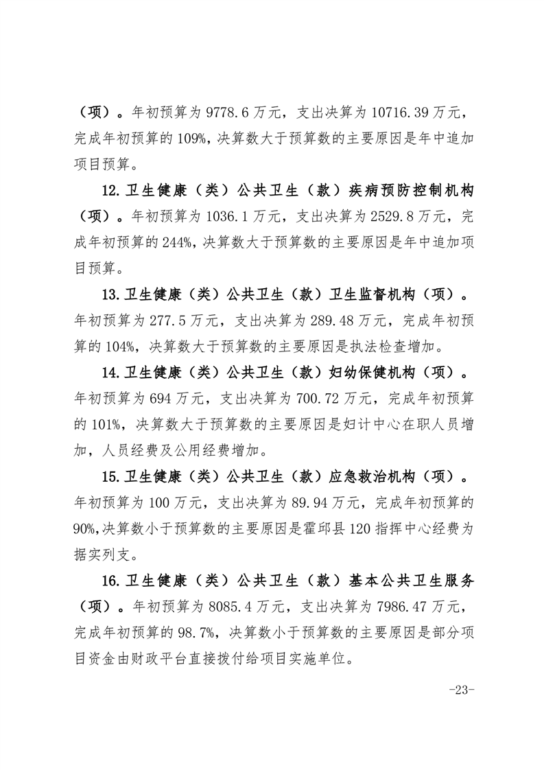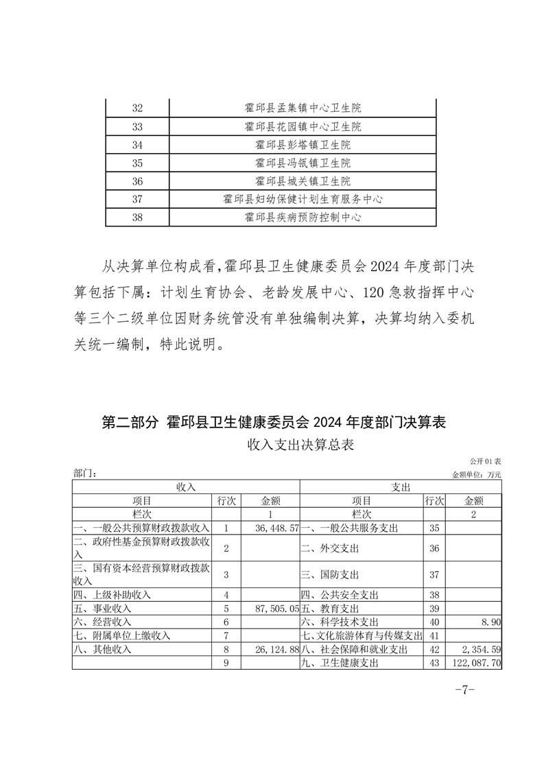 霍邱县卫生健康委员会部门2024年决算公开