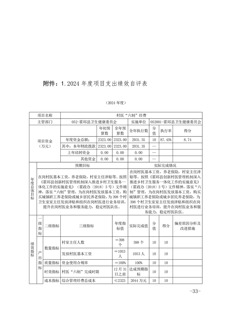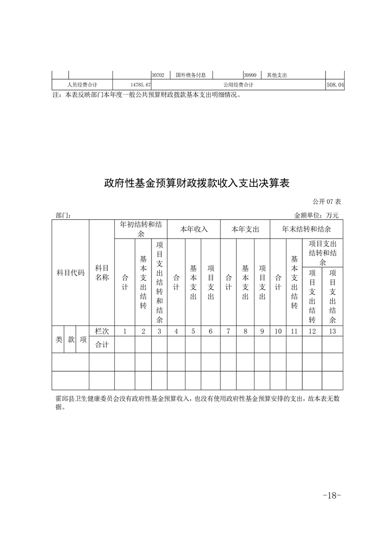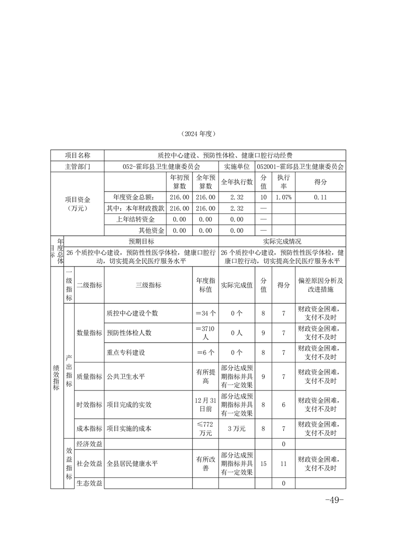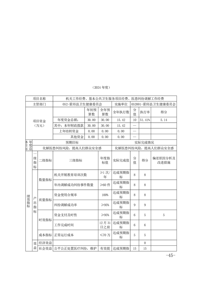 霍邱县卫生健康委员会部门2024年决算公开