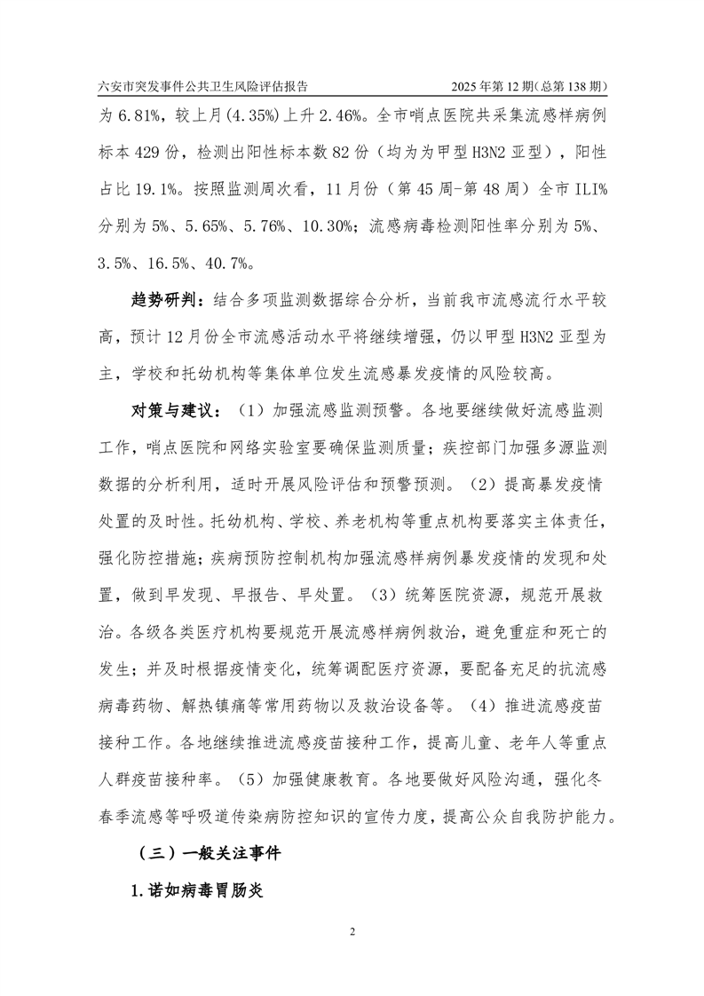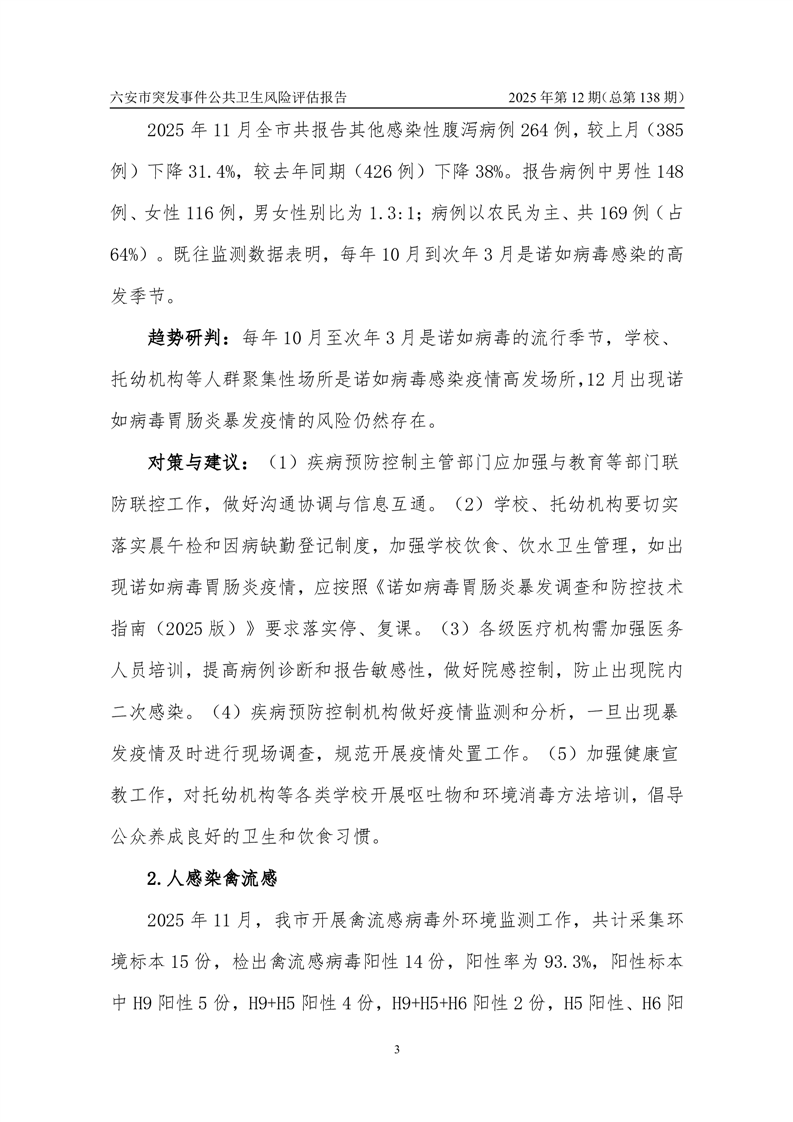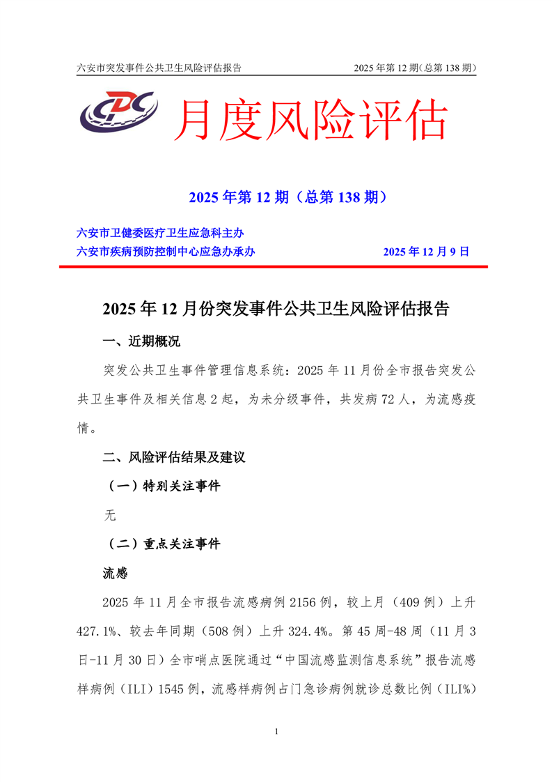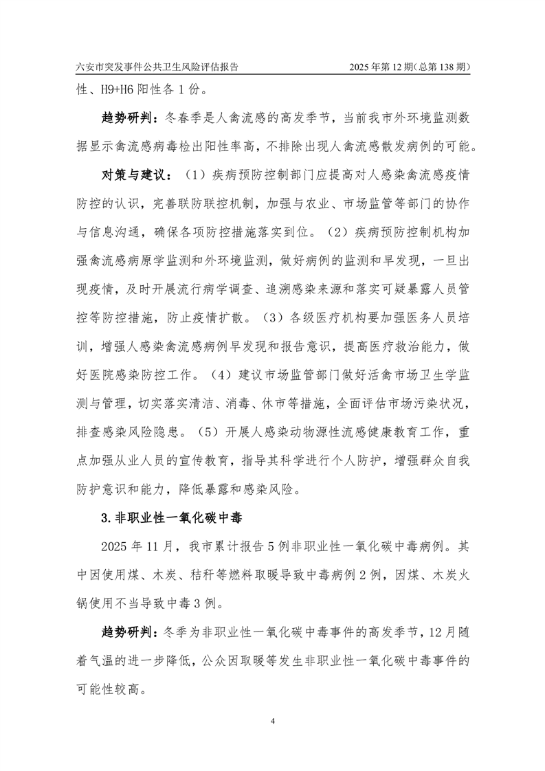 【预警信息】2025年12月份六安市突发公共卫生事件预警信息及对策建议