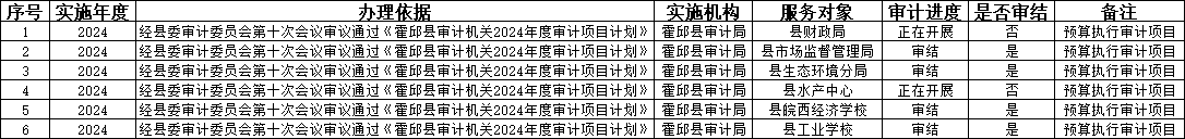 审计工作完成情况(2024年二季度)