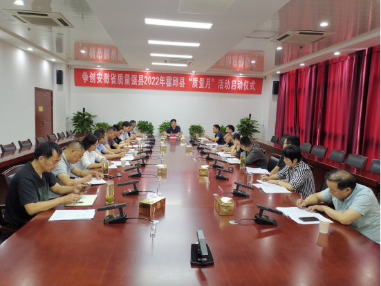 9月9日,霍邱县争创安徽省质量强县2022年“质量月”活动启动仪式在政务中心C区3楼2号会议室举行。副县长张彦、县市场监管局党组书记、局长刘学昌,市场监管局以及公安局、住建局、卫健委、交通运输局等15家县质量发展委员会成员单位分管负责人参加启动仪式。