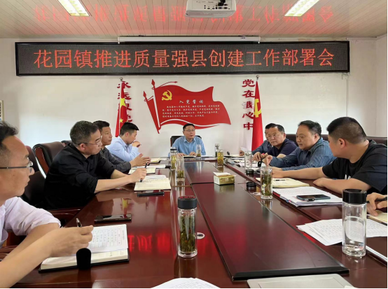 2023年4月17日,花园镇召开推进质量强县创建工作部署会,镇党委书记、质量强县创建领导组组长赵学以主持,全体领导班子成员参加会议。