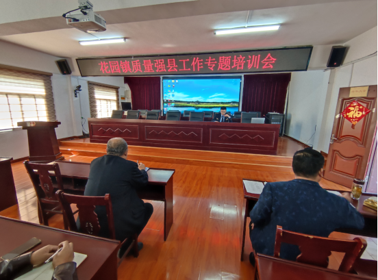 2023年4月26日下午,花园镇召开质量强县创建工作专题培训会,镇人大副主席杨天江主持,市场监管所、应急所等部门负责同志,各村和部分企业商户负责人参加会议。