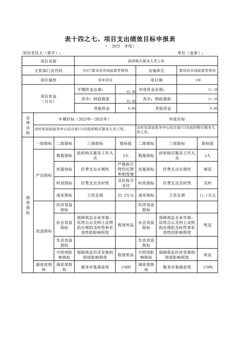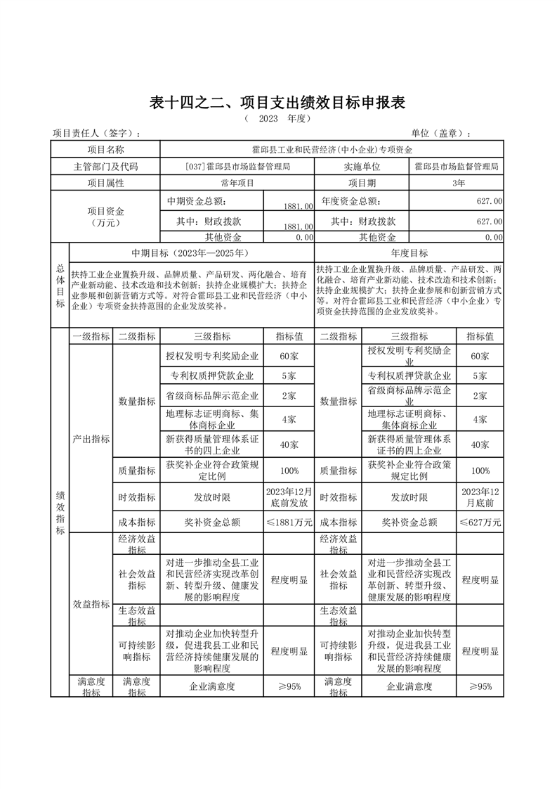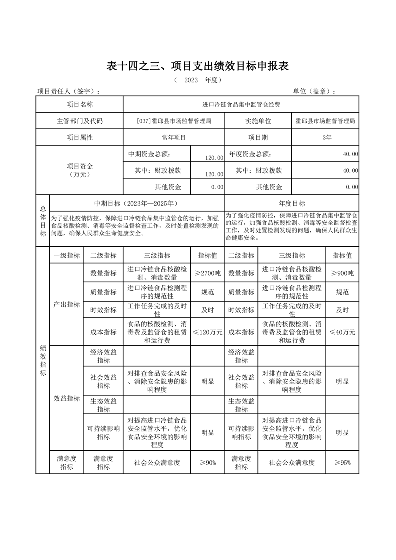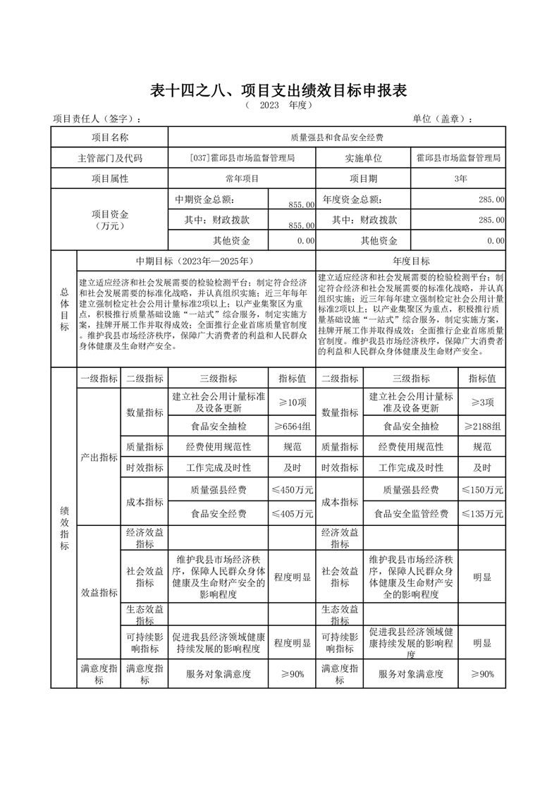 霍邱县市场监督管理局2023年项目绩效目标申报表