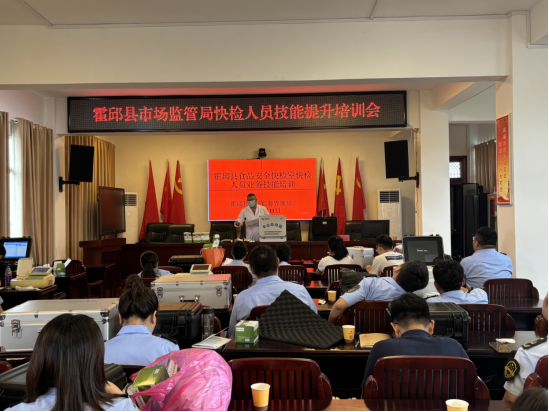 为充分发挥食品快检在食品安全监管中快速排查风险作用,全面提升我县食品安全快检能力。7月11日,霍邱县市场监督管理局开展了食品安全快检室快检人员业务技能培训。各市监所分管负责人及市监所、农贸市场食品安全快检人员共30余人参加了培训。