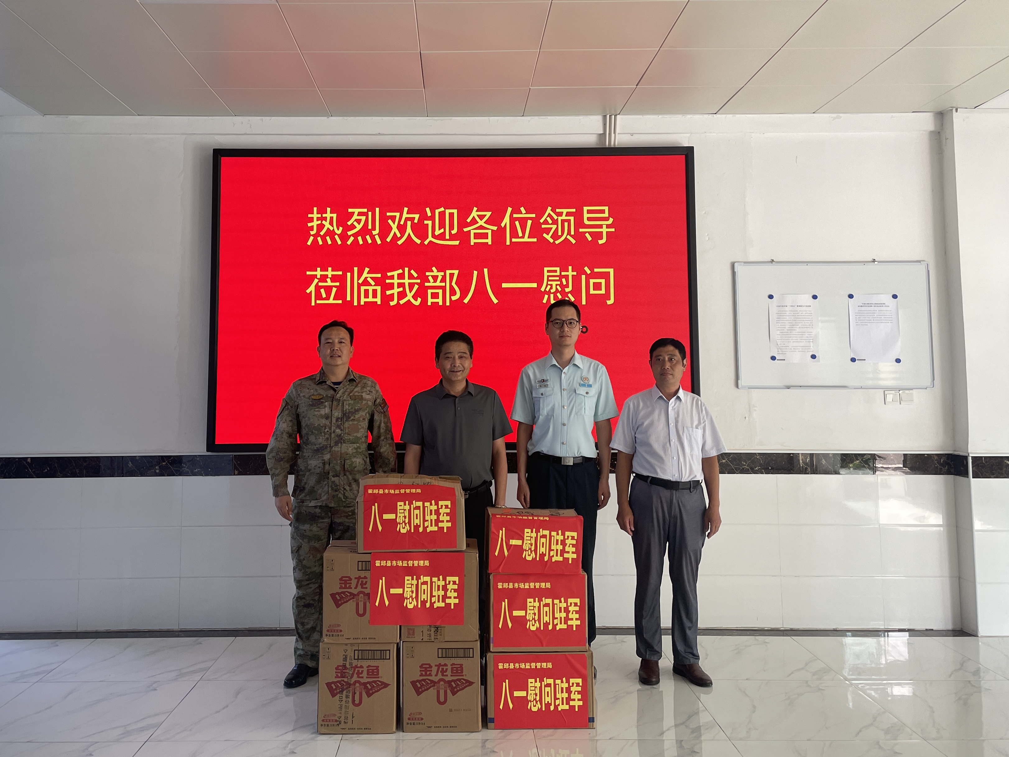 为扎实做好拥军优属、拥政爱民工作,增强双拥意识和国防观念,丰富双拥工作的形式和内容,2024年8月1日,霍邱县市场监督管理局党组书记、局长刘学昌,局党组成员李述华一行赴县人民武装部开展“八一”慰问活动,代表县市场监管局向县人武部官兵致以节日祝贺和诚挚问候。